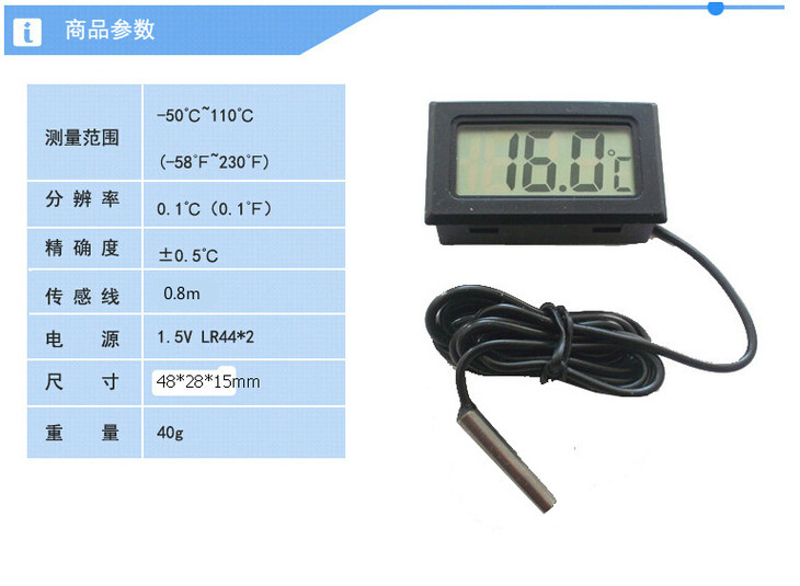 规格:55.5*42.5*16mm 探温线长约80cm