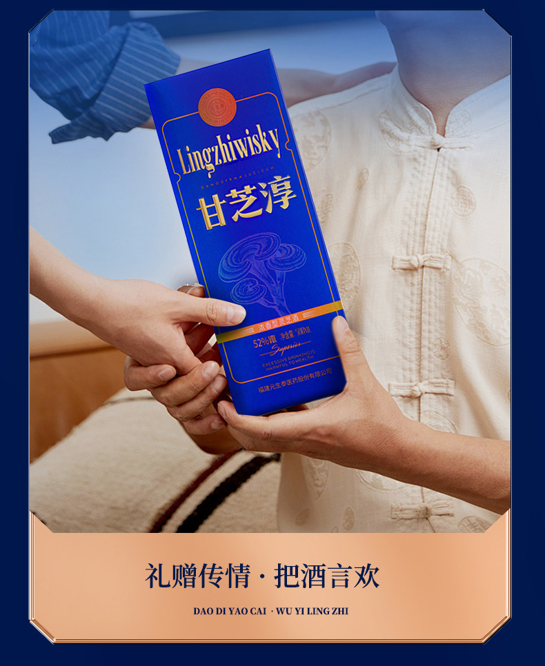 元生泰 甘芝淳灵芝酒500ml 52度浓香型白酒