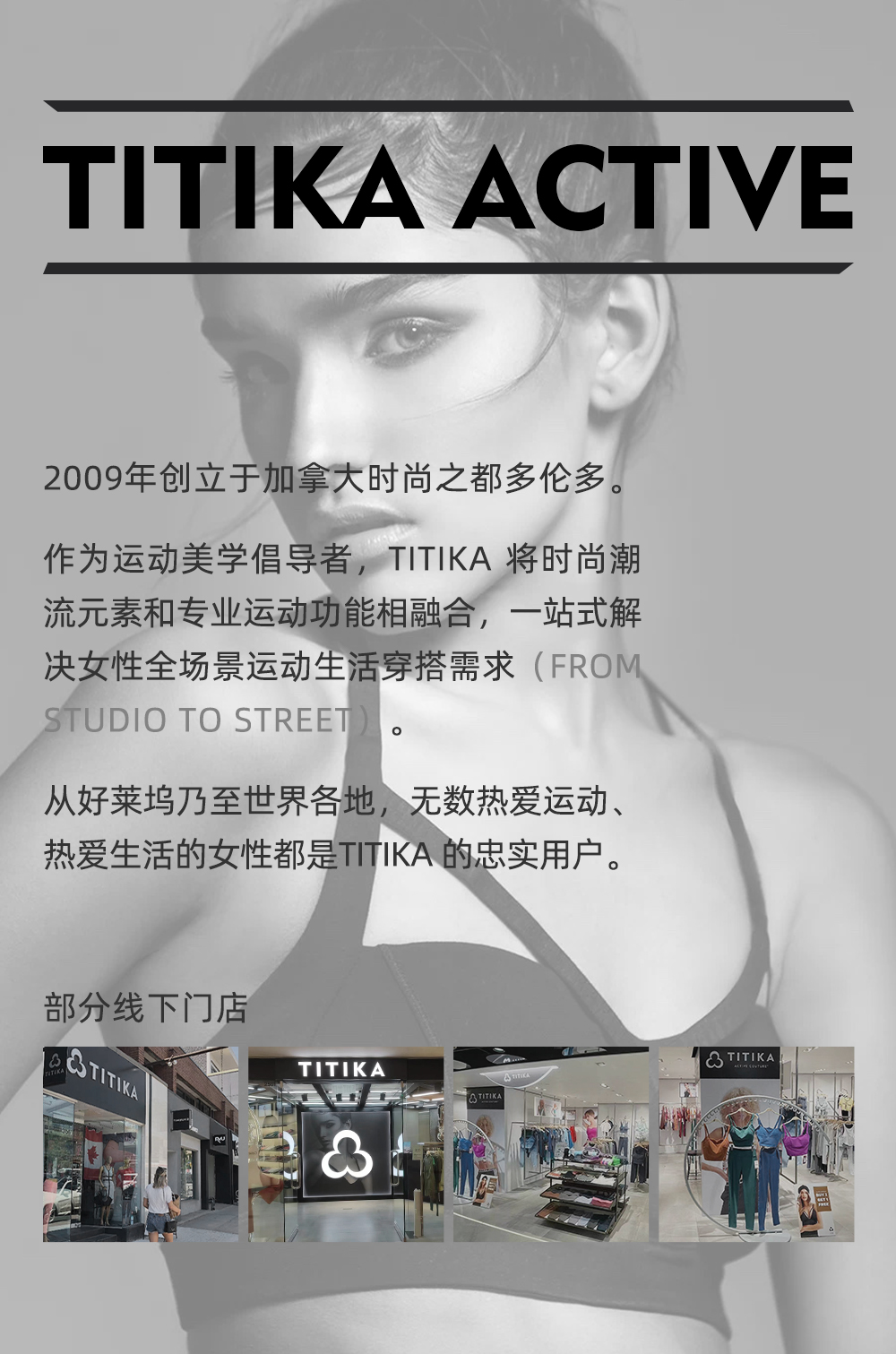 - 2009年,Titika Active Couture诞生于北美时尚之都,重新定义运动服饰,让运动时尚,前卫、性感,更宣扬一种无畏自由的生活态度。TITIKA缇缇卡不断求变,为品牌添加多种元素