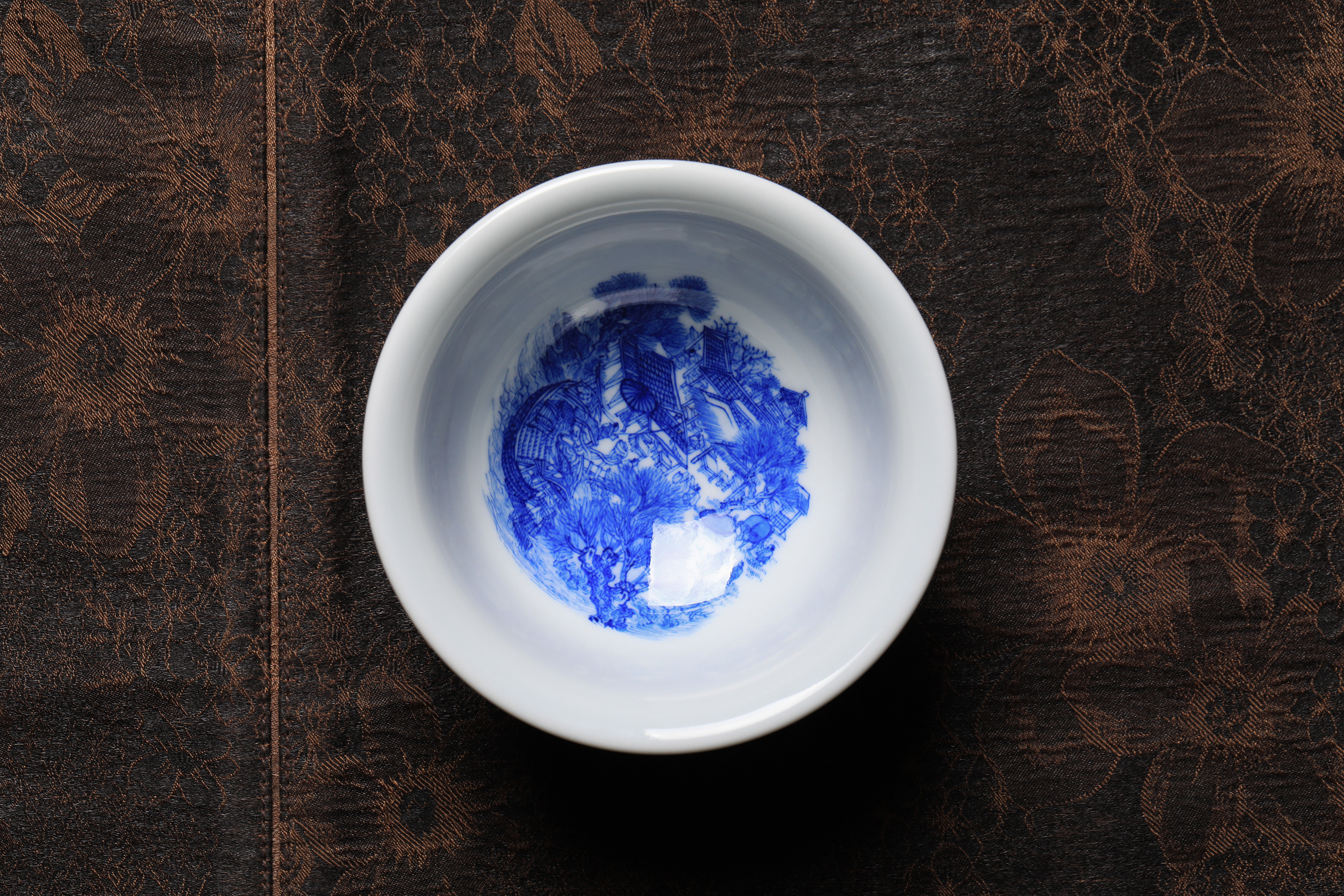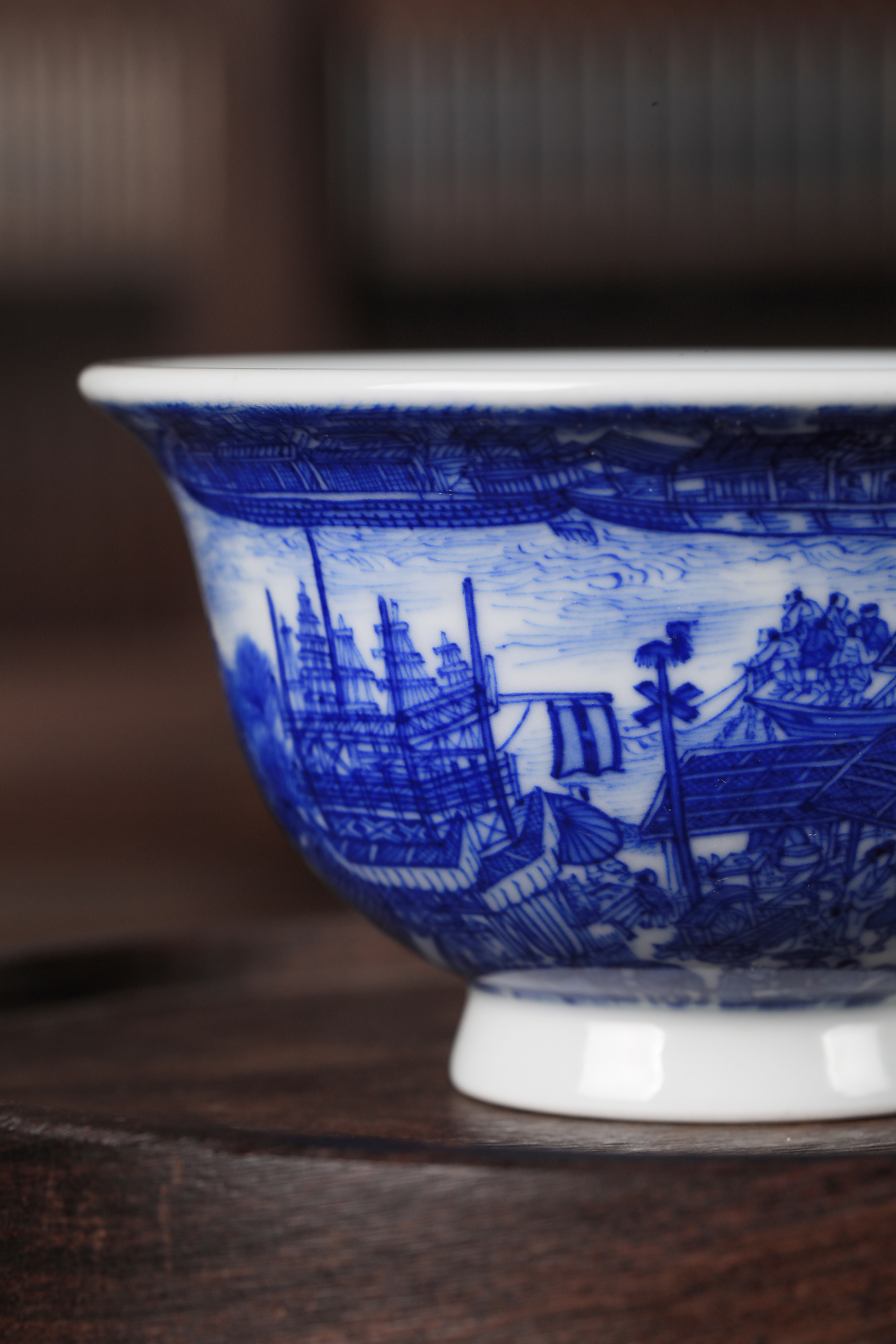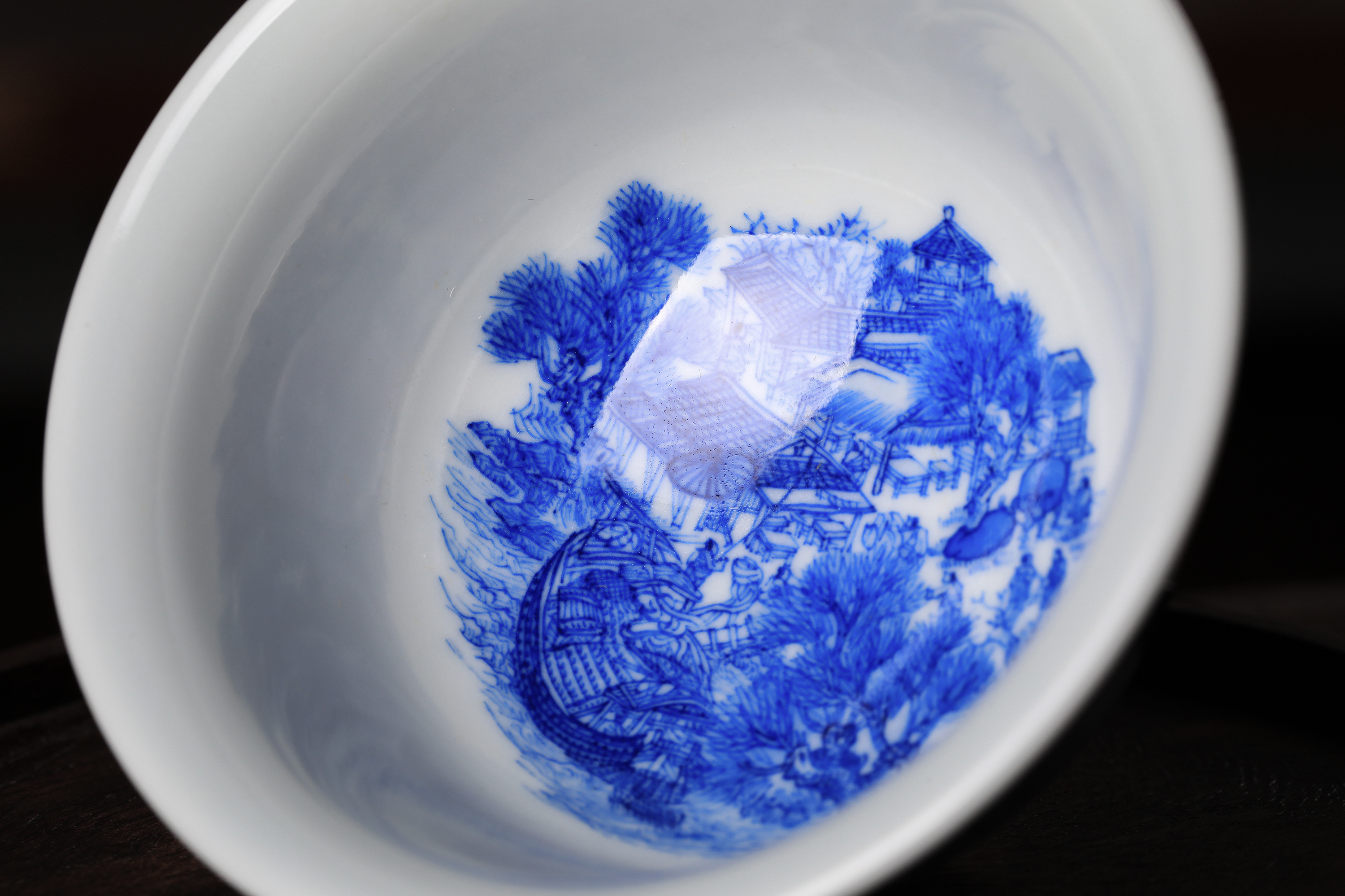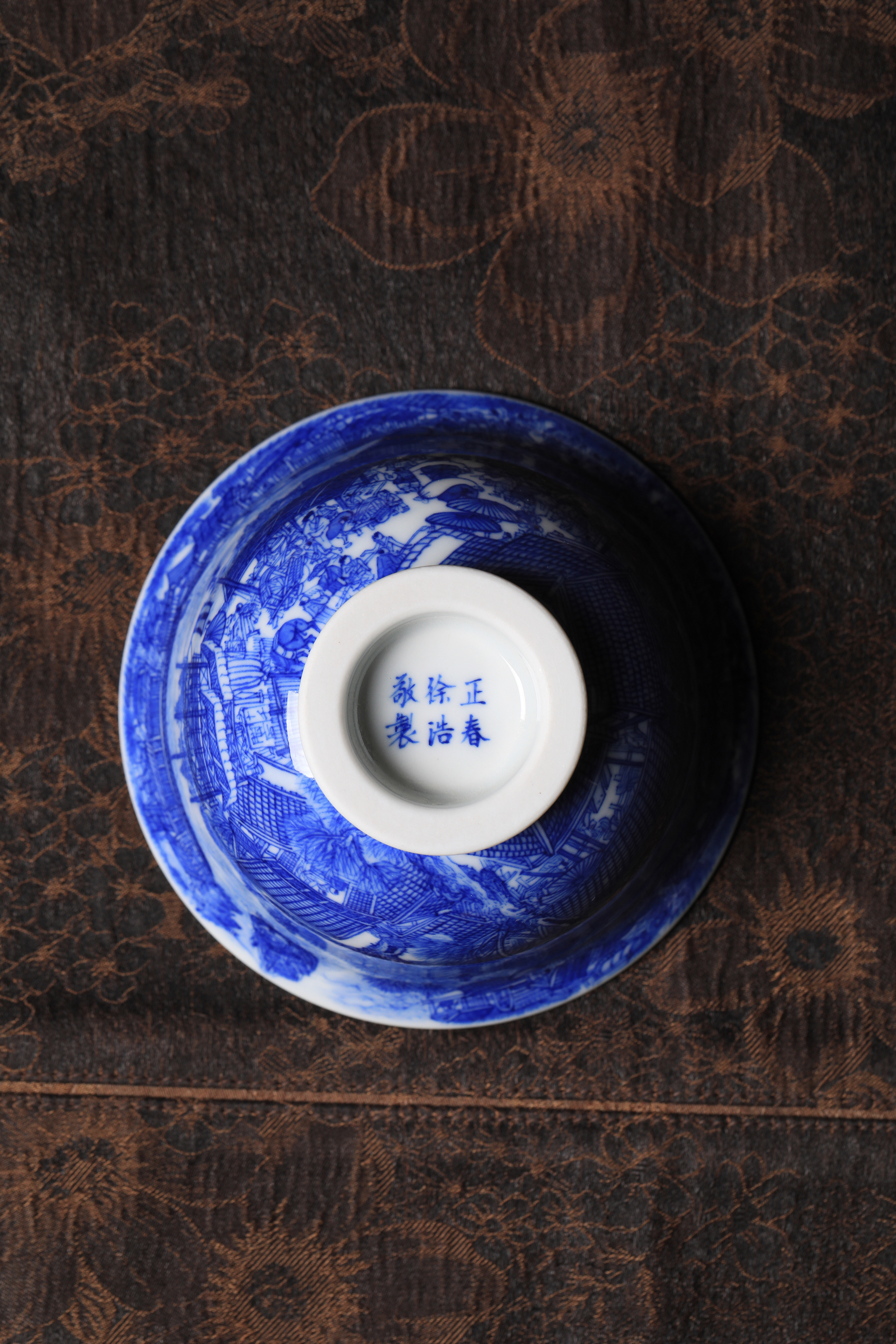宋瓷影青浅盘半刀泥刻绘花纹 花开富贵