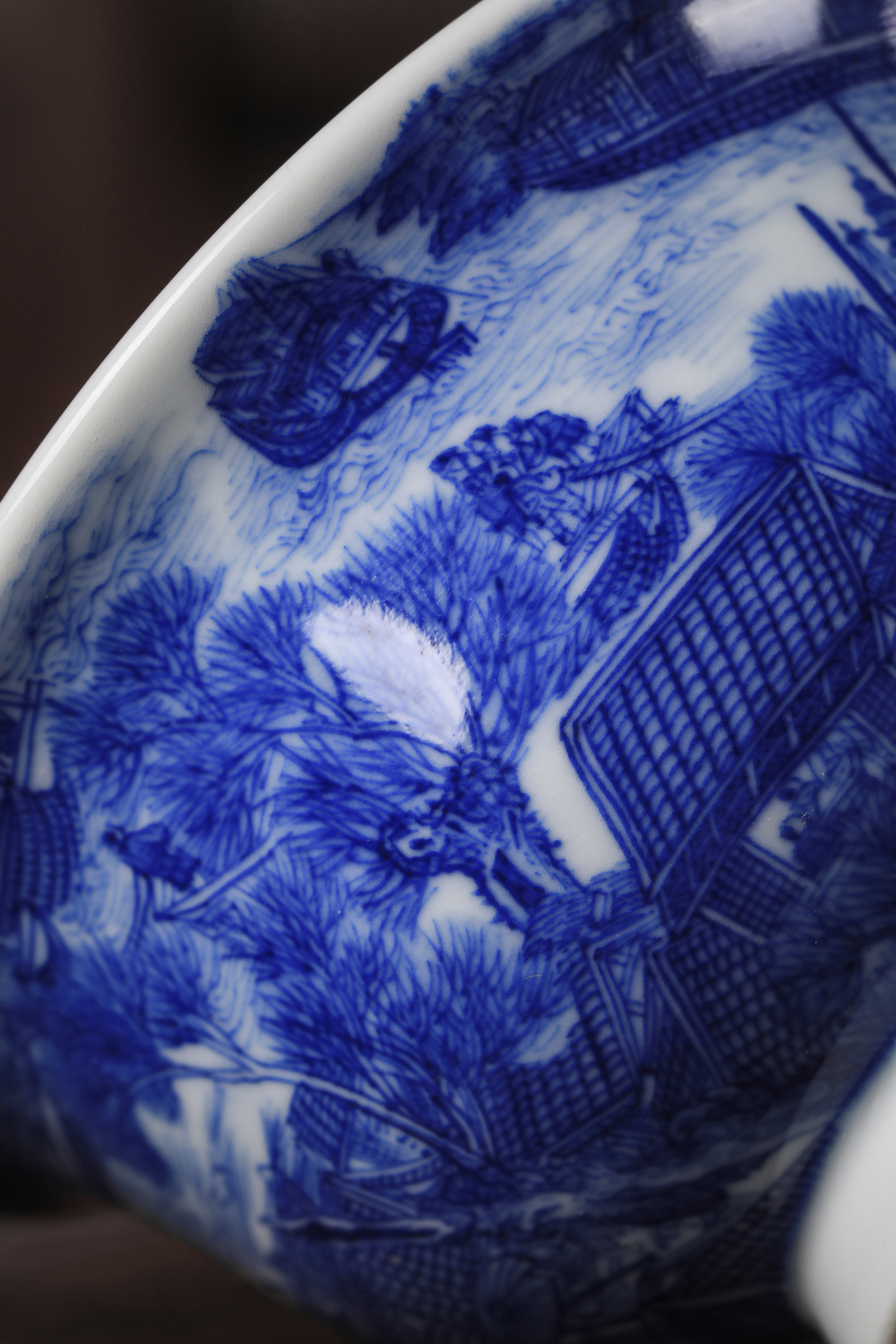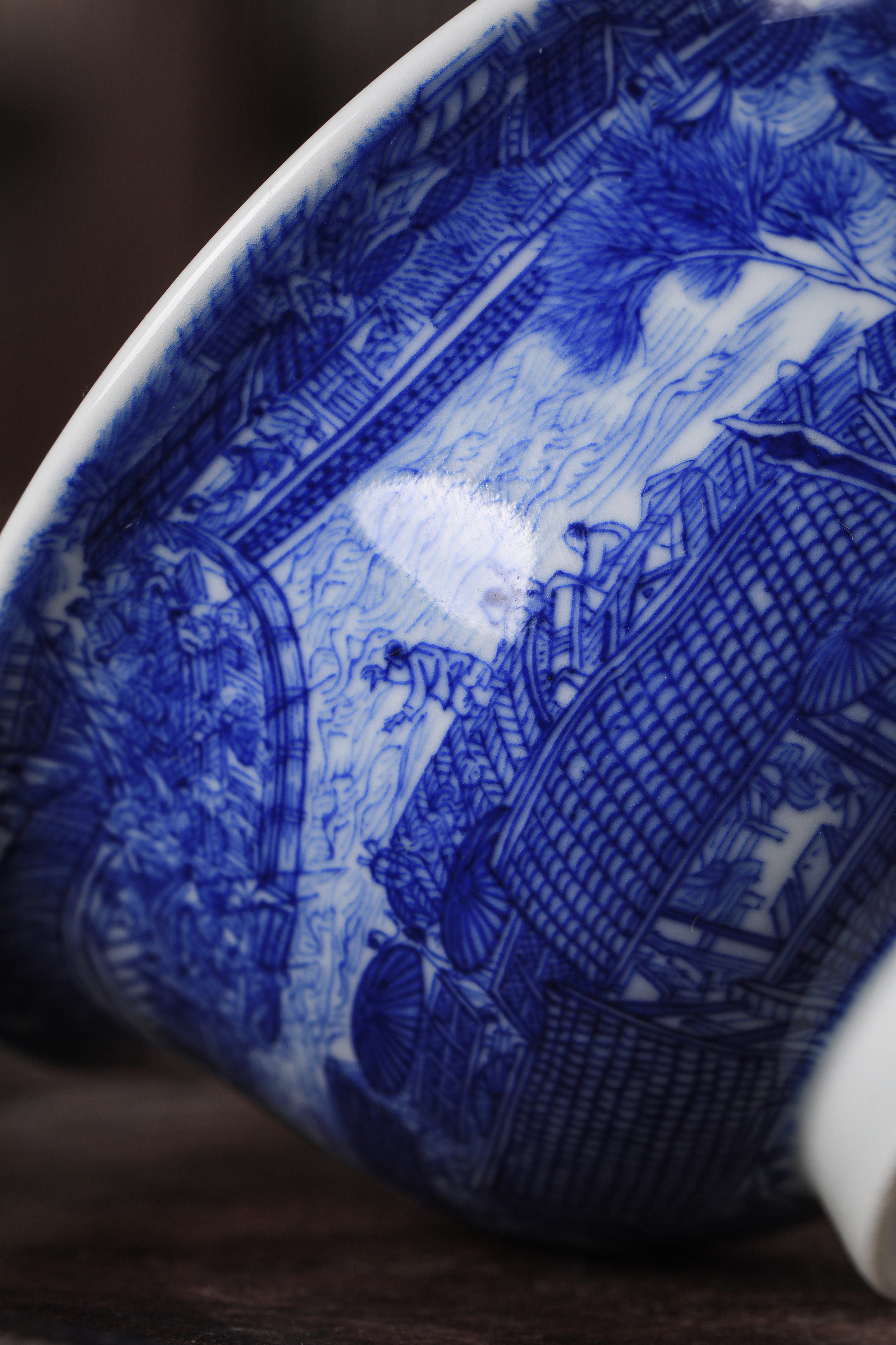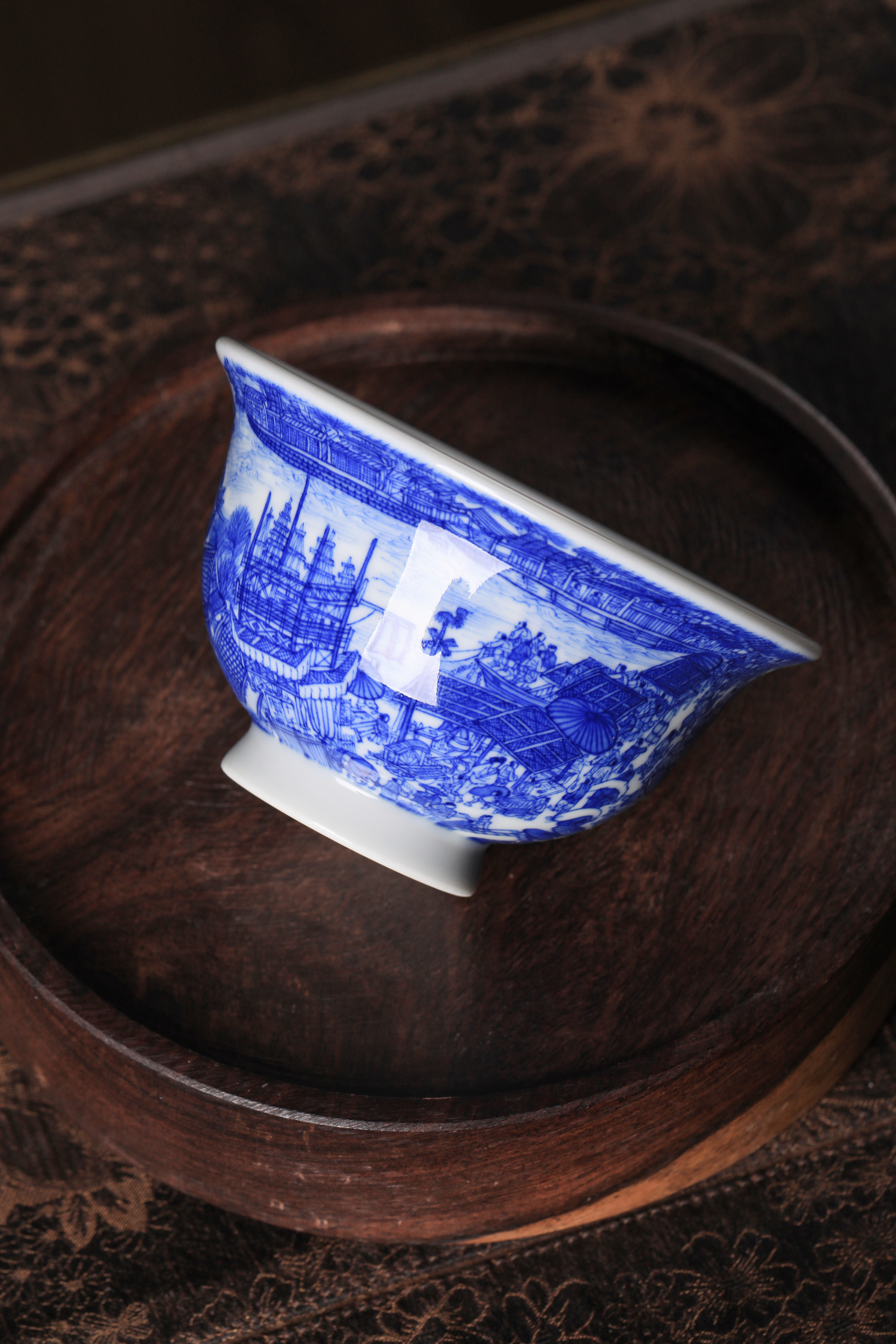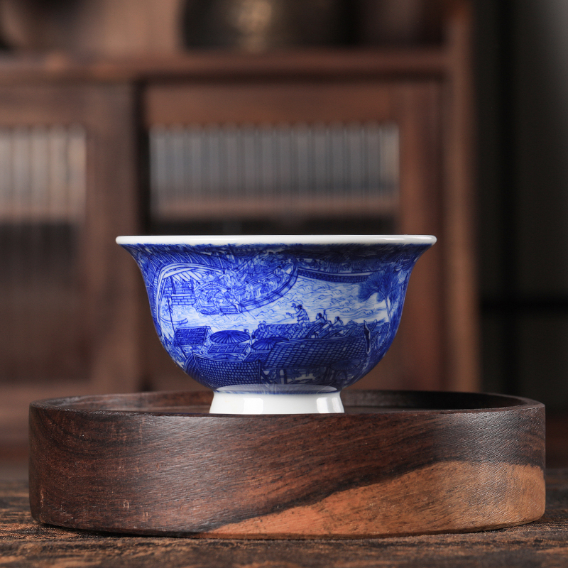 宋瓷影青浅盘半刀泥刻绘花纹 花开富贵