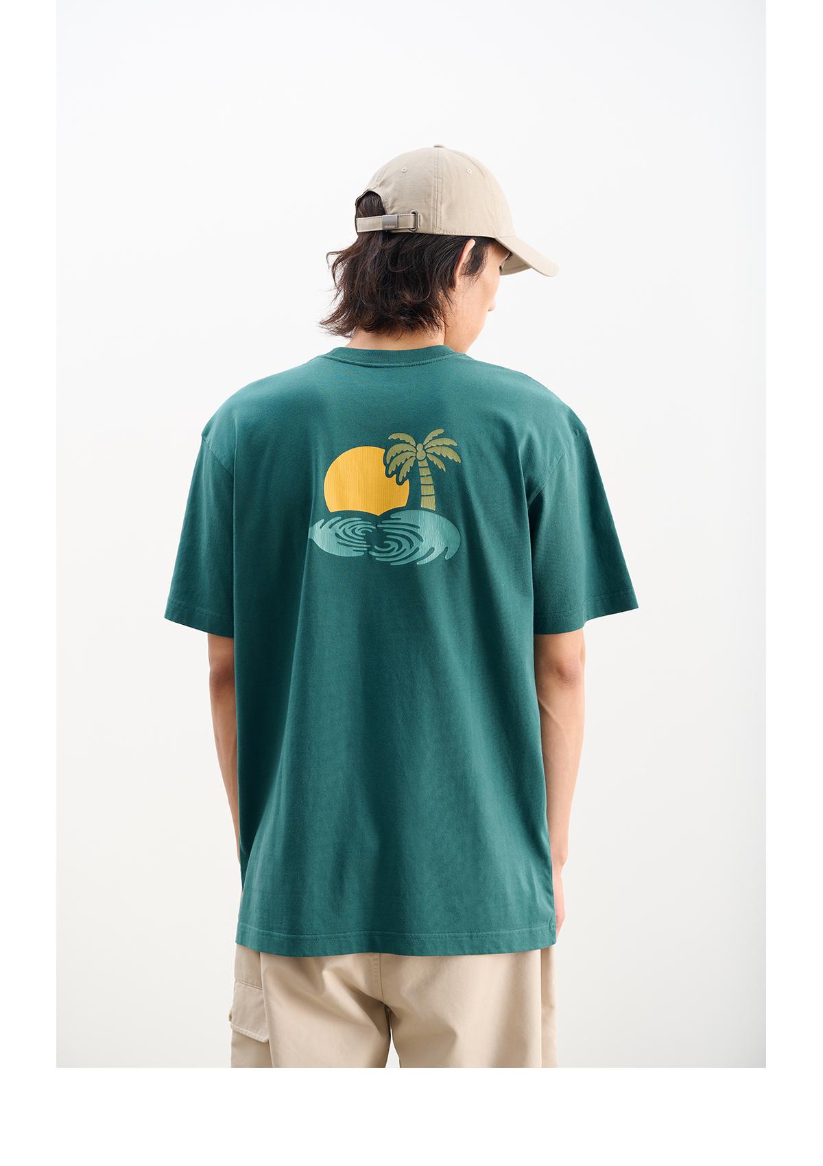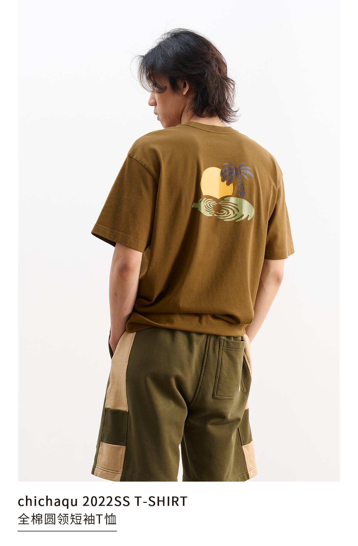 吃茶去chichaqu全棉T恤裂浆海边椰树葫芦波光