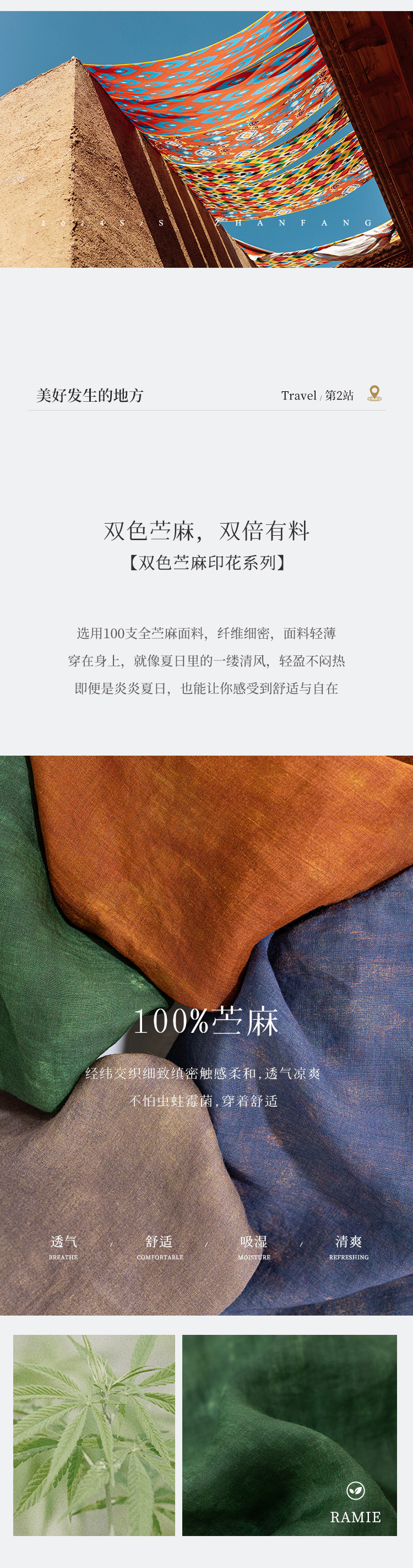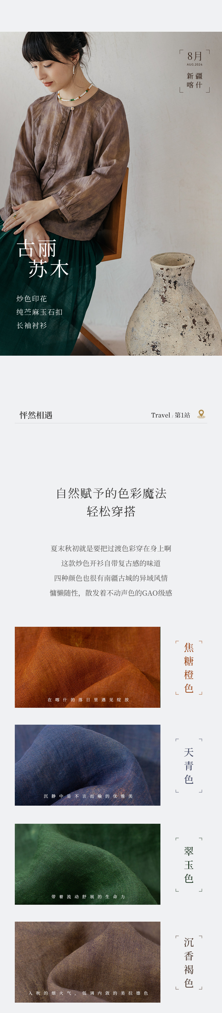 以天然亚麻为载体,融合热烈色彩与自在剪裁为身在城市、心怀远方的女性提供兼具美学与舒适的旅行着装