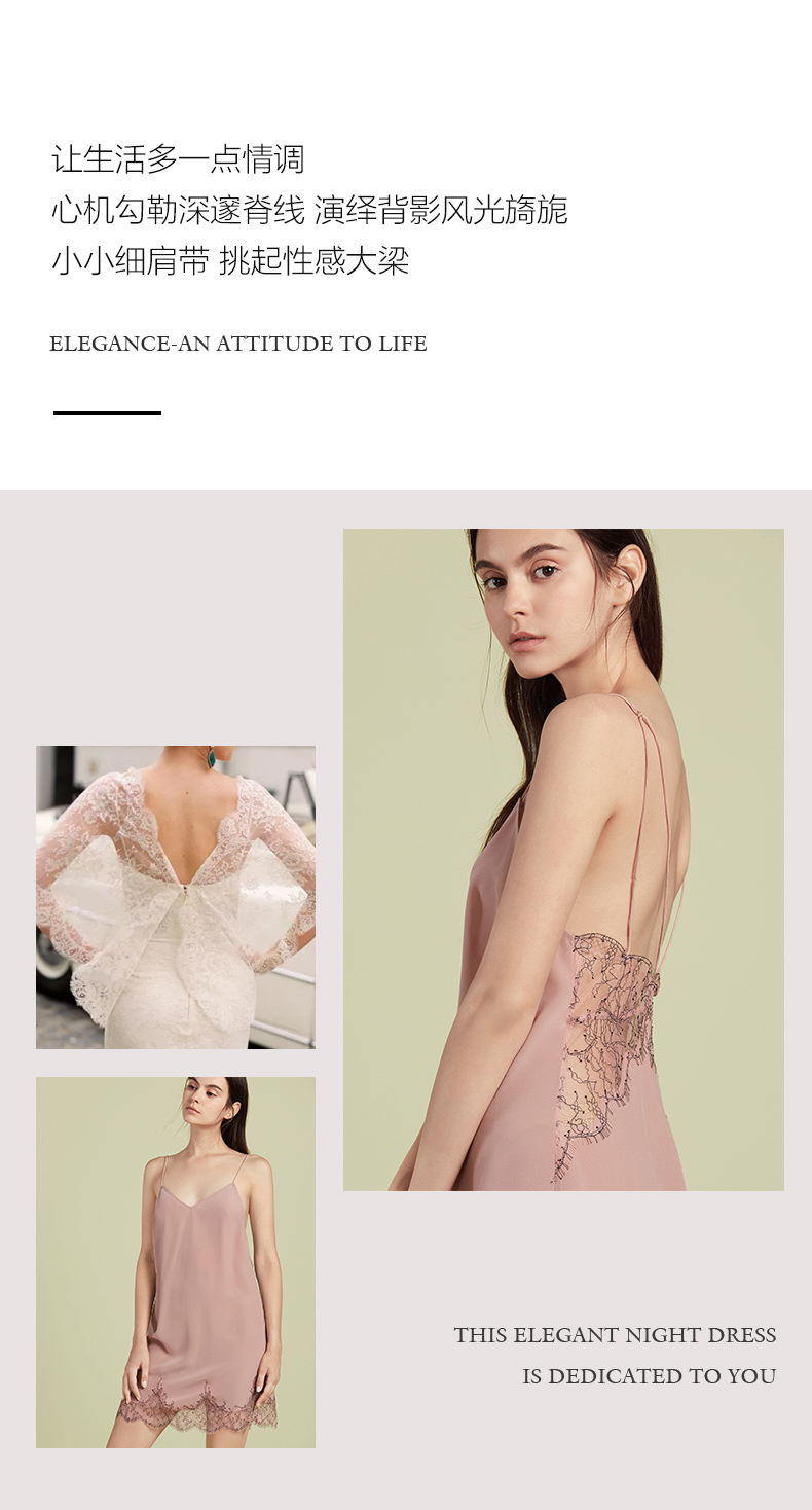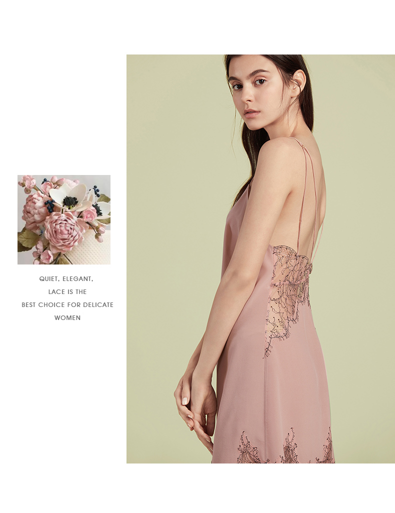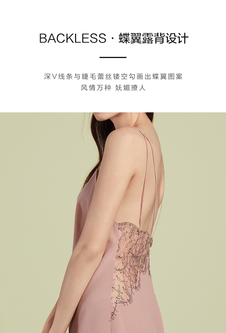 金三塔真丝V领性感美背睡衣100%桑蚕丝吊带睡裙不易皱的真丝双绉 YSFAA329