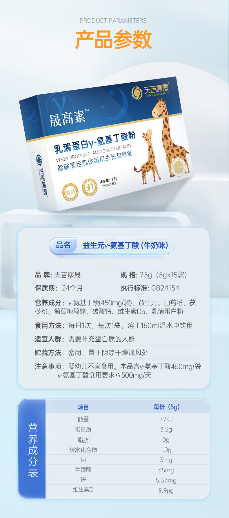 天吉康晟 晟高素 乳清蛋白γ-氨基丁酸粉 75g(5g×15袋)