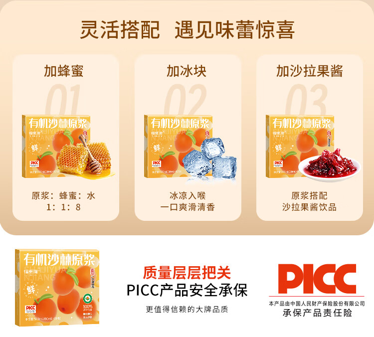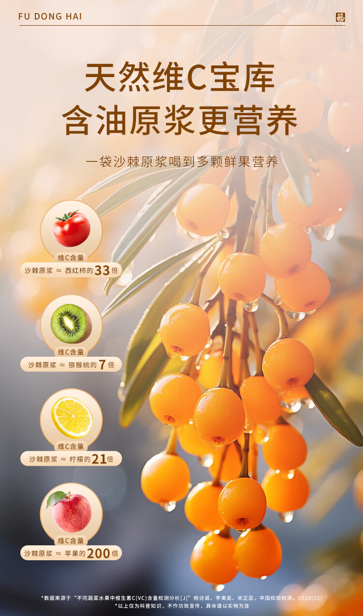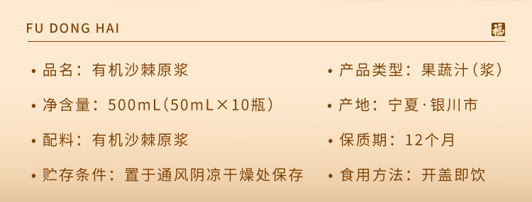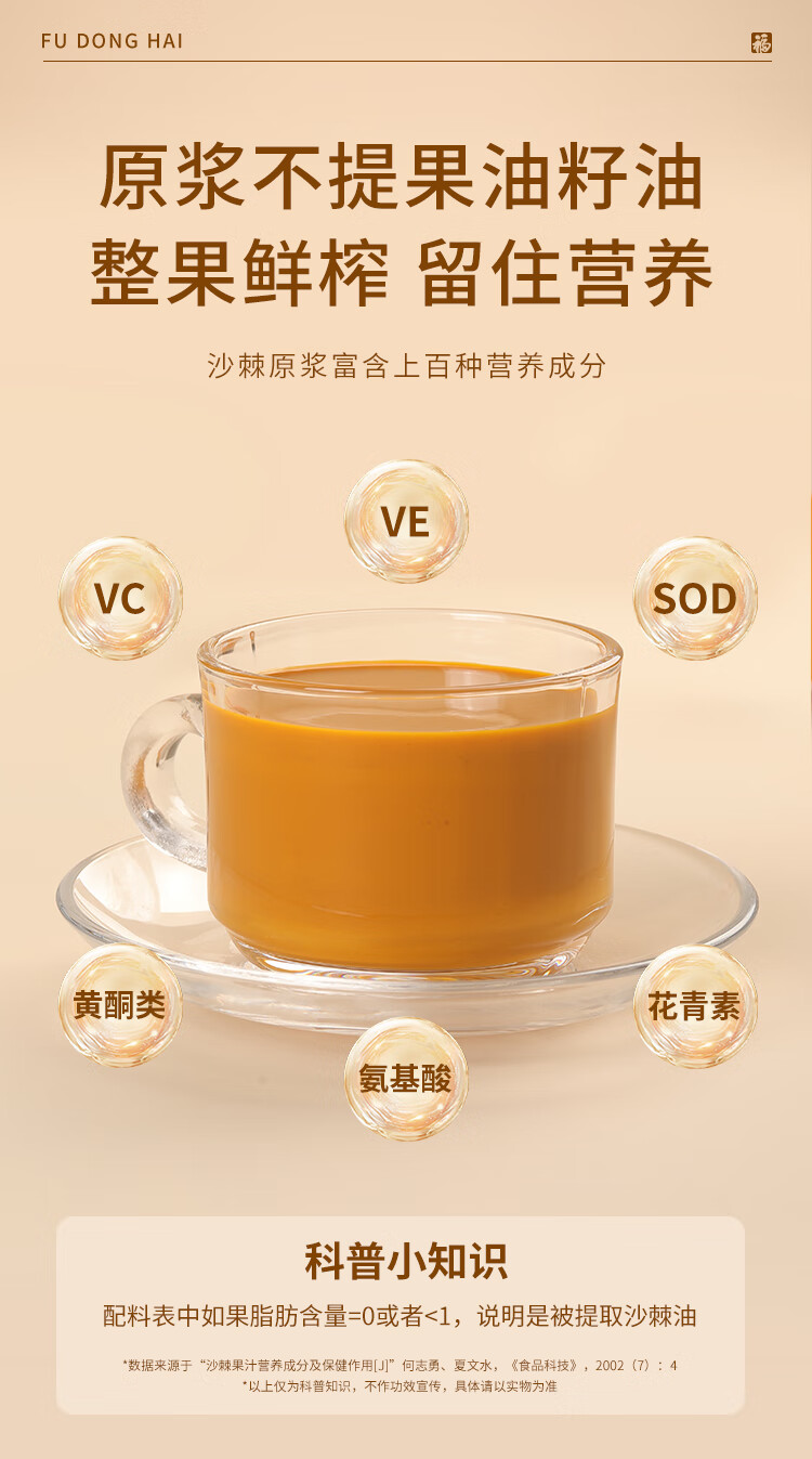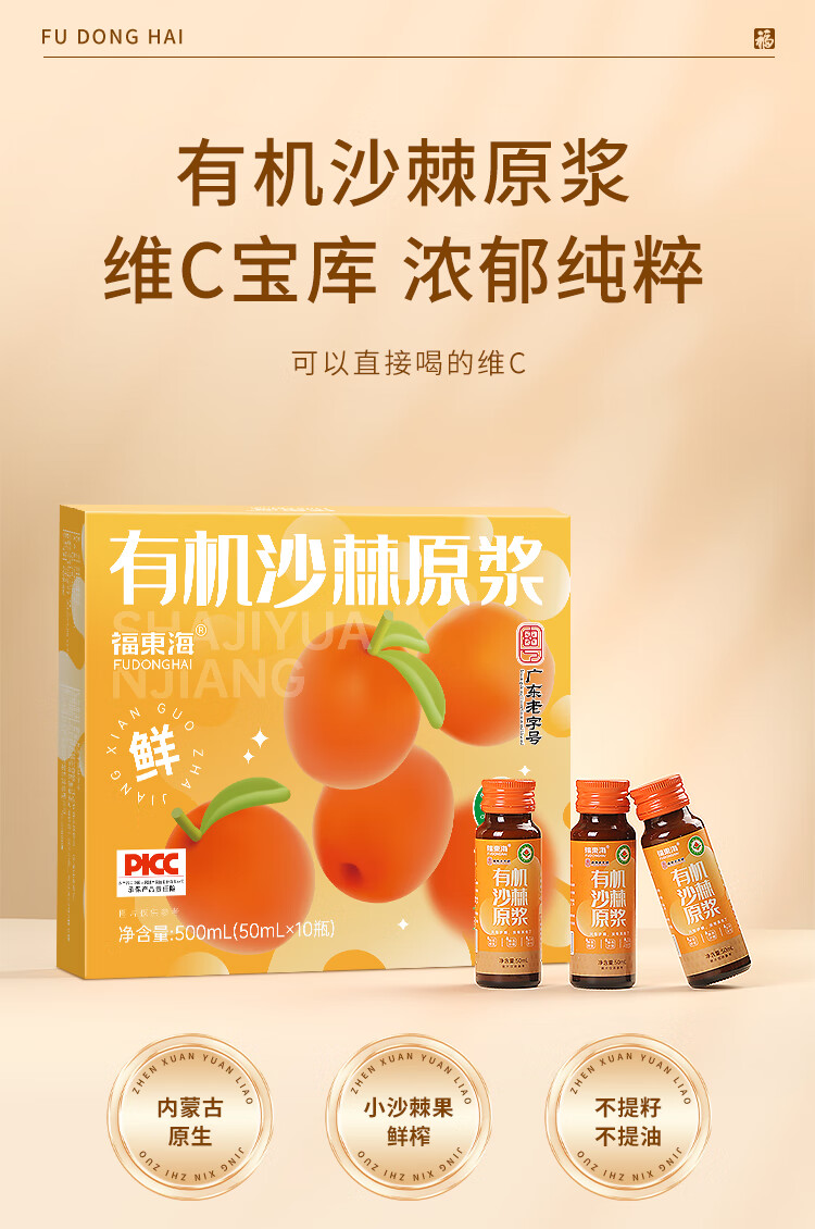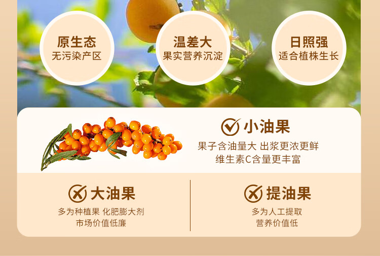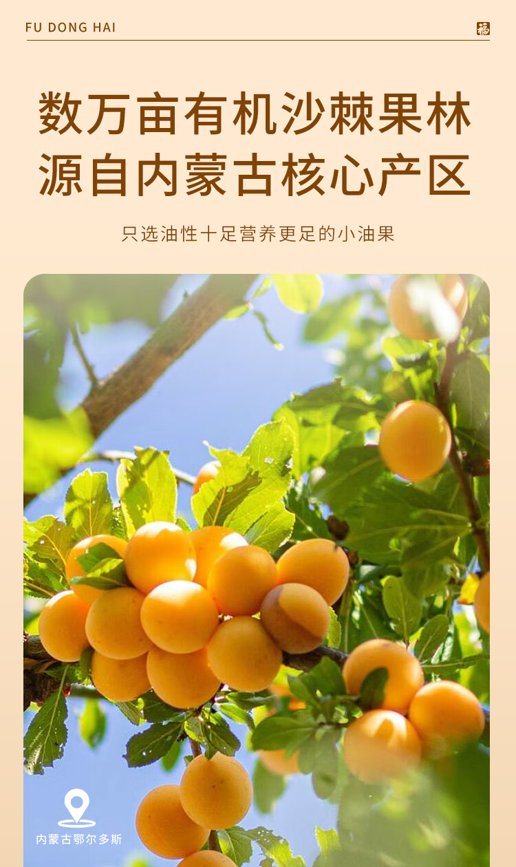 福东海 有机沙棘原浆500ml 100%原果浆鲜果生榨沙棘汁 高VC原液饮料