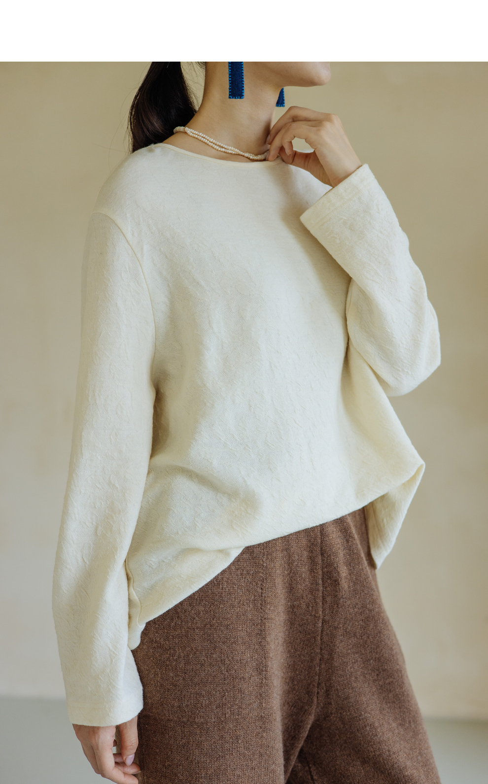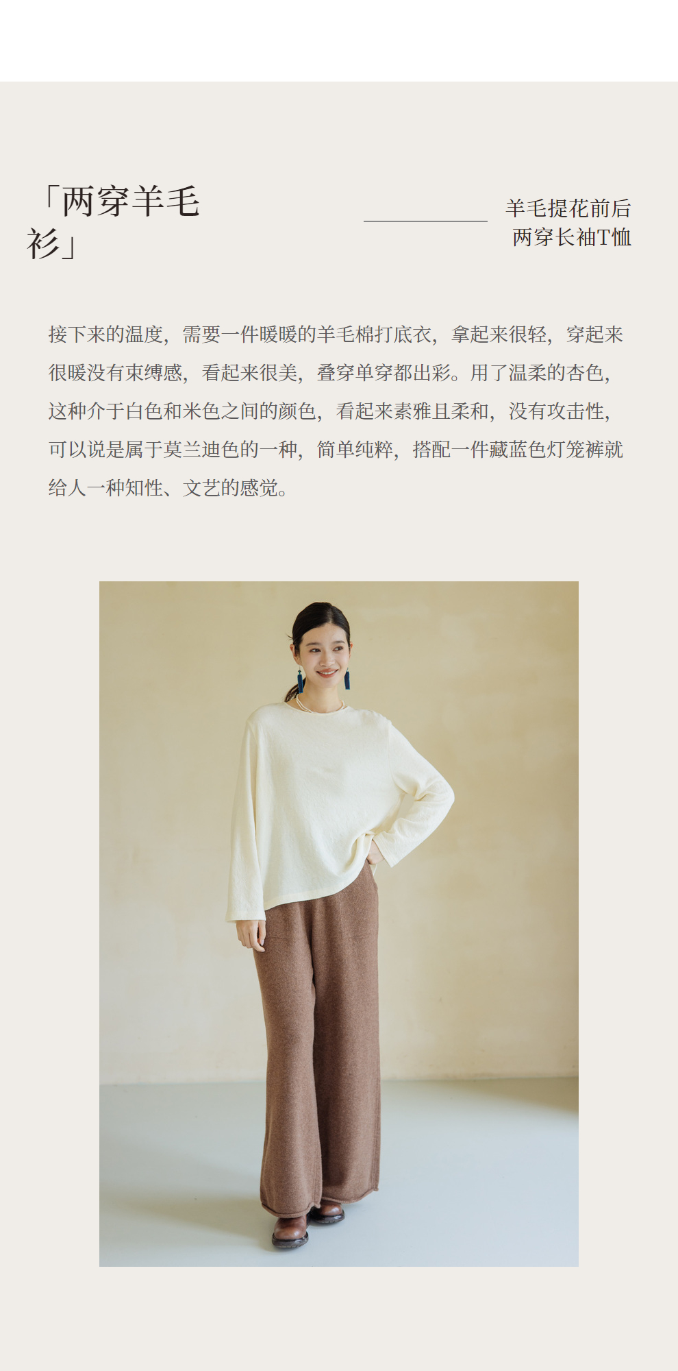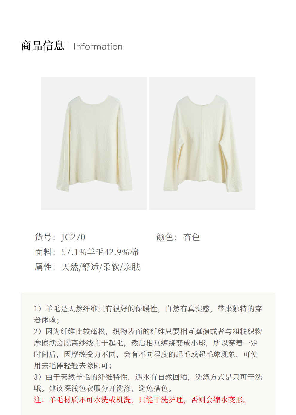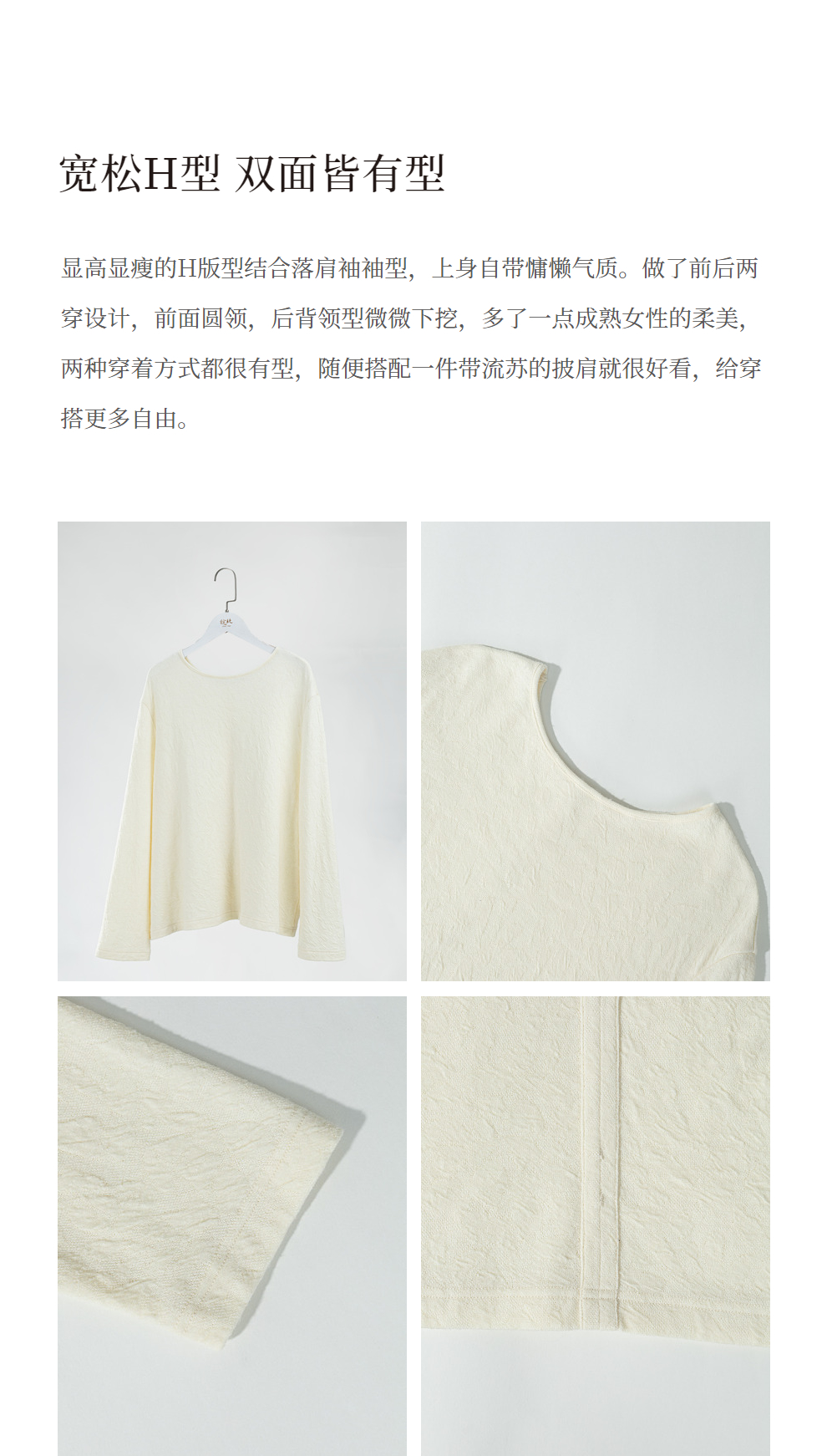 绽放旅行女装270朵/两穿羊毛提花前后长袖宽松保暖H型T恤羊毛衫