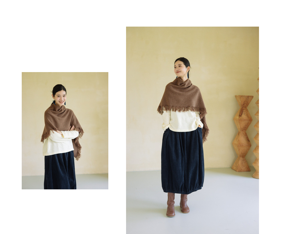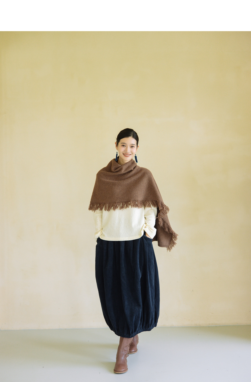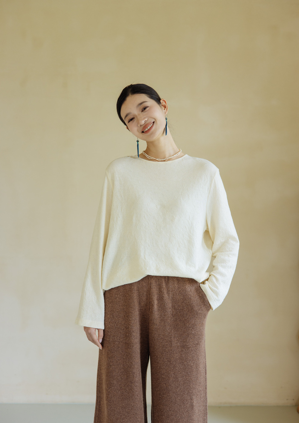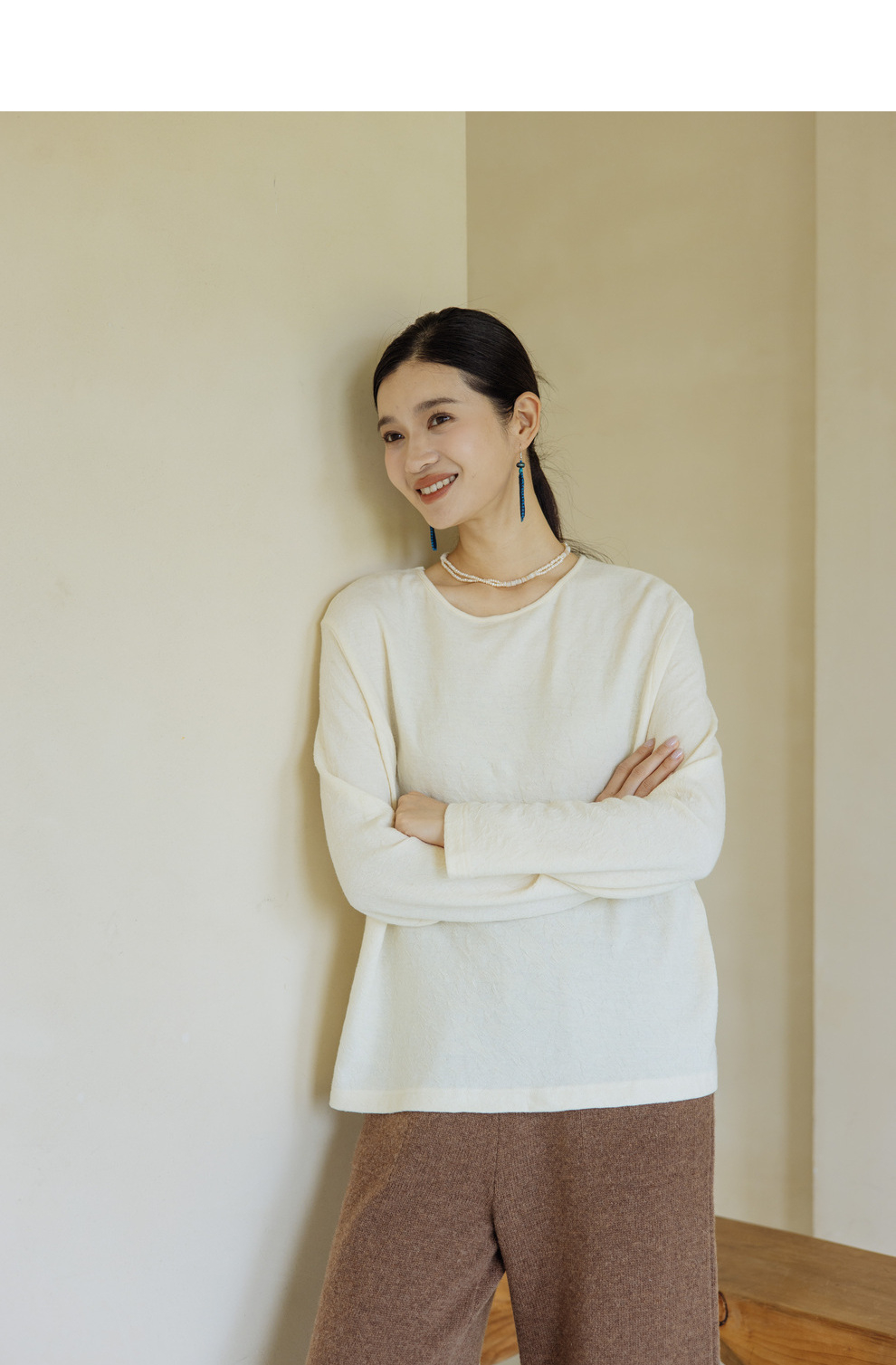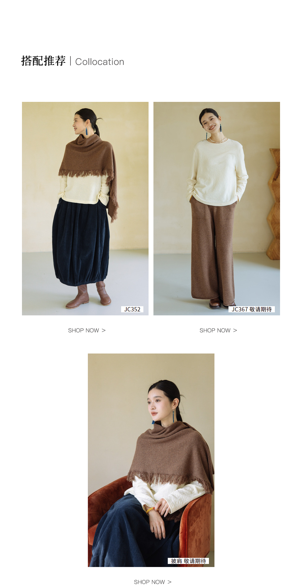 绽放旅行女装270朵/两穿羊毛提花前后长袖宽松保暖H型T恤羊毛衫