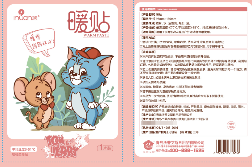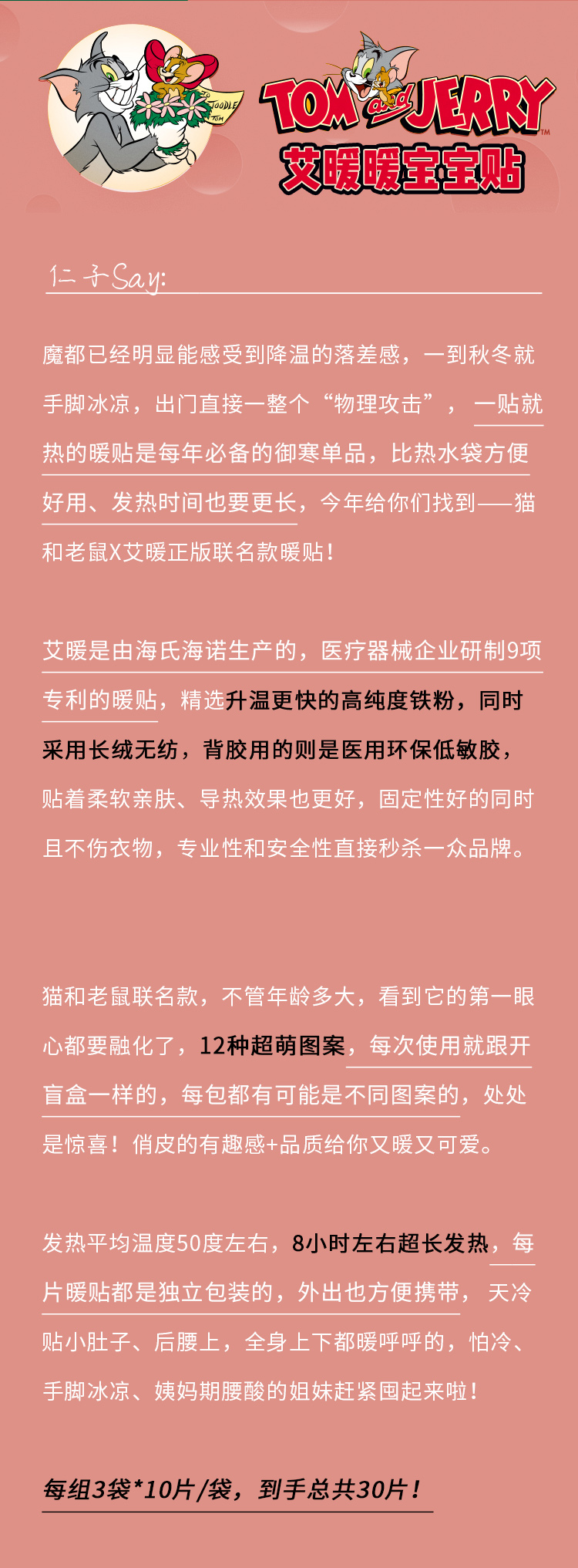 【三天左右发】艾暖 X 猫和老鼠联名款暖贴,冬季御寒必备!持续发热8小时,简直就是行走的小火炉 ! 肚子/腰部/全身能贴,哪里冷就贴哪里,贴上暖呼呼的舒服极了,怕冷和经期腰酸背痛的妹子必入!