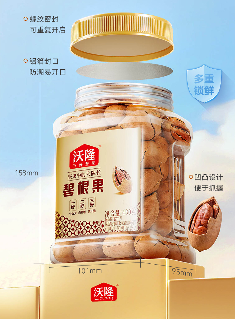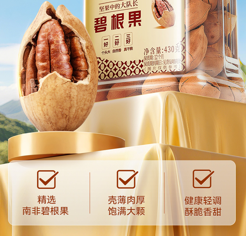 沃隆 碧根果430g 南非当季新果 低温烘烤更健康