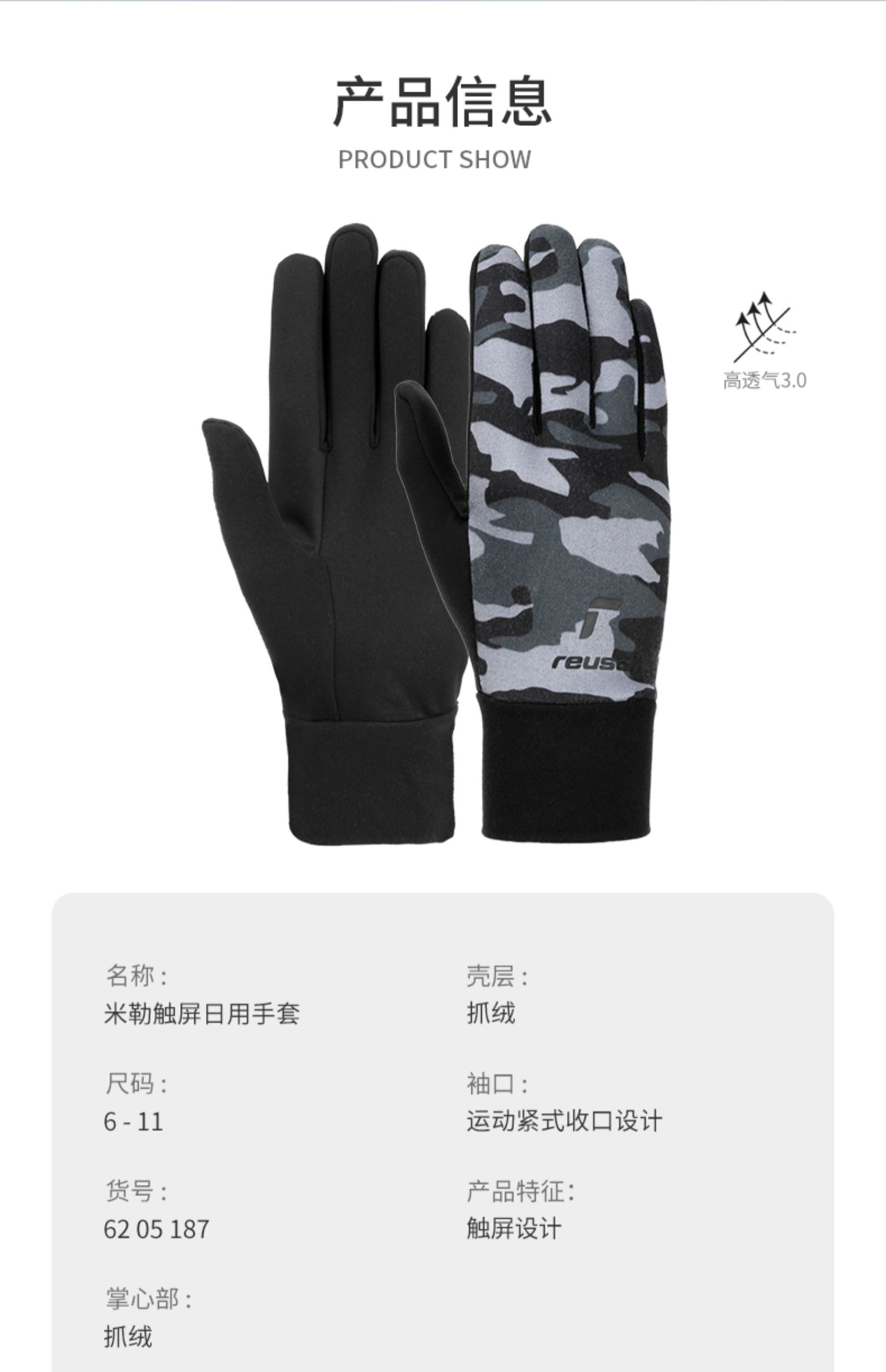Reusch炫驰内胆休闲骑行运动开车触屏滑雪手套6205187