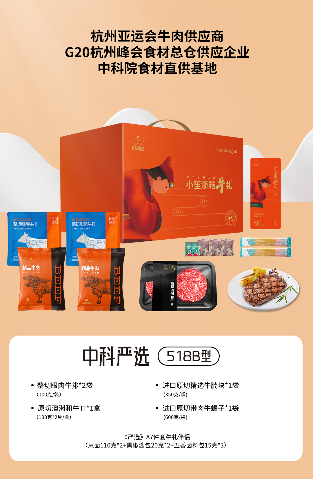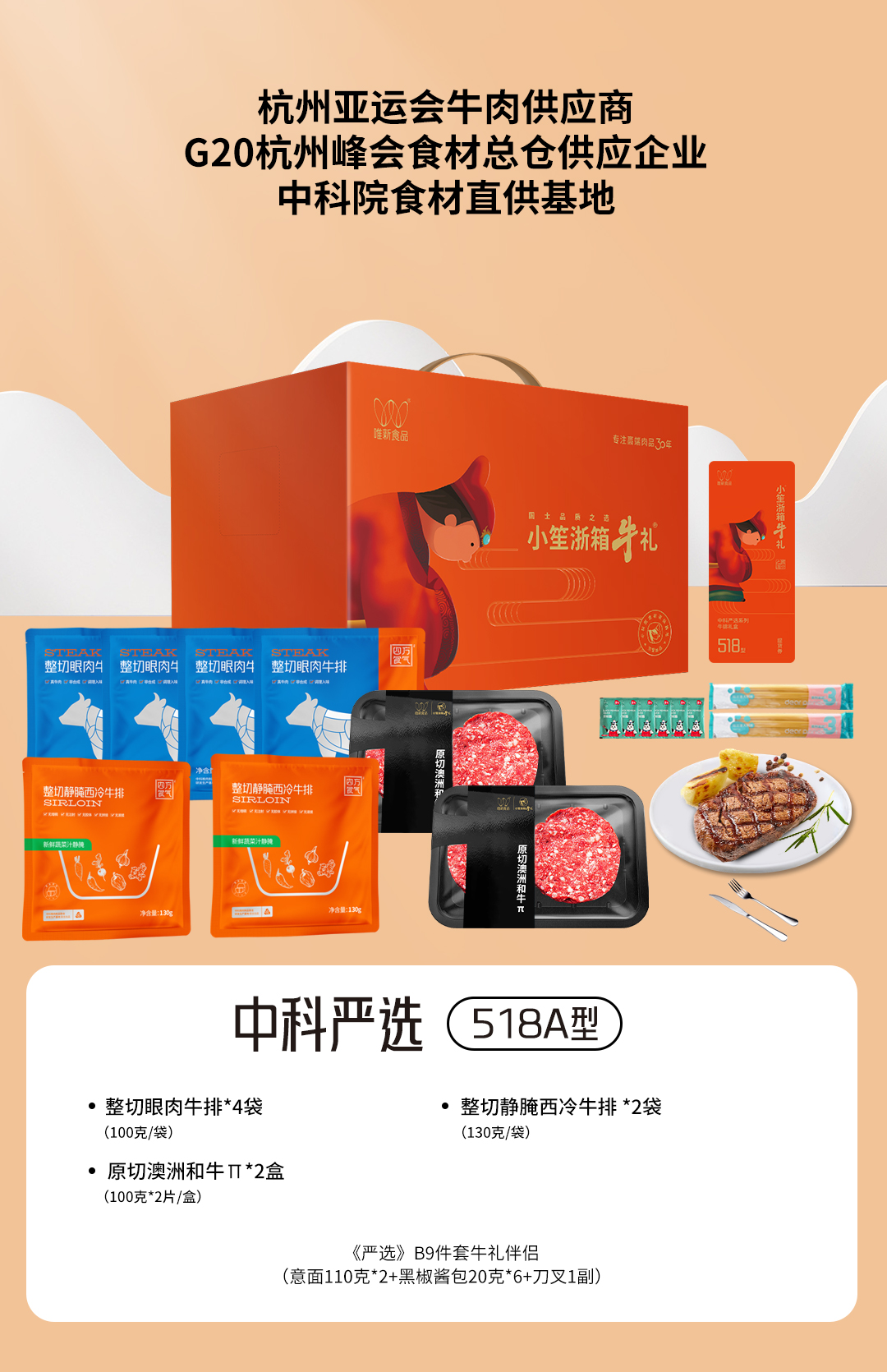 唯新 小笙浙箱牛礼《中科研选》518A/B型牛排套餐礼盒