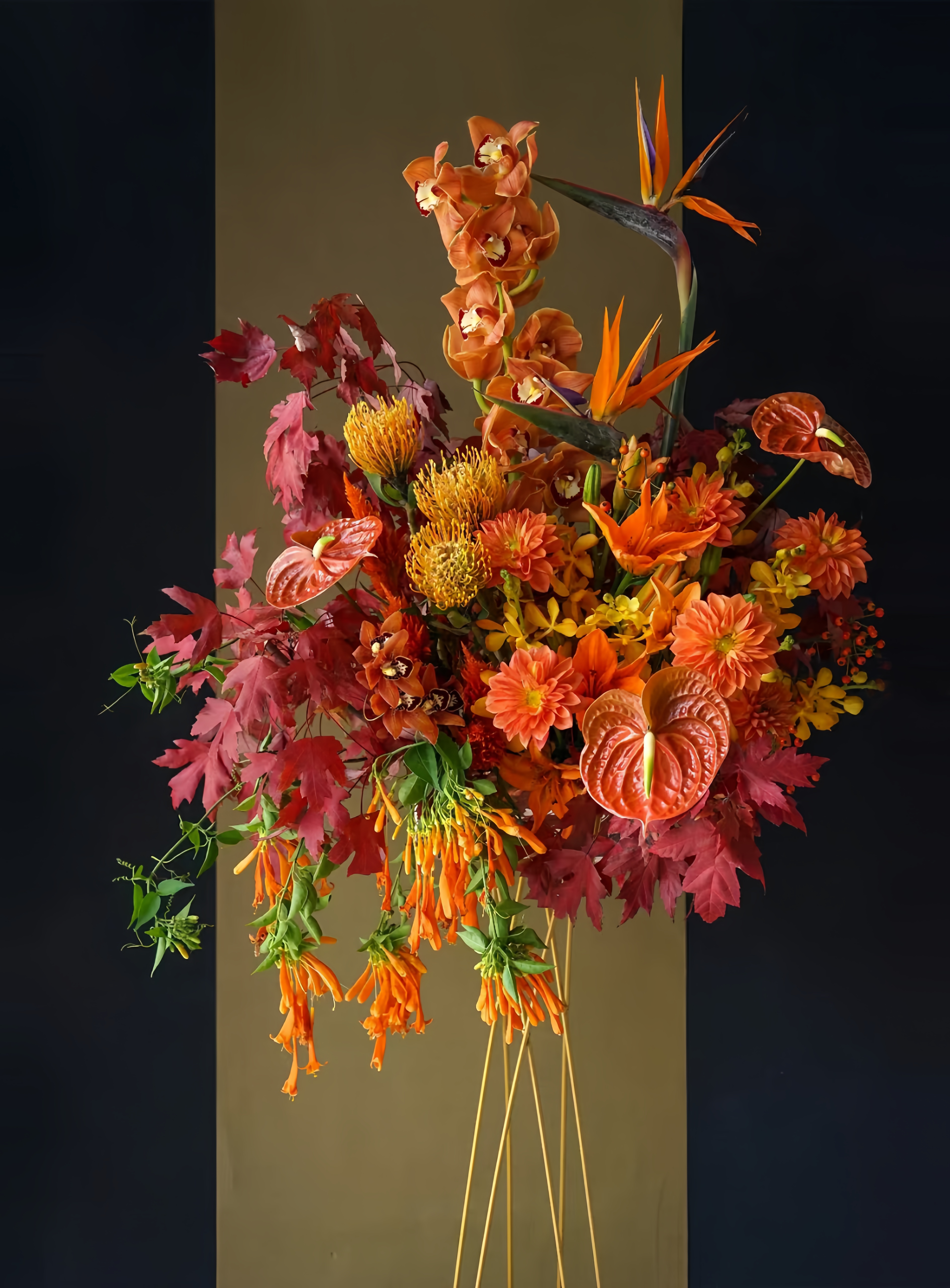 橙色系开业篮(天堂鸟款)——开业花篮高端乔迁庆典商务用花|北京5环内免费送花上门