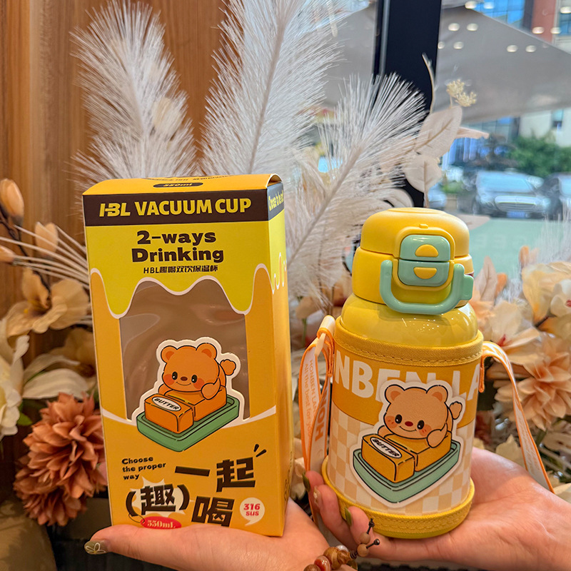 【316不锈钢❗️卡通双饮儿童保温杯】高颜值大容量「卡皮熊双饮保温杯」保温小保镖,守护整日温暖,大容量保温水杯户外便携杯子L