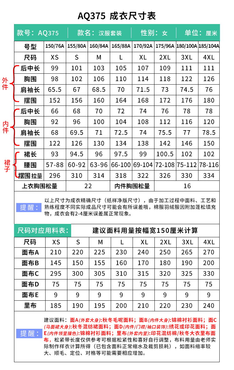 裁缝学苑AQ375新款毛呢圆领长袄搭松紧马面裙衬衫上衣套装纸样样板