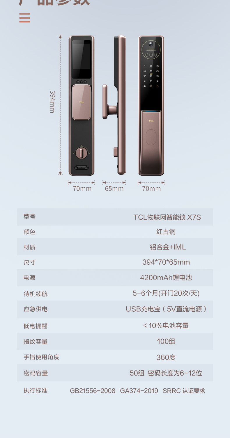 【智能家居】TCLX7S猫眼防盗门智能门锁