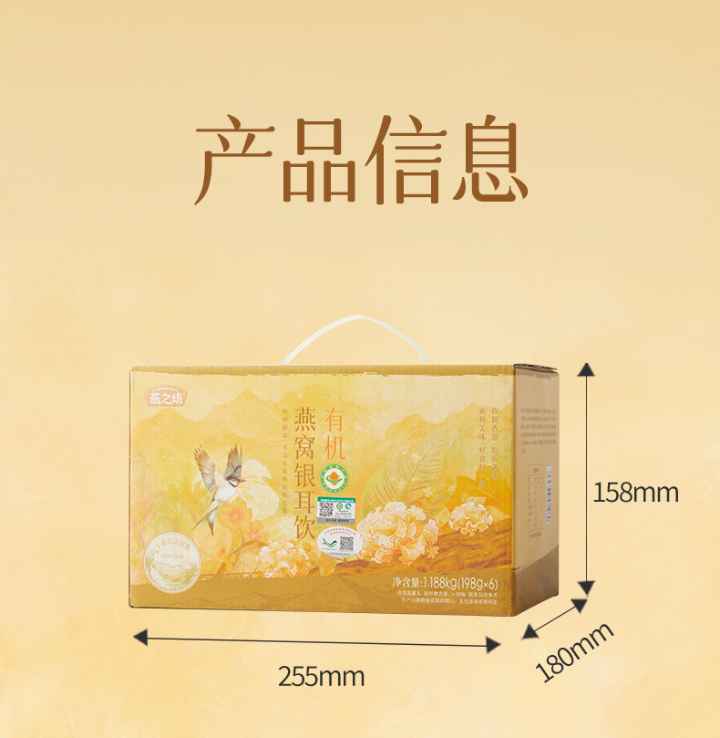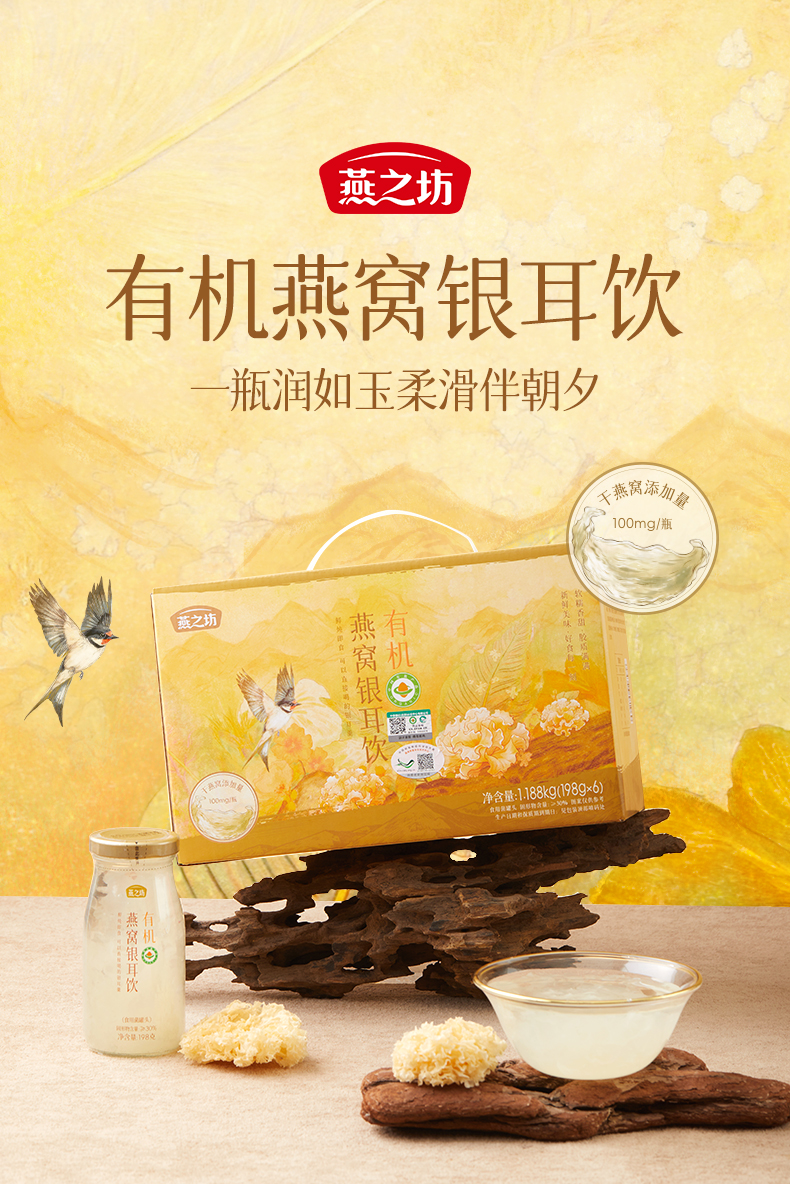 【商城限时特惠】燕之坊有机燕窝银耳饮礼盒198g*6瓶
