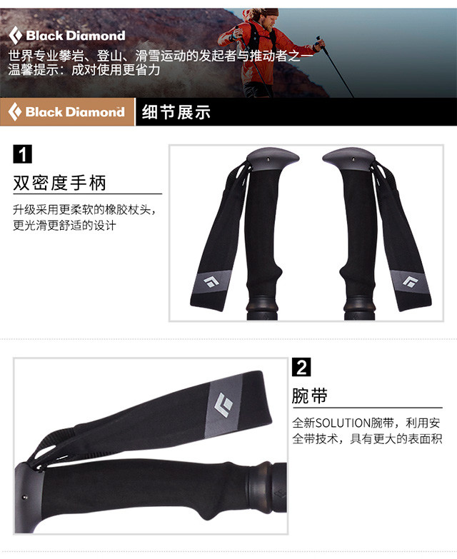 BD BlackDiamond 男款 登山杖 徒步手杖 四季通用款112502 JX100