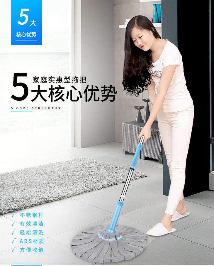【一拧即干不脏手 柔软珊瑚绒不伤地板】自拧水大号免手洗拖把旋转拖把