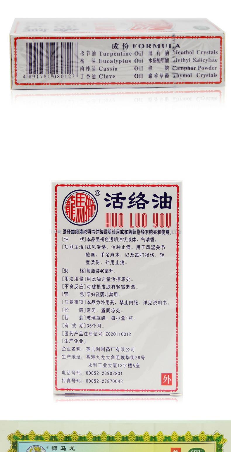 狮马龙活络油40ml英吉利香港祛风活络消肿止痛跌打损伤港版正版