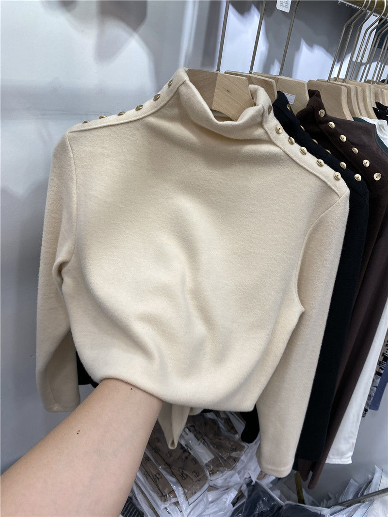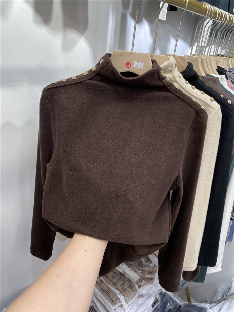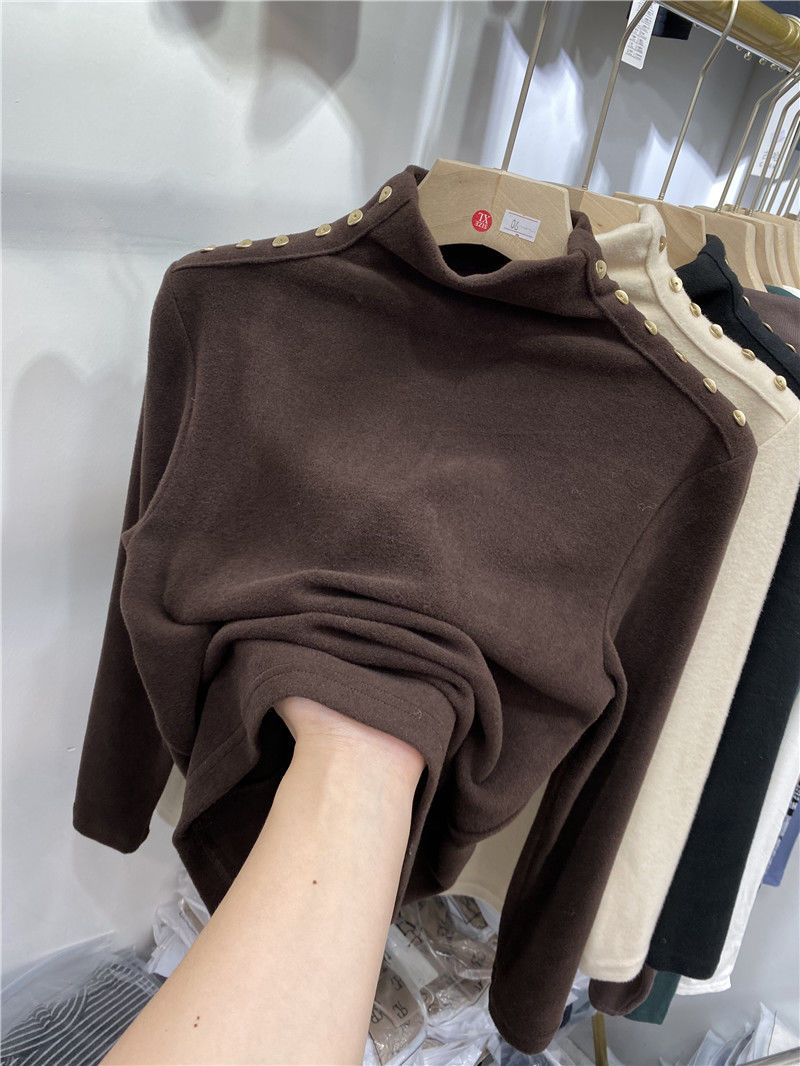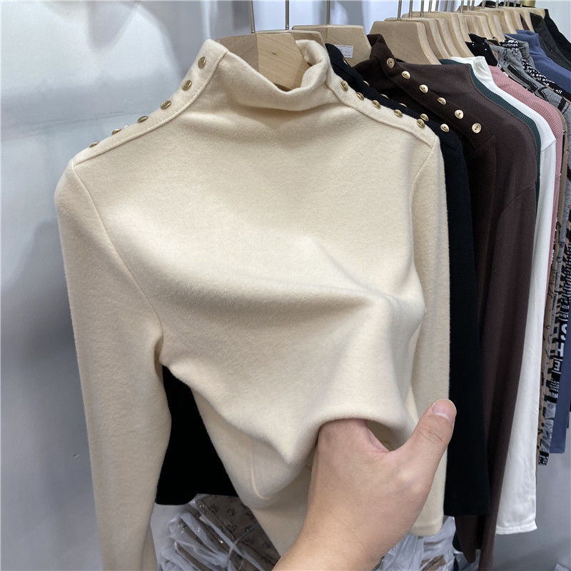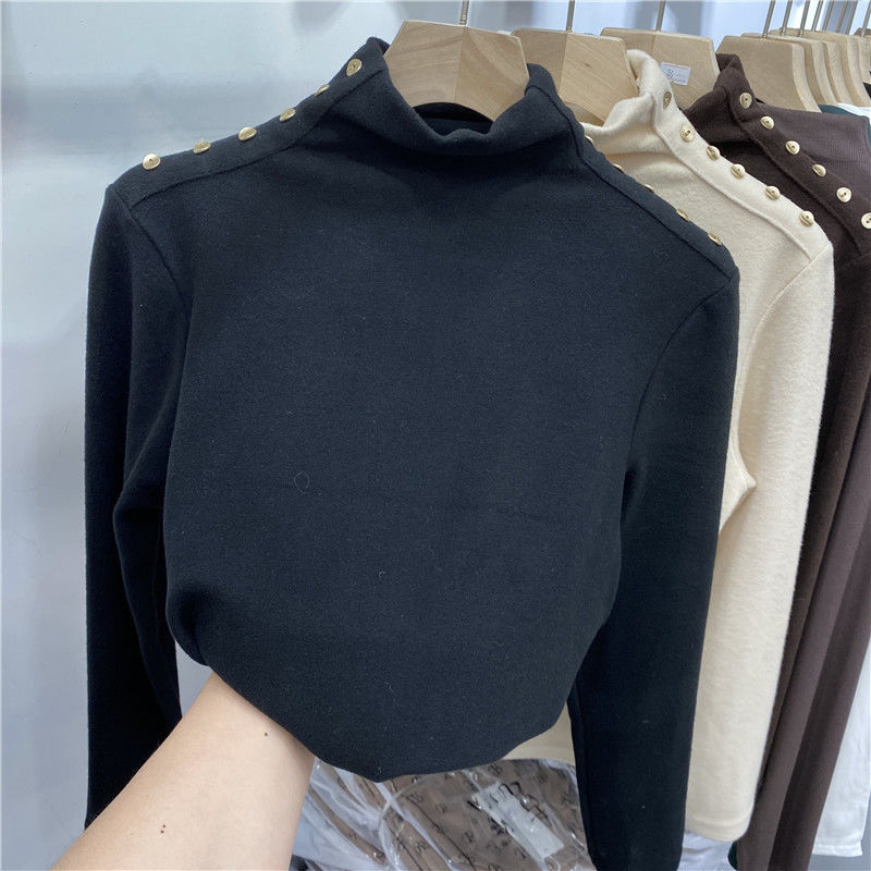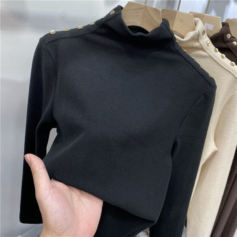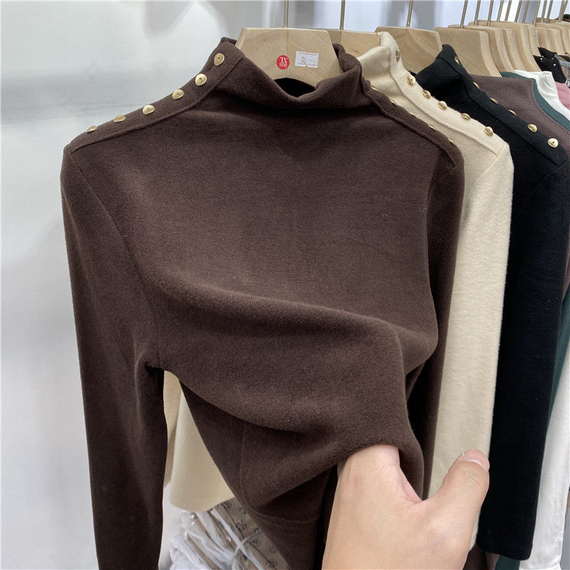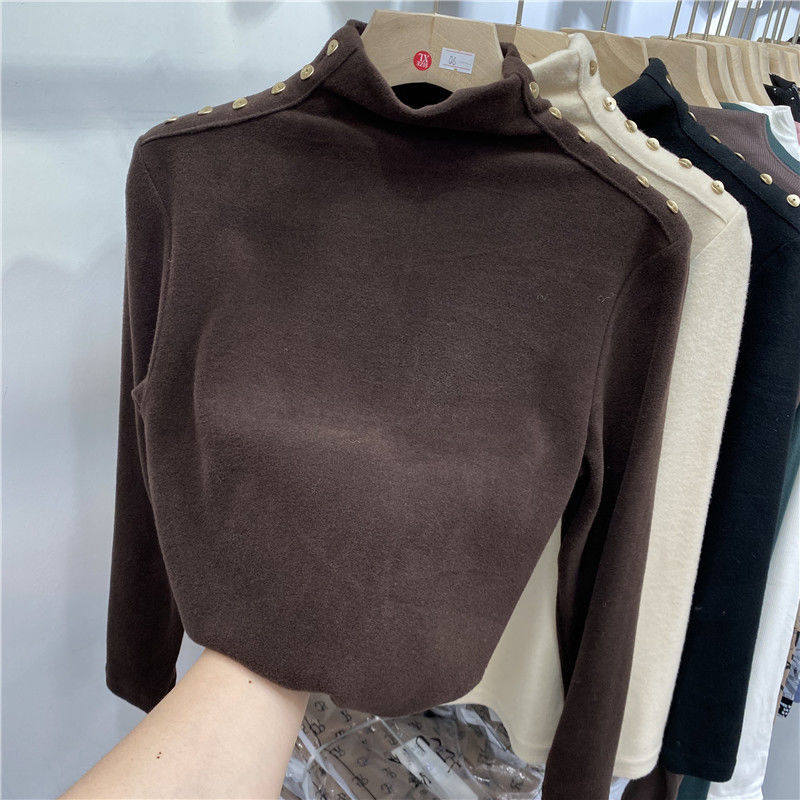 欧货厚磨毛德绒长袖T恤女2021秋冬新款内搭打底衫设计感百搭上衣