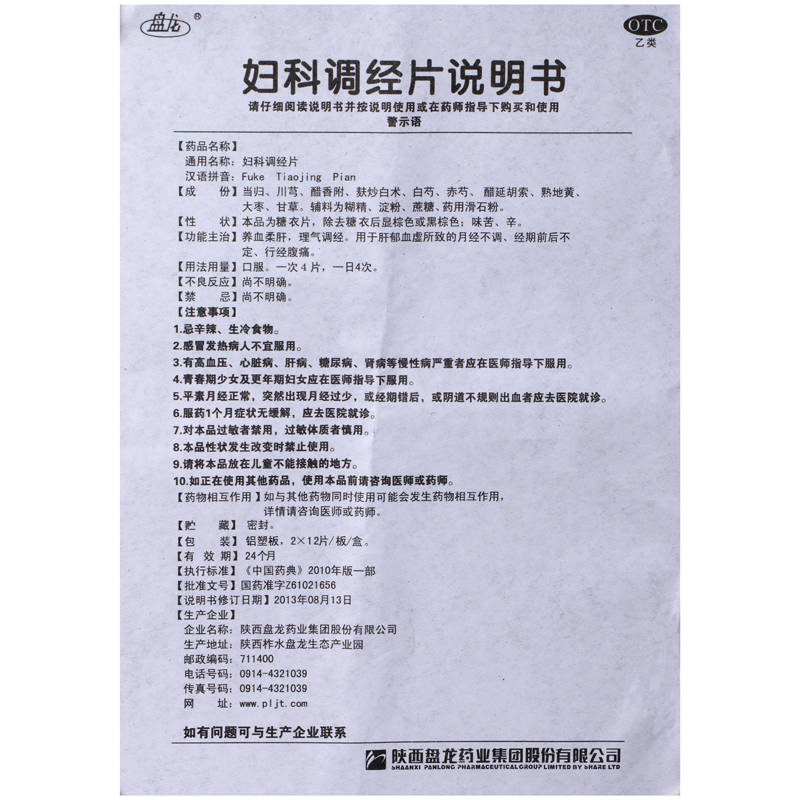 盘龙 妇科调经片24片月经不调养血柔肝经期不定行经腹痛理气调经