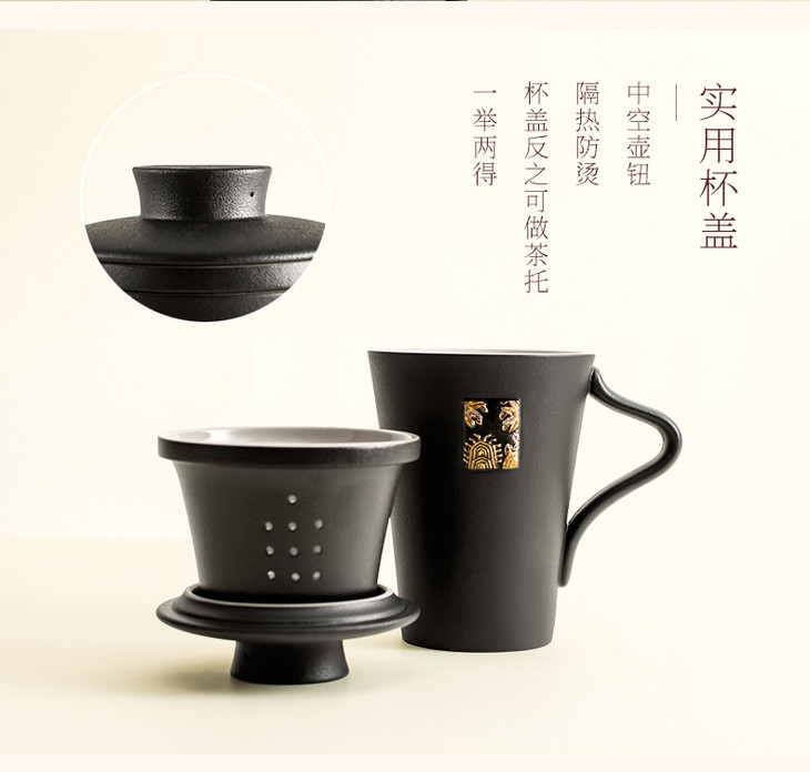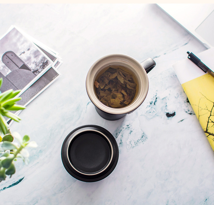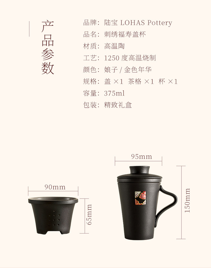 【LOHAS陆宝 禅风福寿盖杯】陆宝禅风福寿盖杯 办公泡茶飘逸过滤陶瓷马克杯子375ml【台湾陆宝】