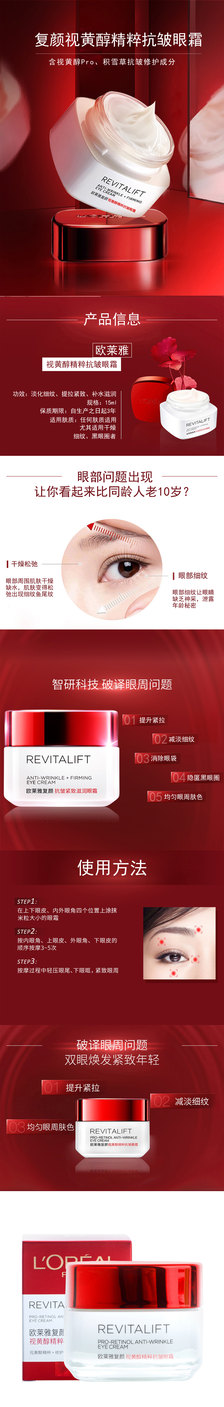 欧莱雅复颜视黄醇精粹抗皱眼霜(15ml)【30171380】