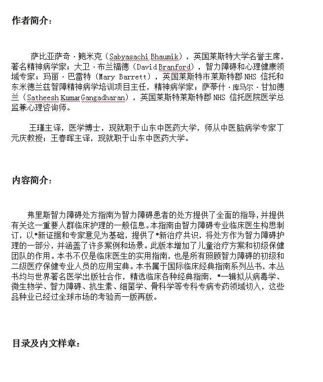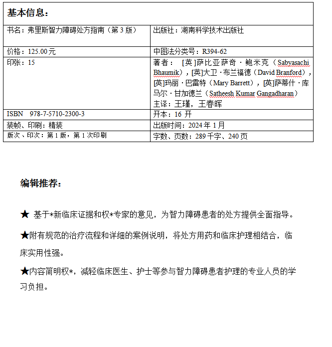 弗里斯智力障碍处方指南(第3版)国际临床经典指南系列丛书 规范治疗流程详细案例说明
