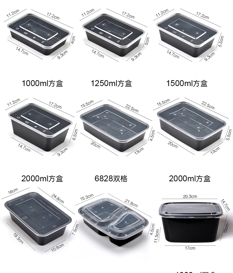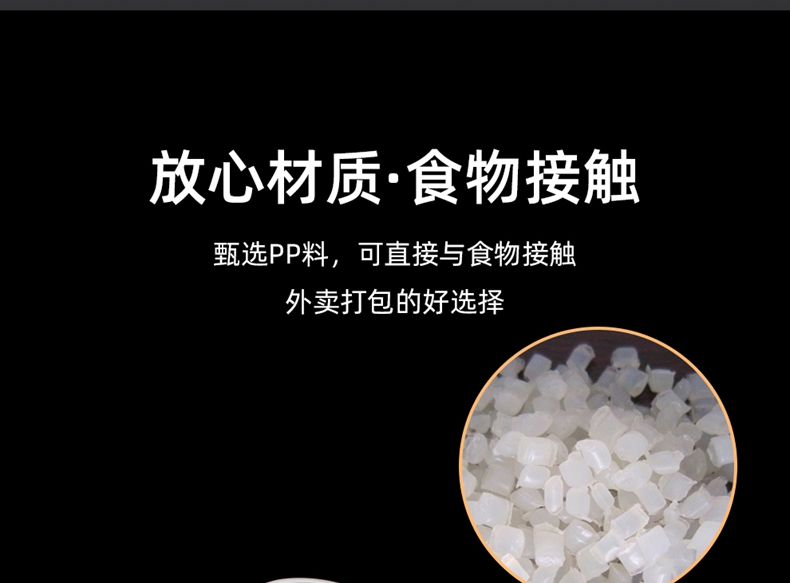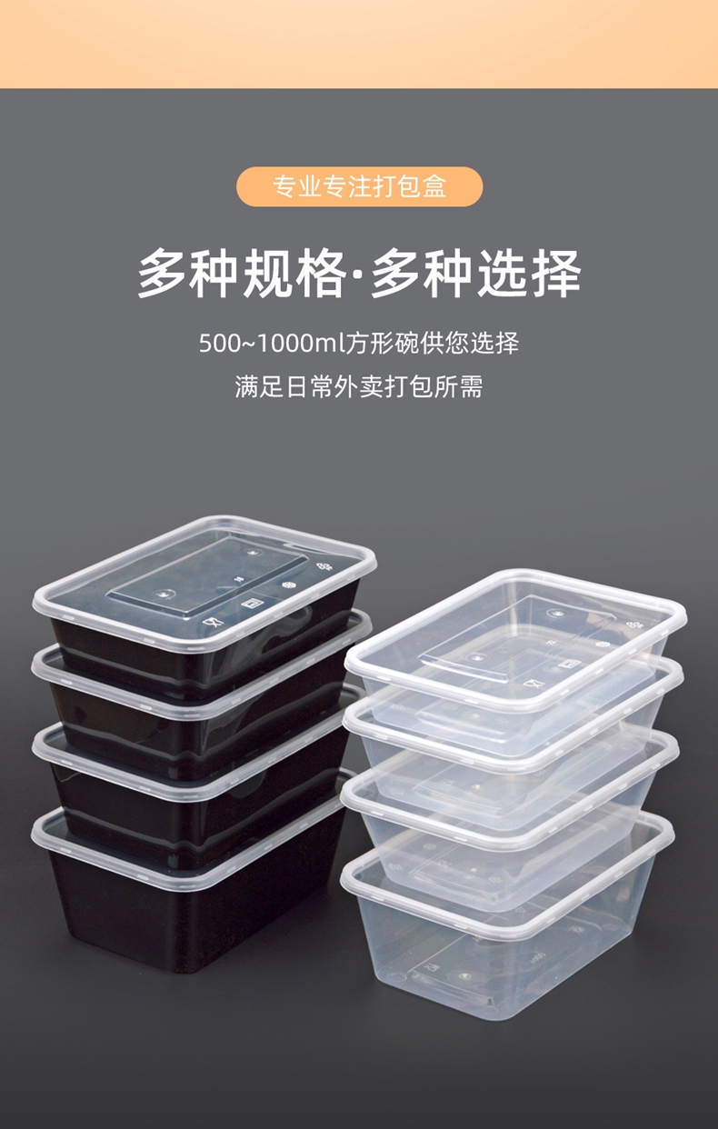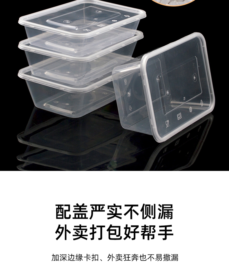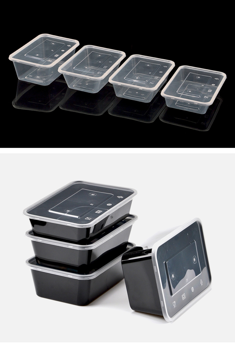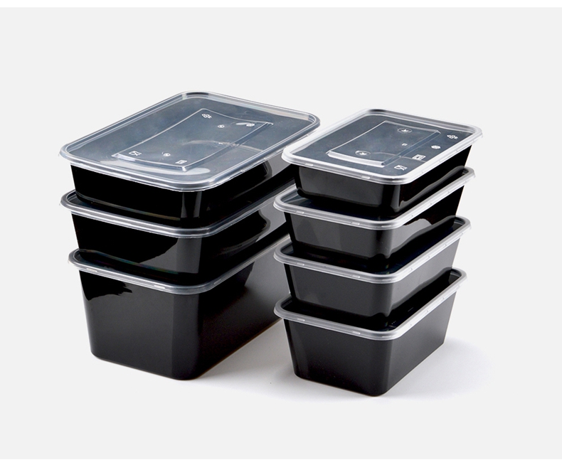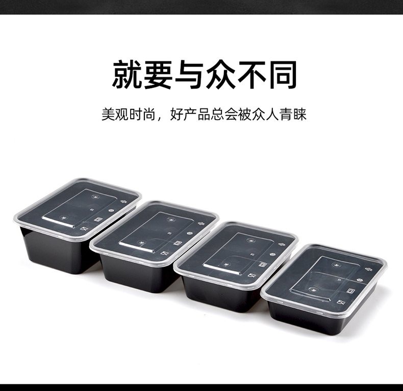 喇叭花打包盒一次性圆形塑料餐盒外卖碗黑色饭盒餐盒带盖50套