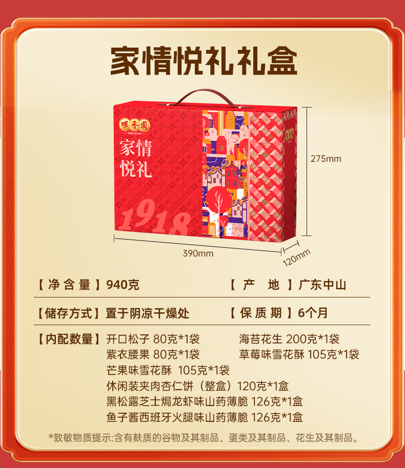 【咀香园家情悦礼礼盒940g】礼盒广式传统糕点手信8盒装礼包糕点公司福利送礼团购