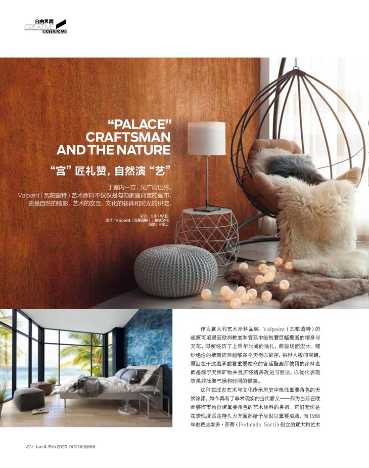 我们不仅关注,建筑、室内和产品等相对宏大的对象,也将目光聚焦于材料、表皮、肌理等具体而微的元素。在1&2月新刊专题中,我们以“自由界面”为题,意图呈现材料在产品、室内和建筑等领域的多元表达和丰富魅力。“自由”二字也可以此作为整本新刊的基调:你将在“资讯”版块自由穿梭于艺术跨界、设计趋势、前沿议题、本地资讯,在“建筑&室内版块”自由抵达伦敦排屋、米兰住所、台湾艺术中心、特雷维索阁楼,在“家居&设计”版块自由感受模糊了设计与艺术边界的叙事维度、设计史中经典作品的重新再版、简约与复杂相融一体的创作逻辑、古老智慧与现代技术的巧妙嫁接、原始与当代犹如量子力学般的凝聚游走。