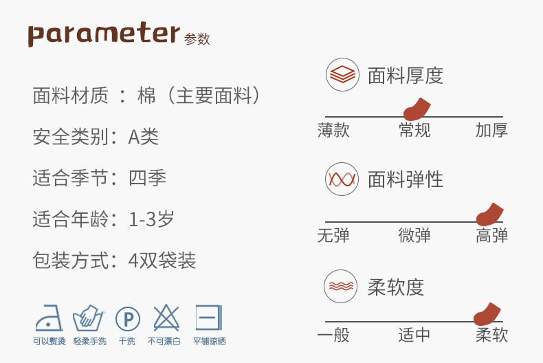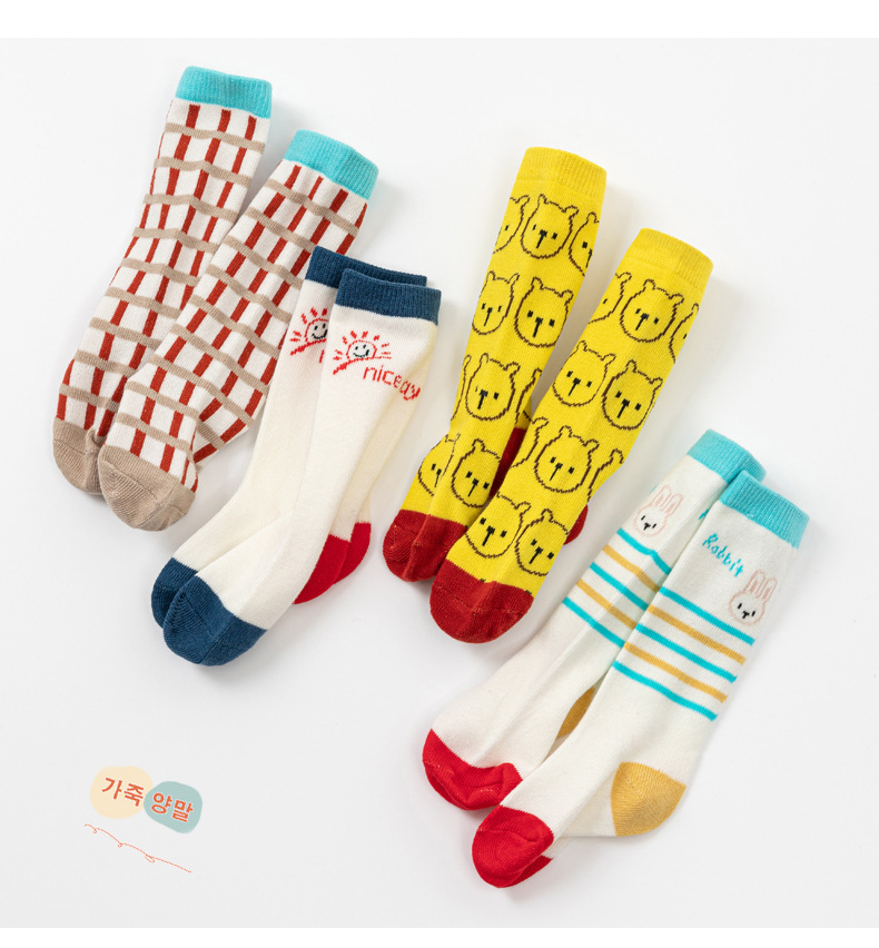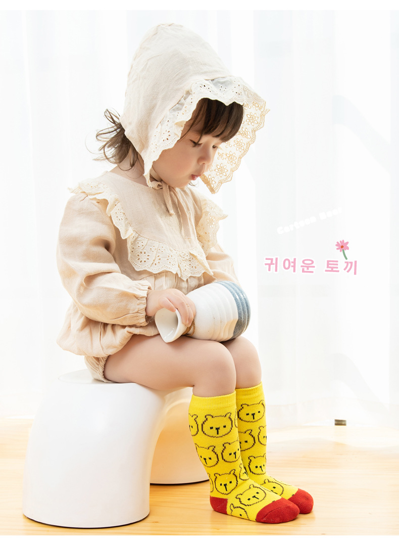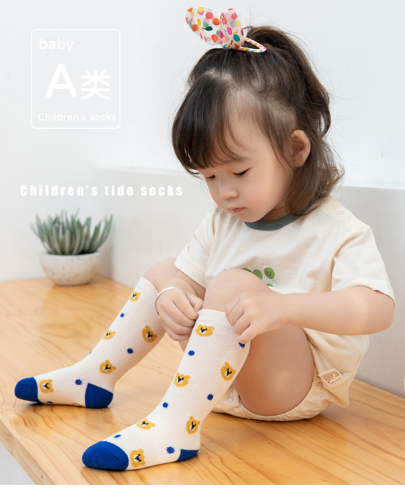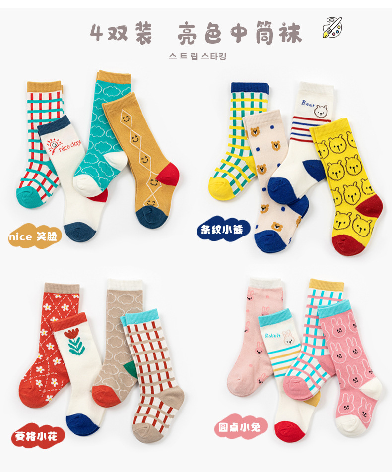 【4双装 婴幼儿亮色中筒袜】春夏韩版卡通过膝男女宝宝袜婴幼儿小童长筒袜亮色中筒袜