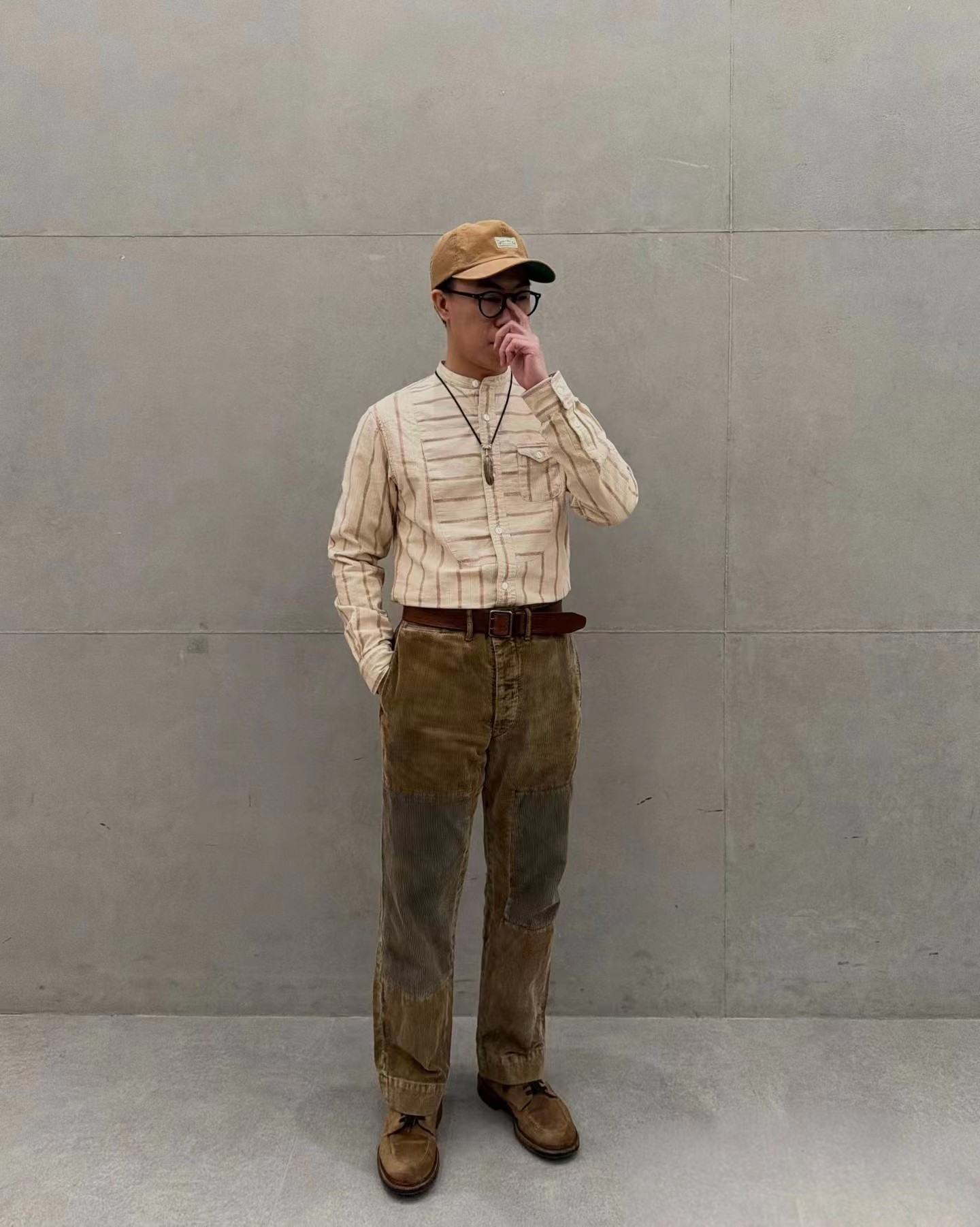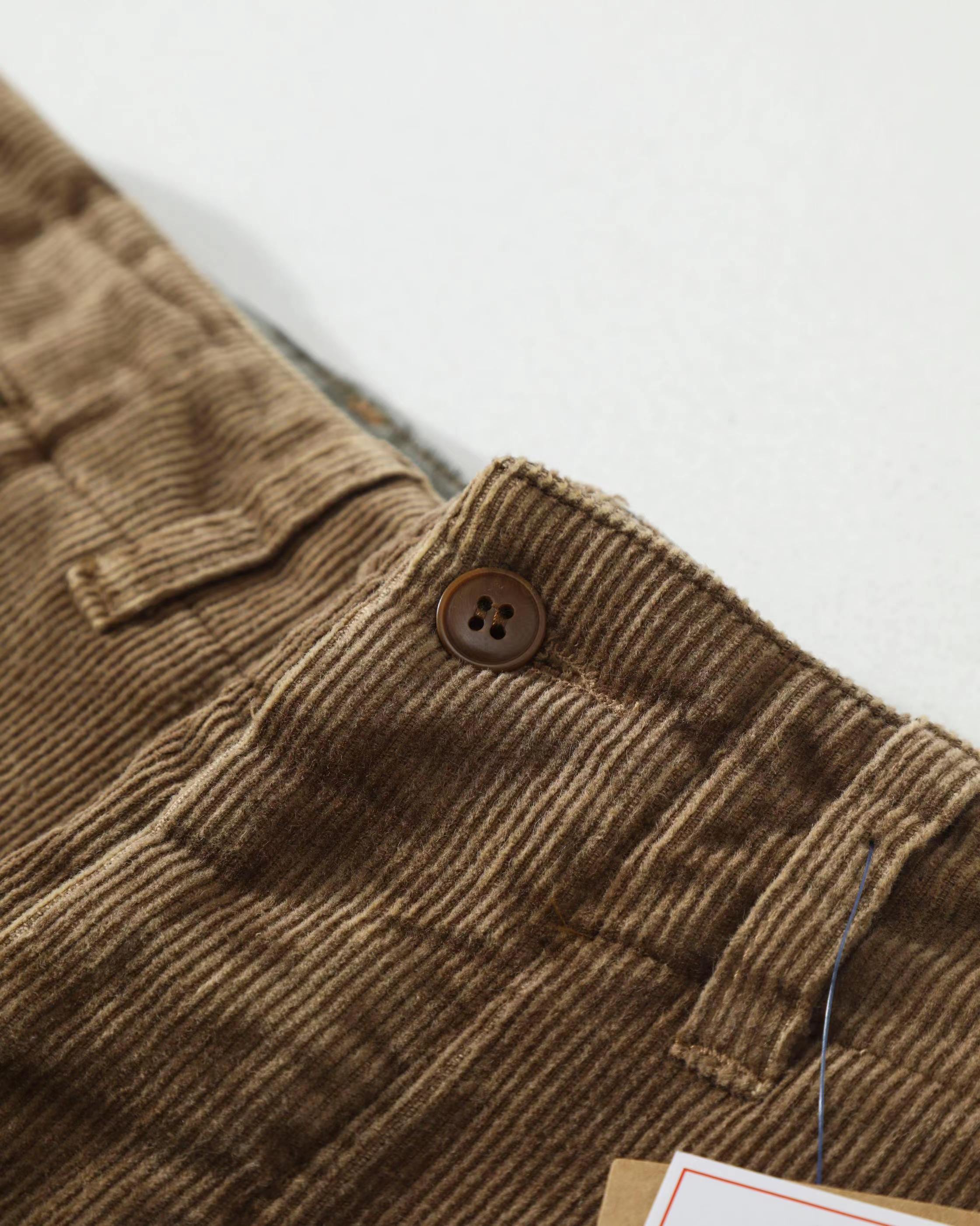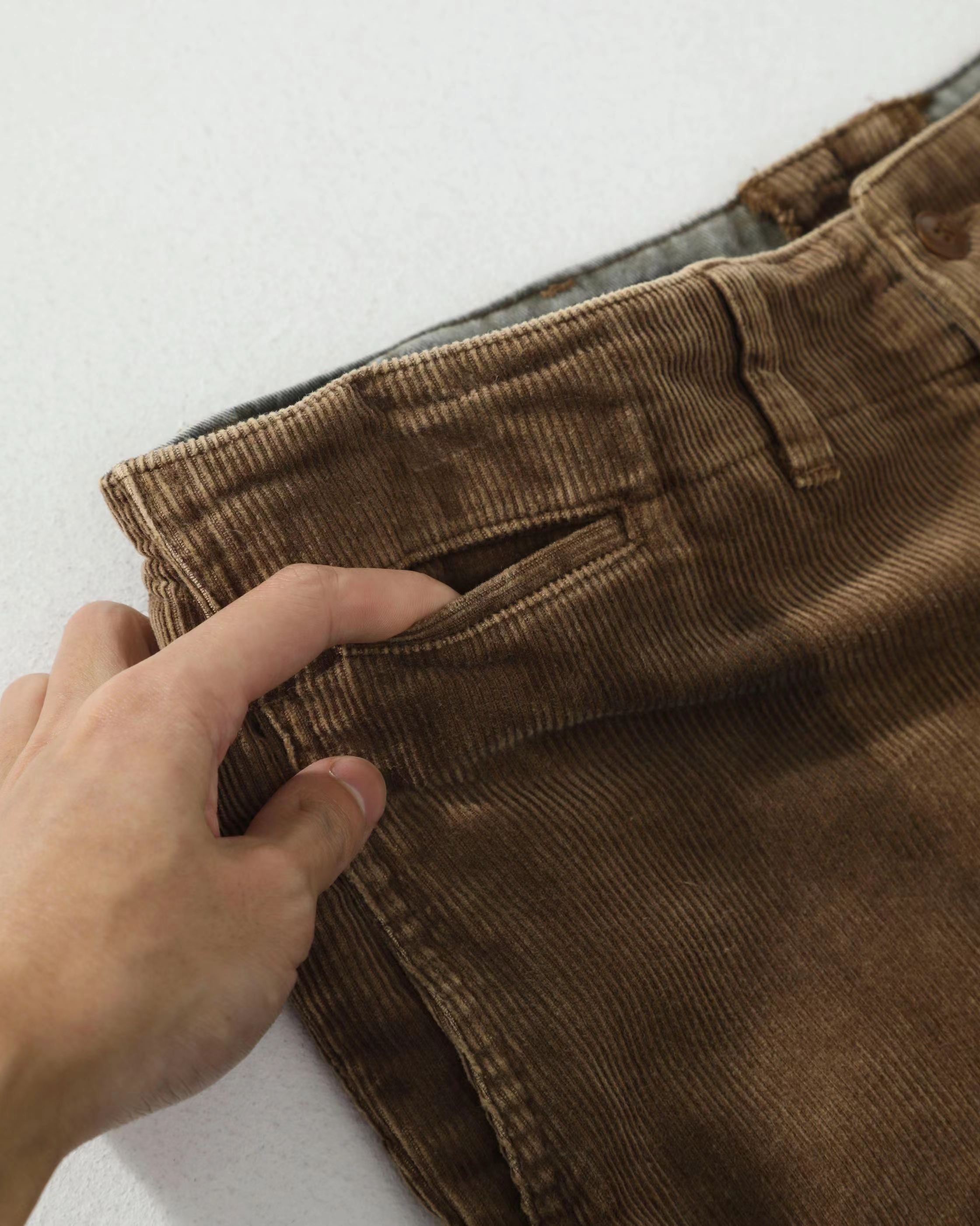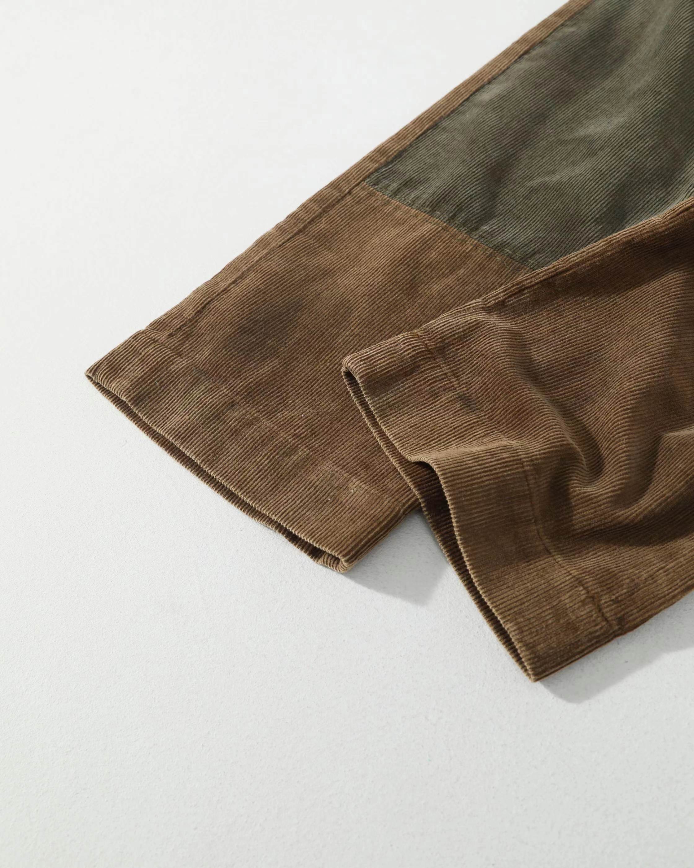 拼接棉质灯芯绒长裤,采用高密度灯芯绒面料,表面绒条清晰,触感柔软且保暖性佳,经过做旧水洗处理,呈现出自然的褪色与磨损效果,赋予裤子时间沉淀的质感。拼接结构:膝盖处采用深色灯芯绒补丁拼接,不仅增强了耐磨性,更成为视觉焦点,打破单一色调的沉闷,增添层次感与设计感。剪裁版型:直筒宽松剪裁,修饰腿型,穿着舒适不紧绷,适合多种身材,同时保留了工装裤的硬朗线条