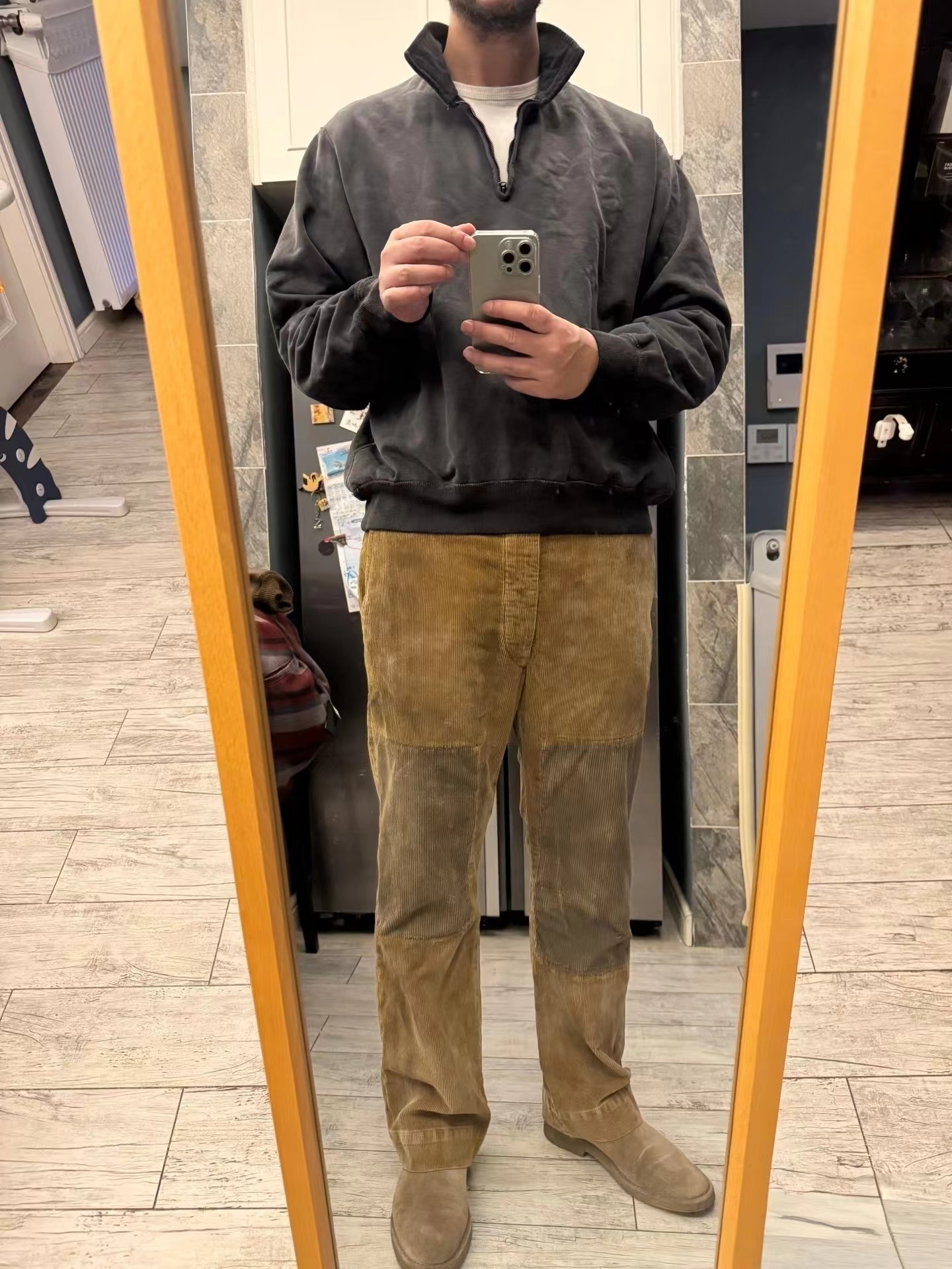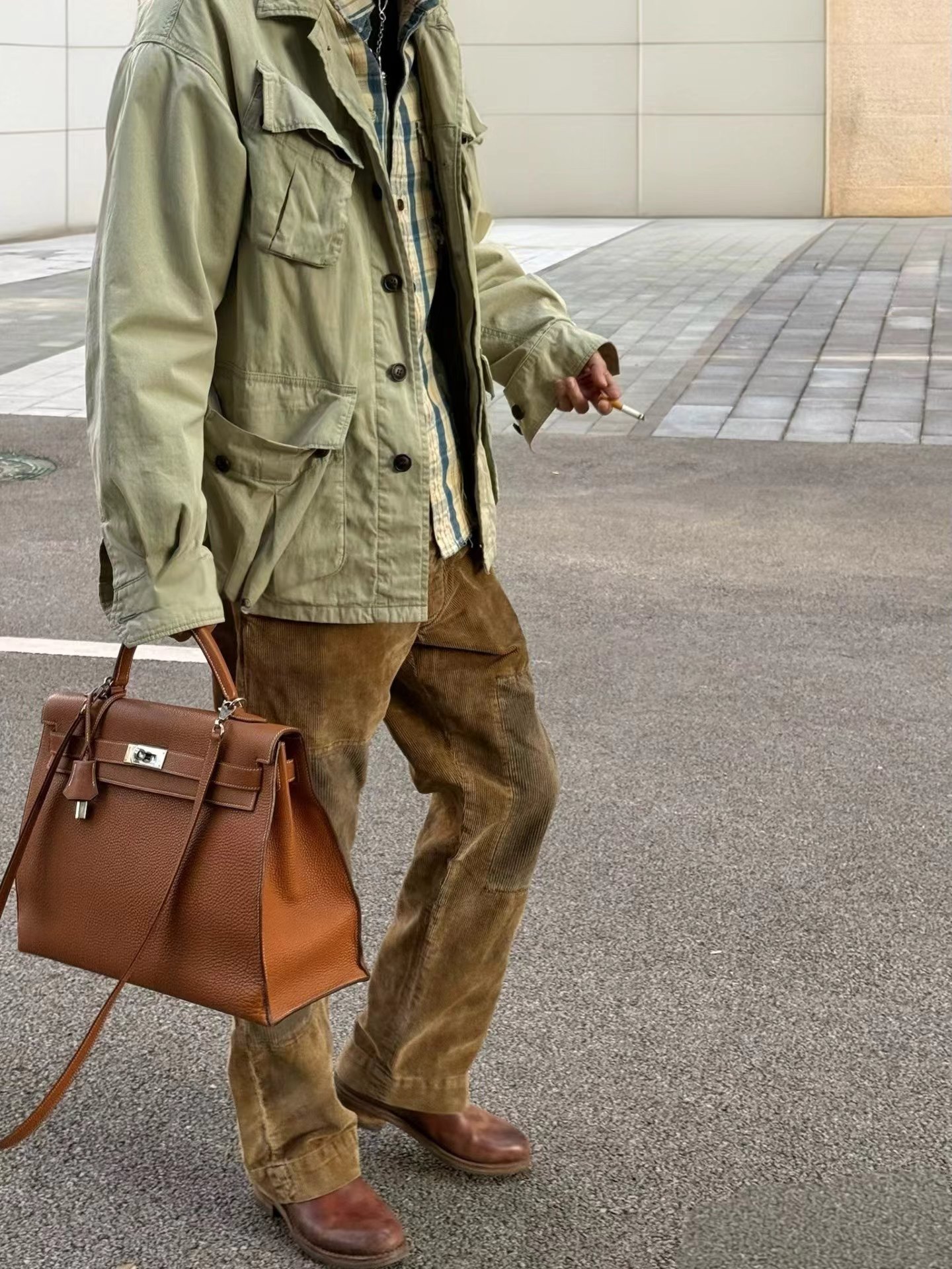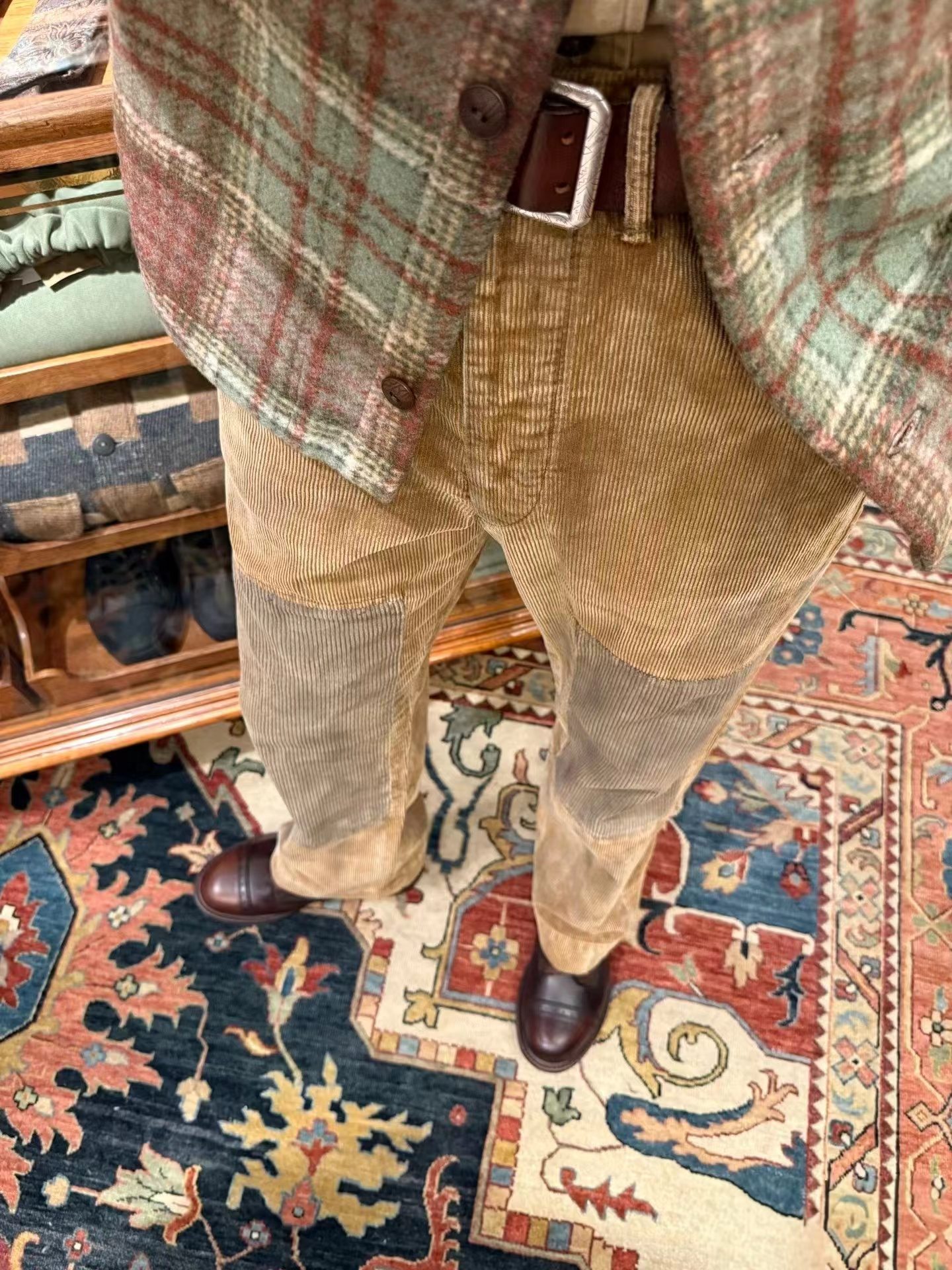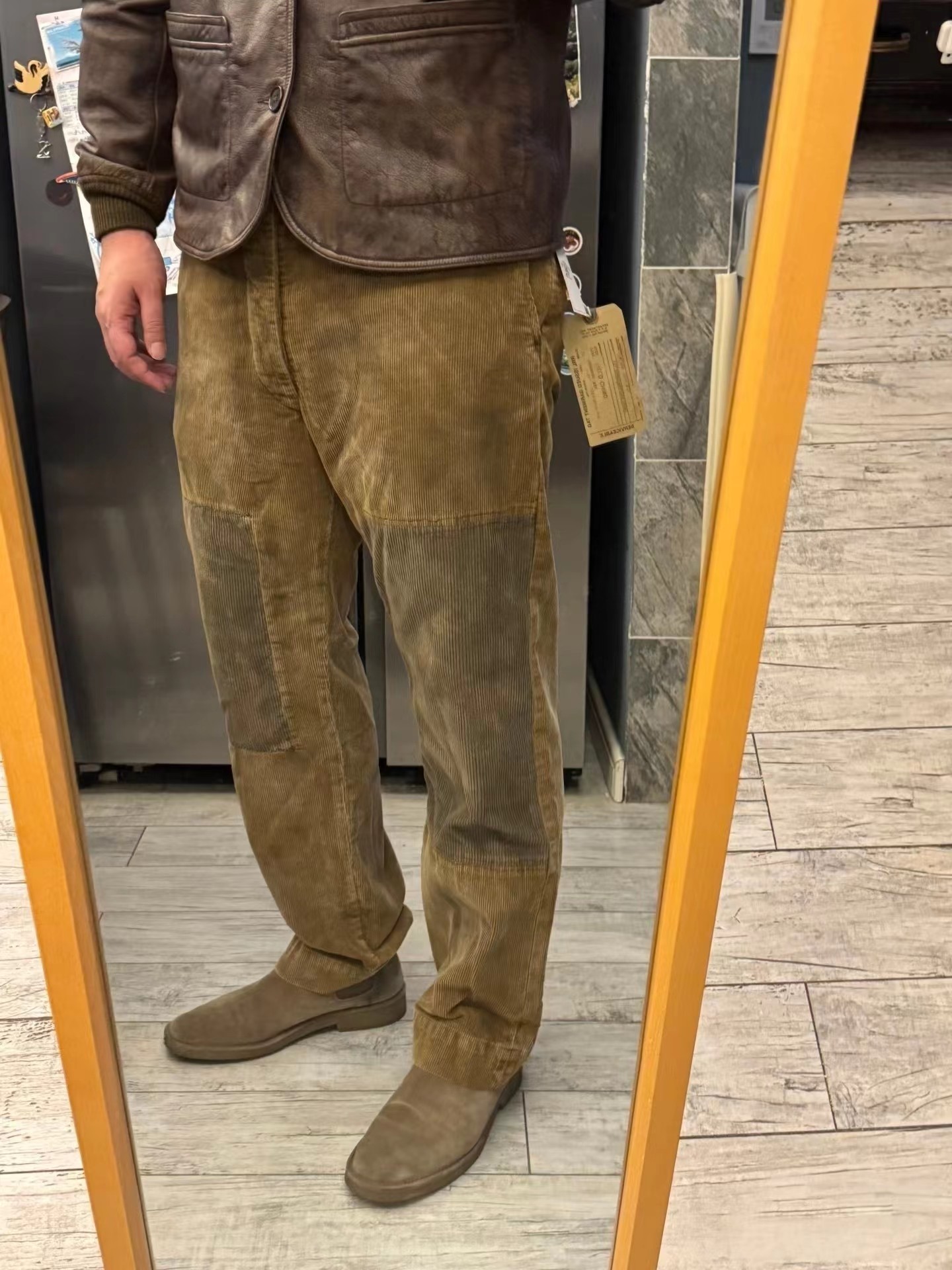 拼接棉质灯芯绒长裤,采用高密度灯芯绒面料,表面绒条清晰,触感柔软且保暖性佳,经过做旧水洗处理,呈现出自然的褪色与磨损效果,赋予裤子时间沉淀的质感。拼接结构:膝盖处采用深色灯芯绒补丁拼接,不仅增强了耐磨性,更成为视觉焦点,打破单一色调的沉闷,增添层次感与设计感。剪裁版型:直筒宽松剪裁,修饰腿型,穿着舒适不紧绷,适合多种身材,同时保留了工装裤的硬朗线条