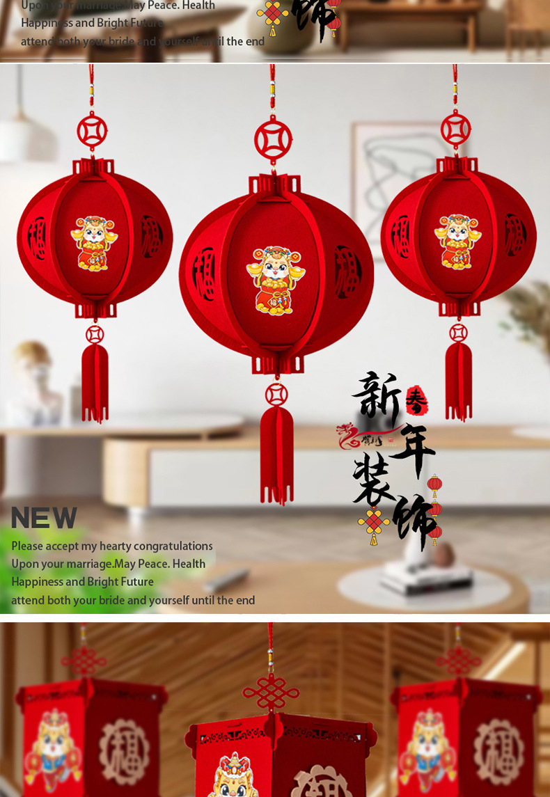 【立体不变形❗️喜迎新年挂件】方形双层宫灯 圆形宫灯 蛇年过年春节福字灯笼新年元宵装饰挂饰商场家用室内场景布置