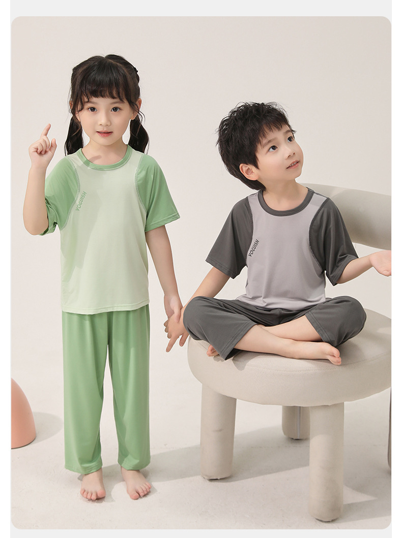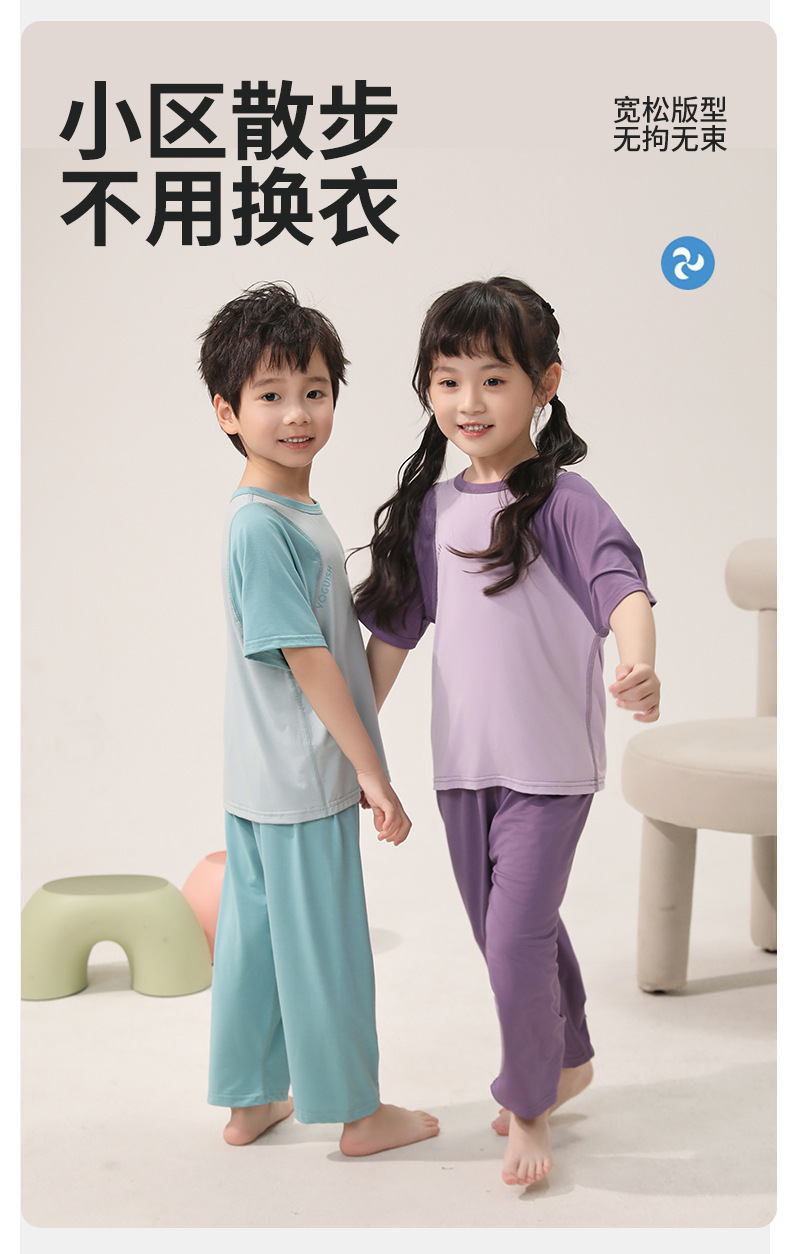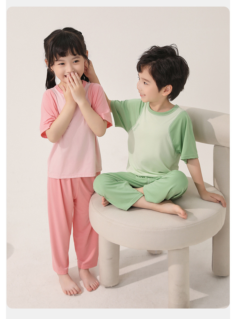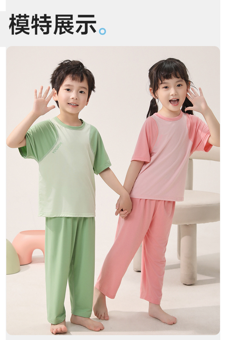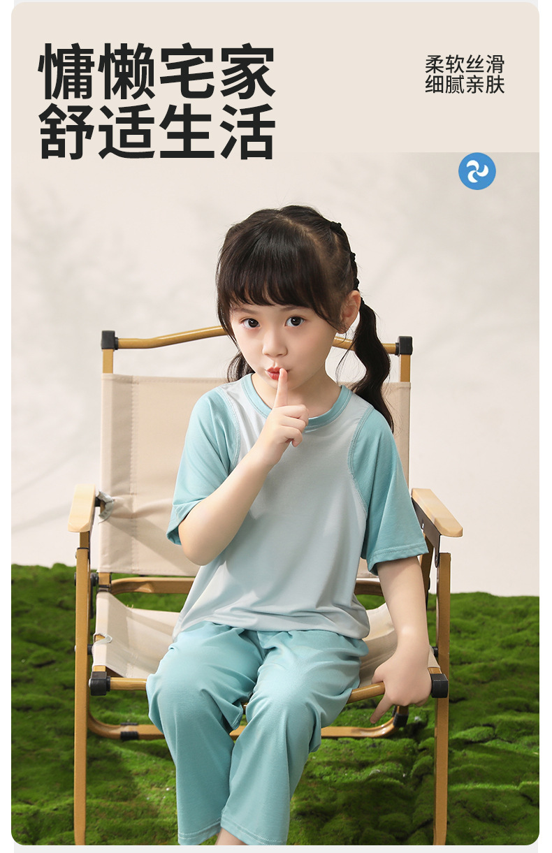 【凉感莫代尔,儿童家居服套装】儿童睡衣亲子家居服套装,柔软爽滑吸湿排汗快干,男童短袖长裤夏季薄款女童空调衣服QQ父亲节礼物新年礼盒年货礼盒