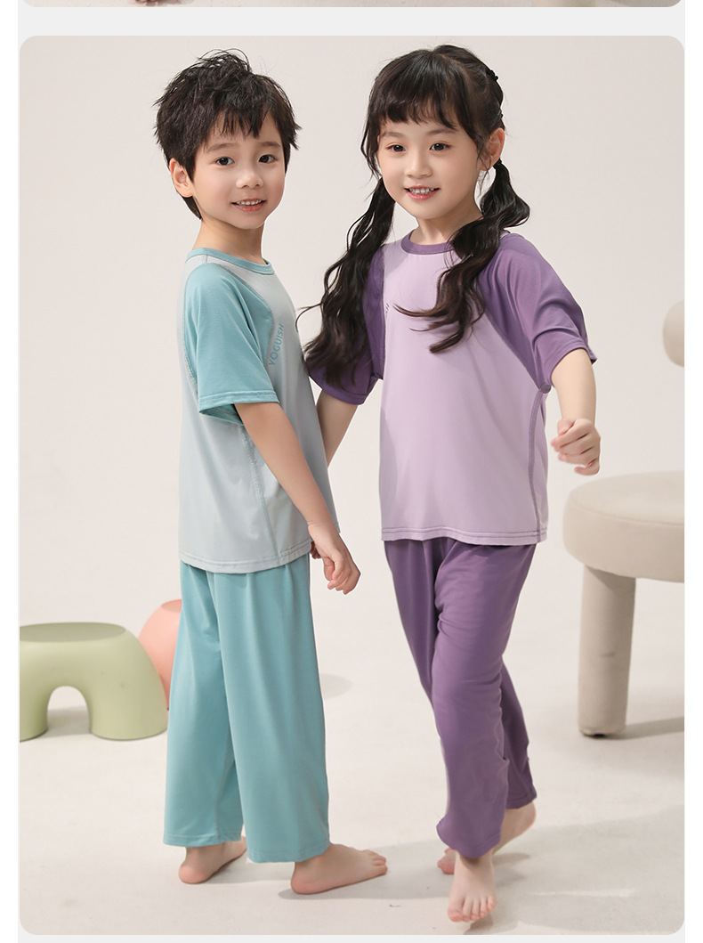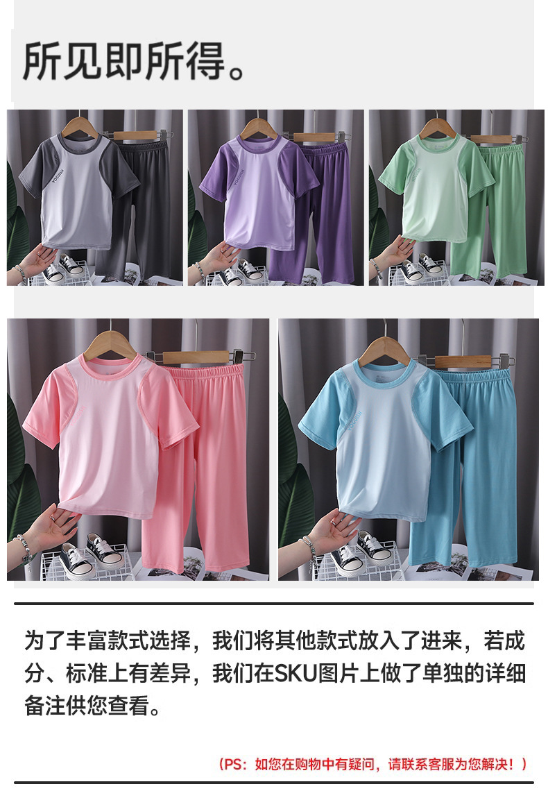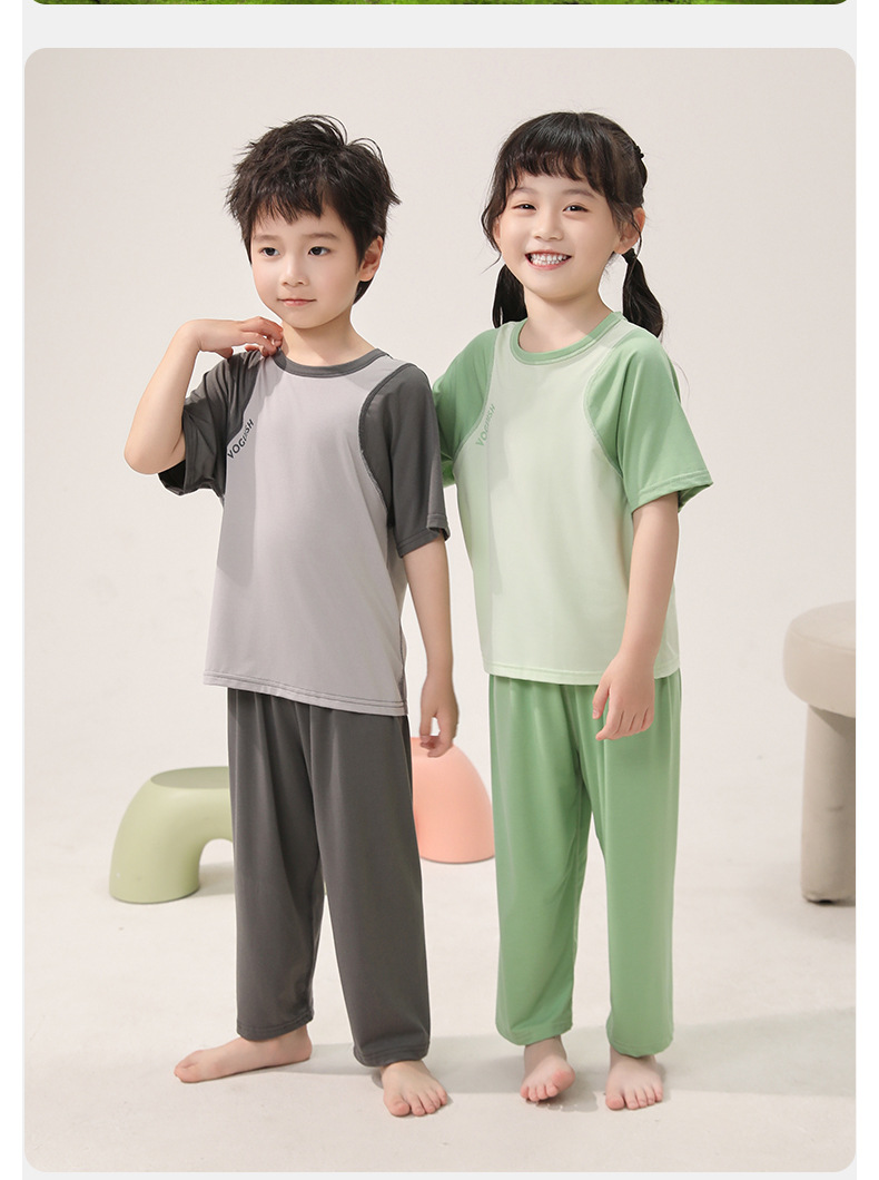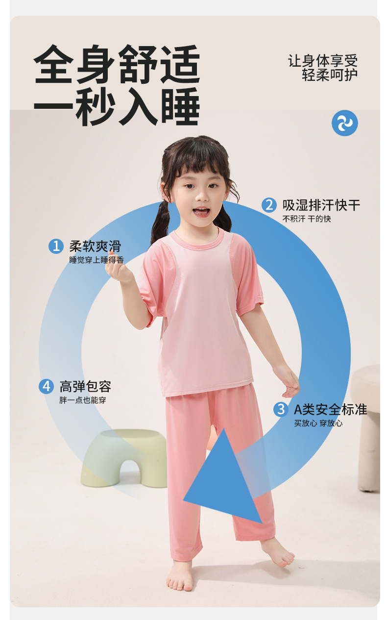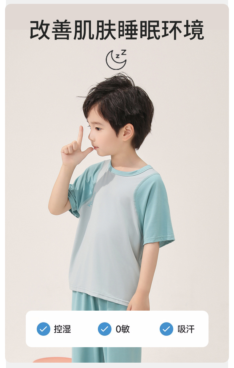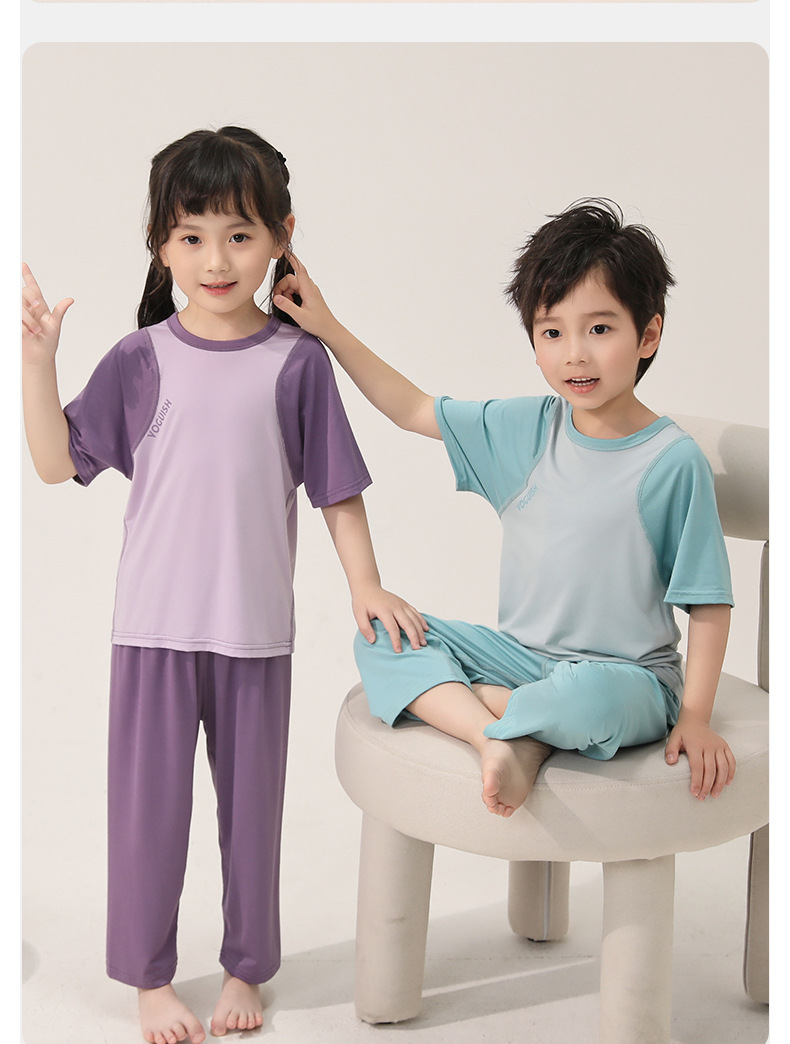 【凉感莫代尔,儿童家居服套装】儿童睡衣亲子家居服套装,柔软爽滑吸湿排汗快干,男童短袖长裤夏季薄款女童空调衣服QQ父亲节礼物新年礼盒年货礼盒