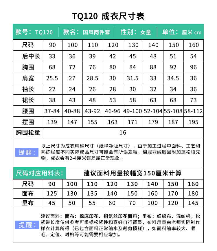 裁缝学苑TQ120女童套装上衣半裙夏季新中式国风两件套装纸样儿童版型