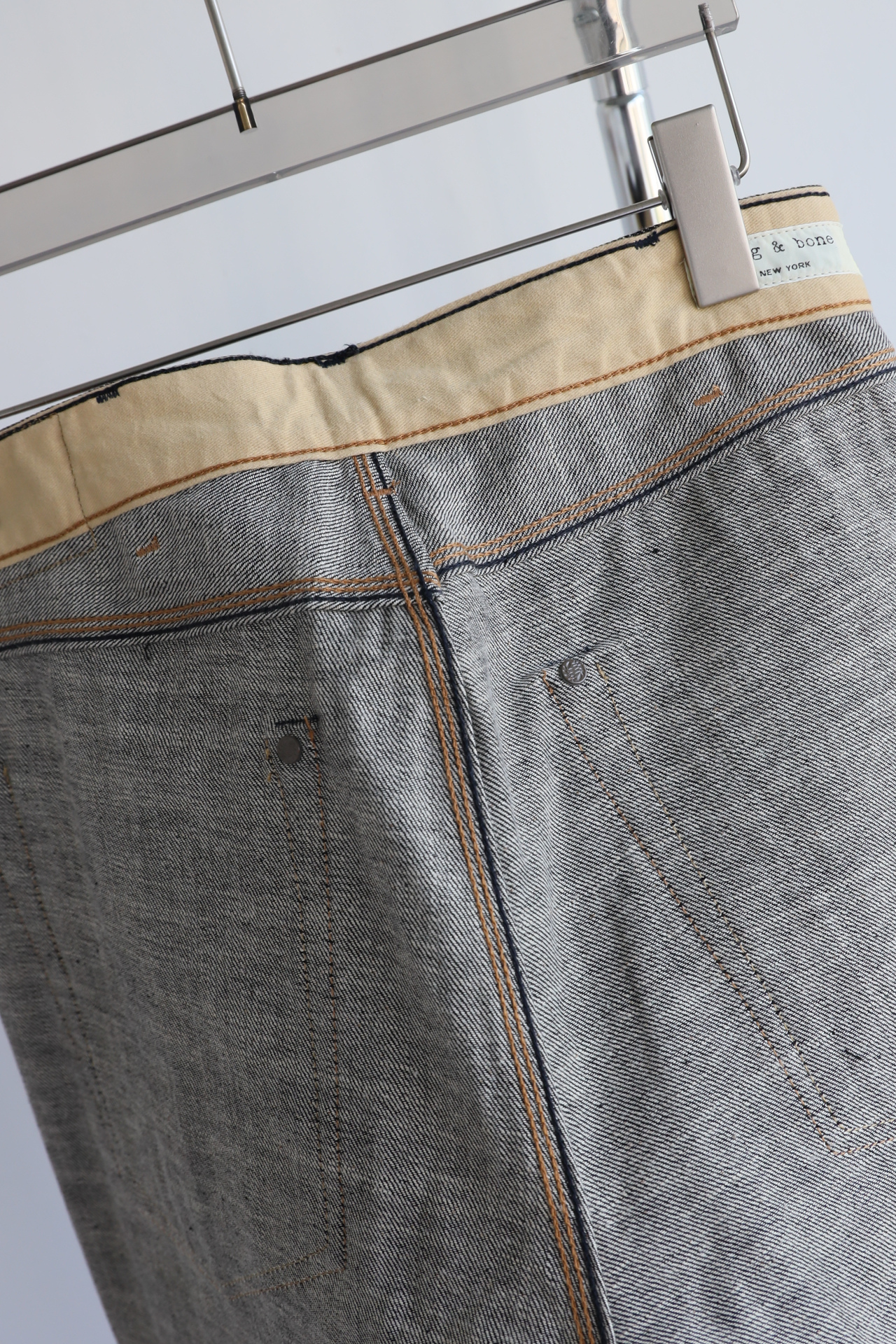 R@G B0NE小众元单 原色未脱浆赤耳边直筒牛仔长裤