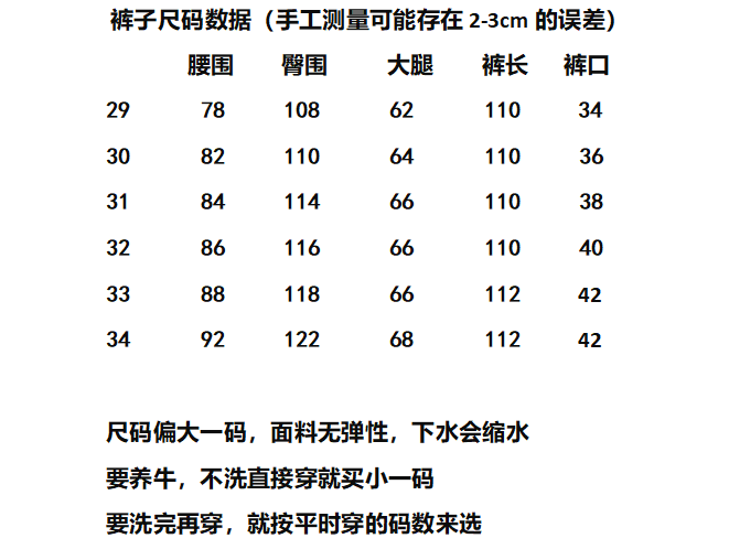 备注:如果不打算洗直接穿,可以选小一码,这个原色牛下水肯定是会缩水的,所以如果准备洗了再穿就要按平时码来选!