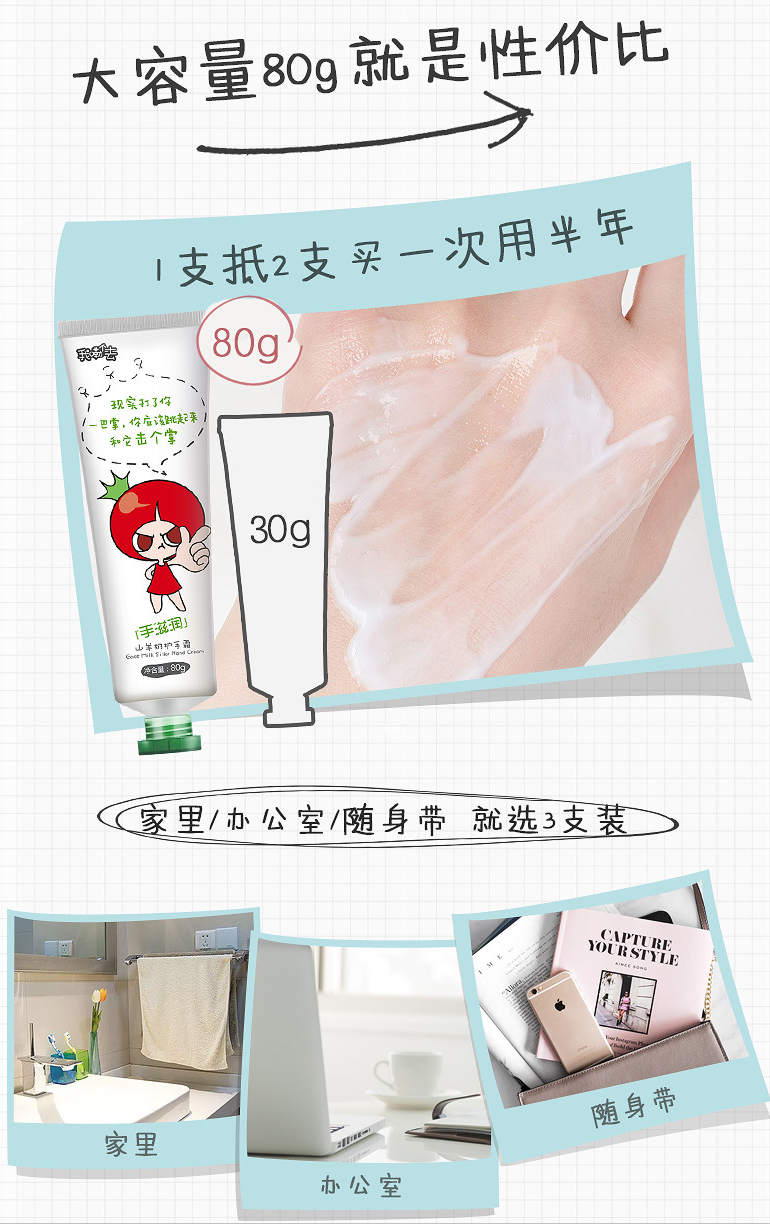 【护手霜】番茄派山羊奶护手霜滋润保湿四季通用80g/3支