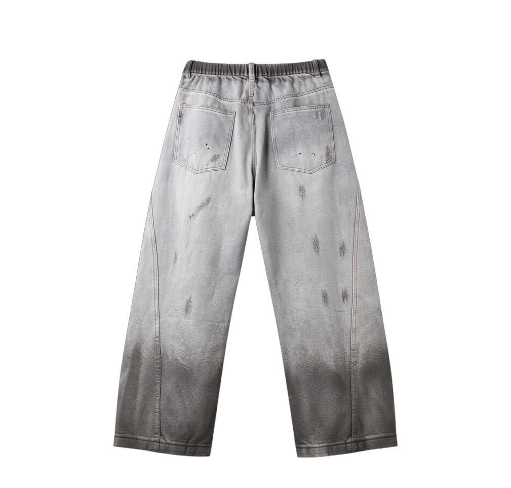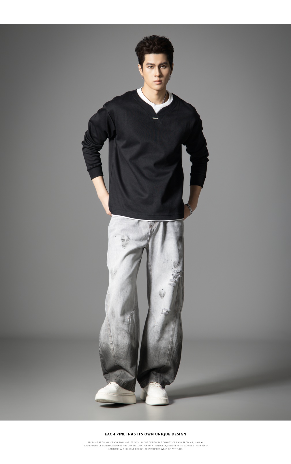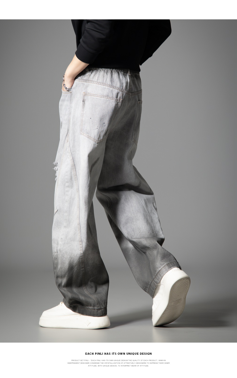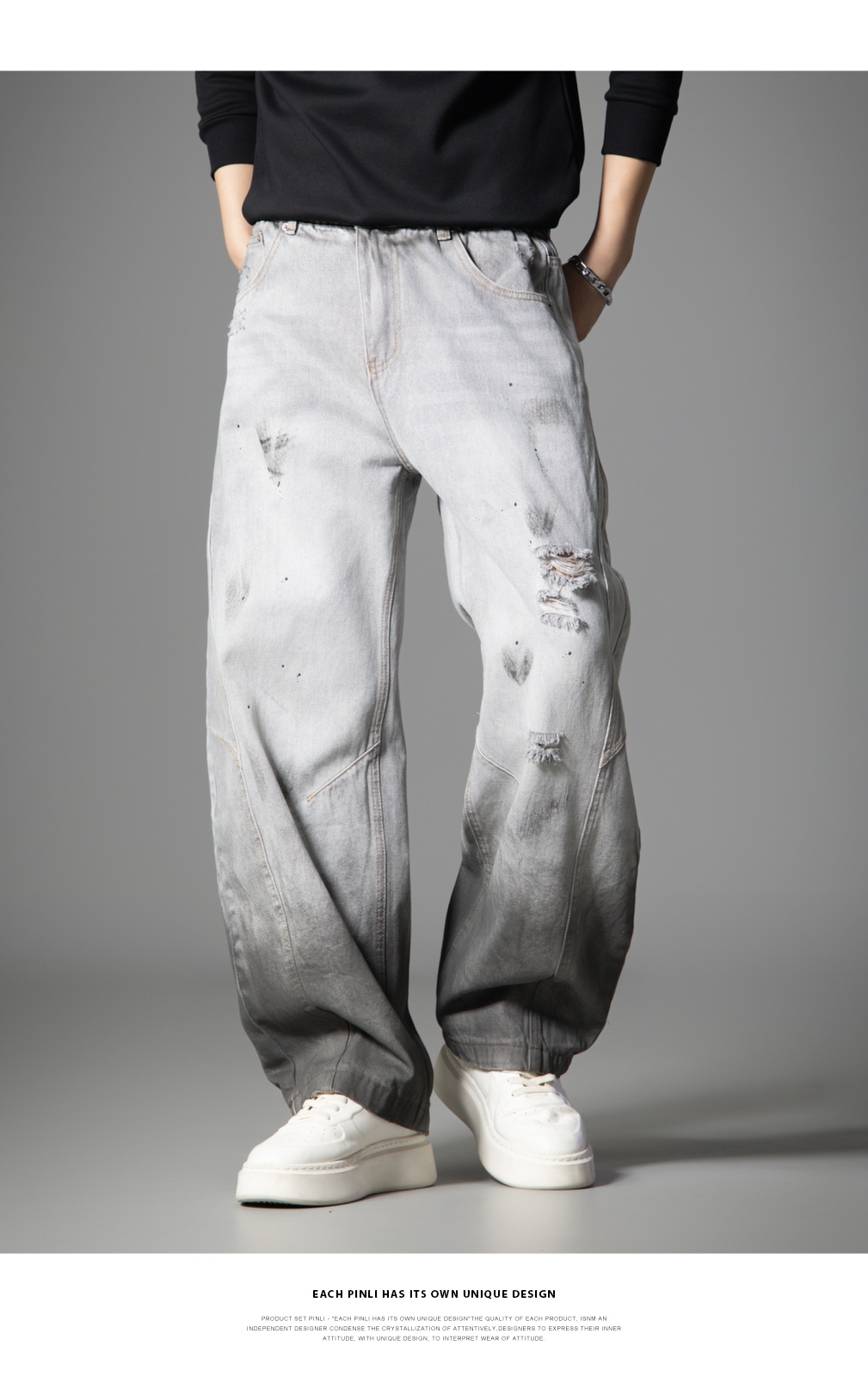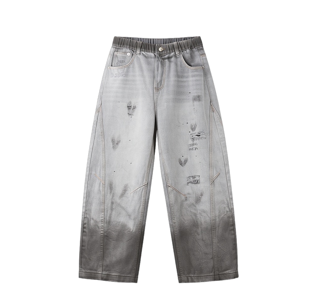 PINLI品立2025秋季新款男士宽松美式高街破洞直筒休闲牛仔长裤潮GD253116139