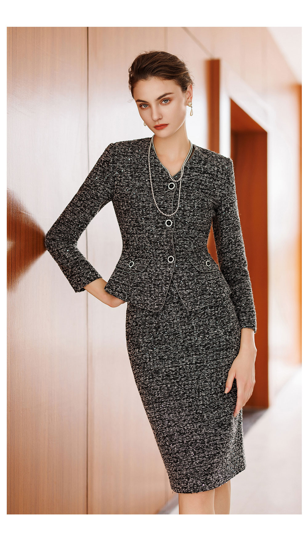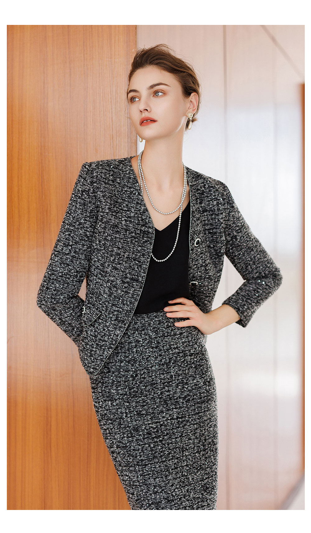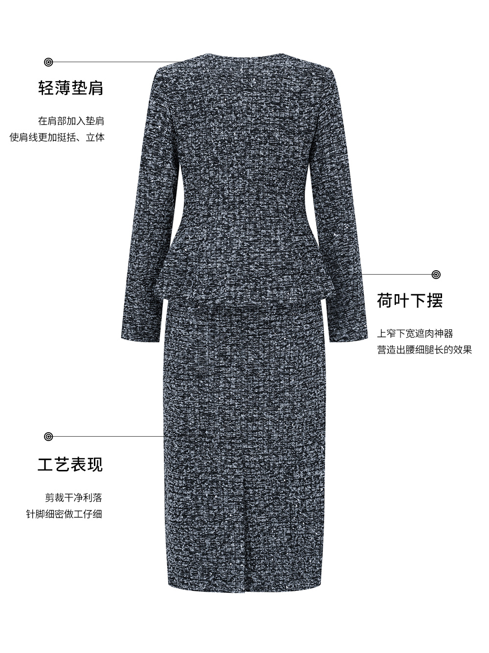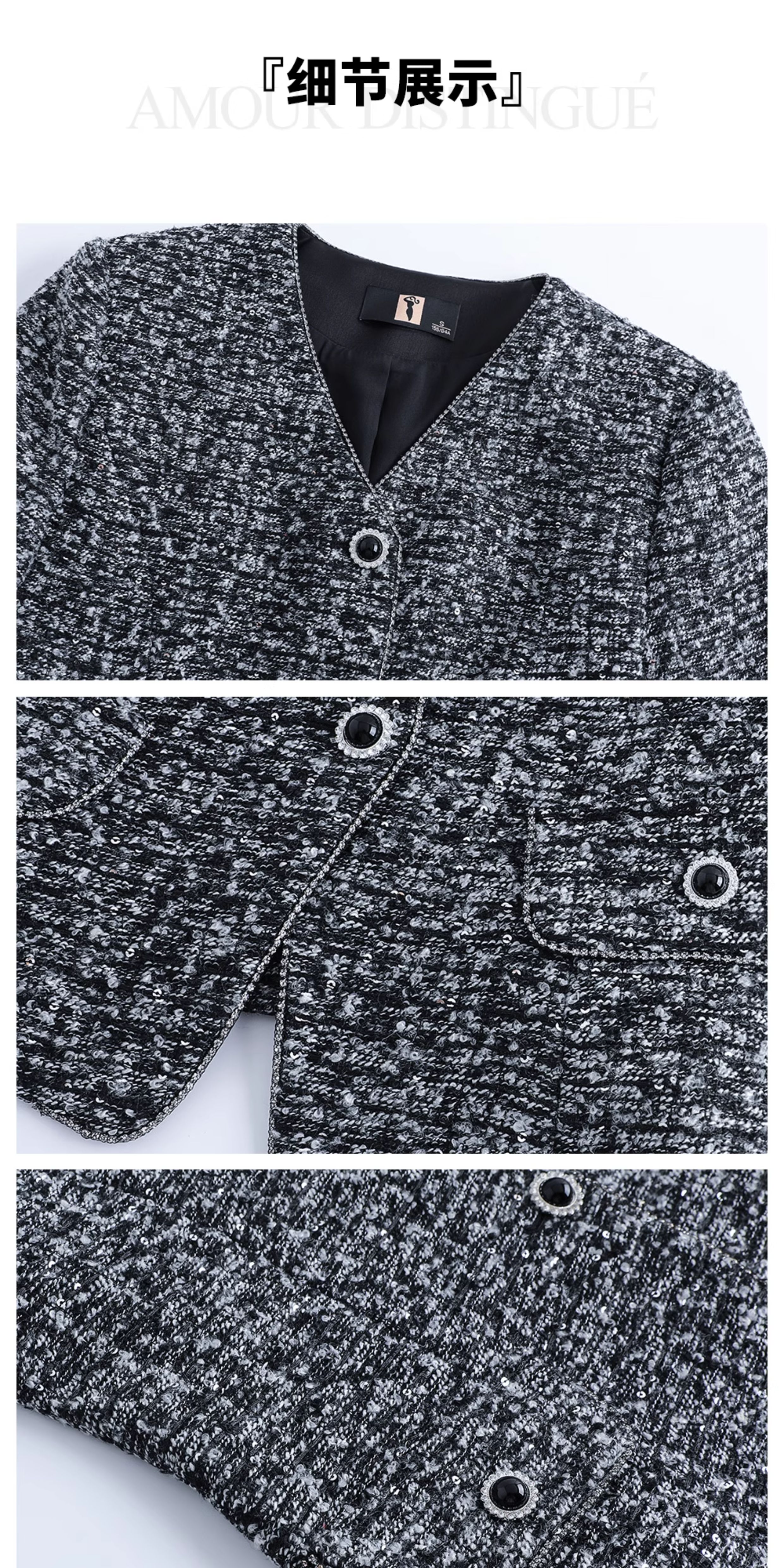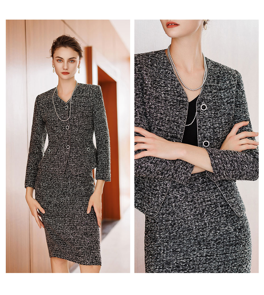 AD气质轻奢高级感两件套女士半身裙新款花灰色羊毛粗花呢小香套装