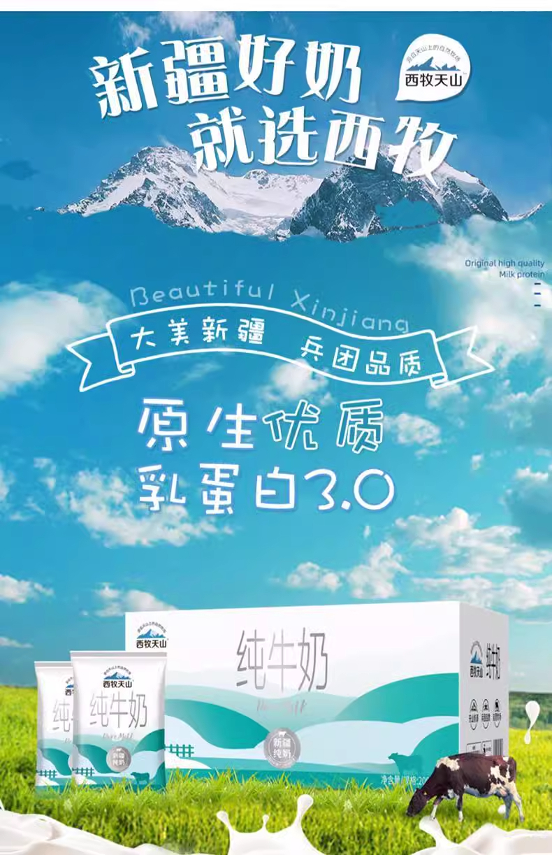 西牧天山利乐枕纯牛奶20袋*200ml