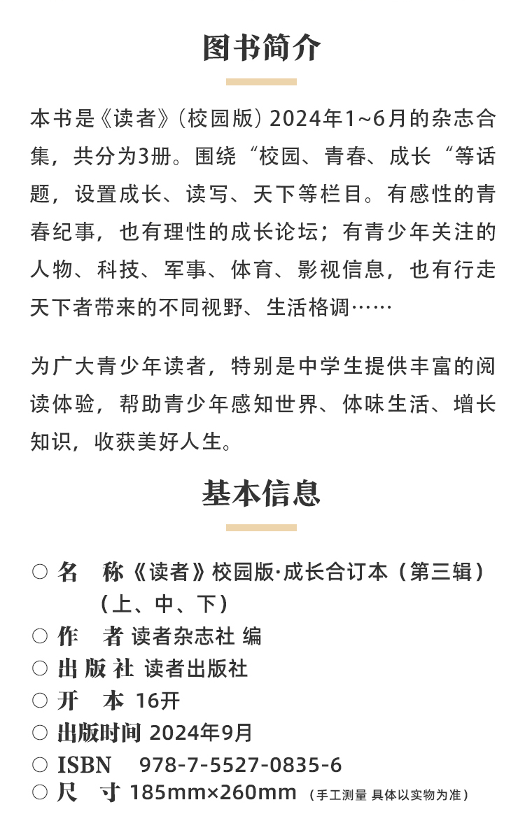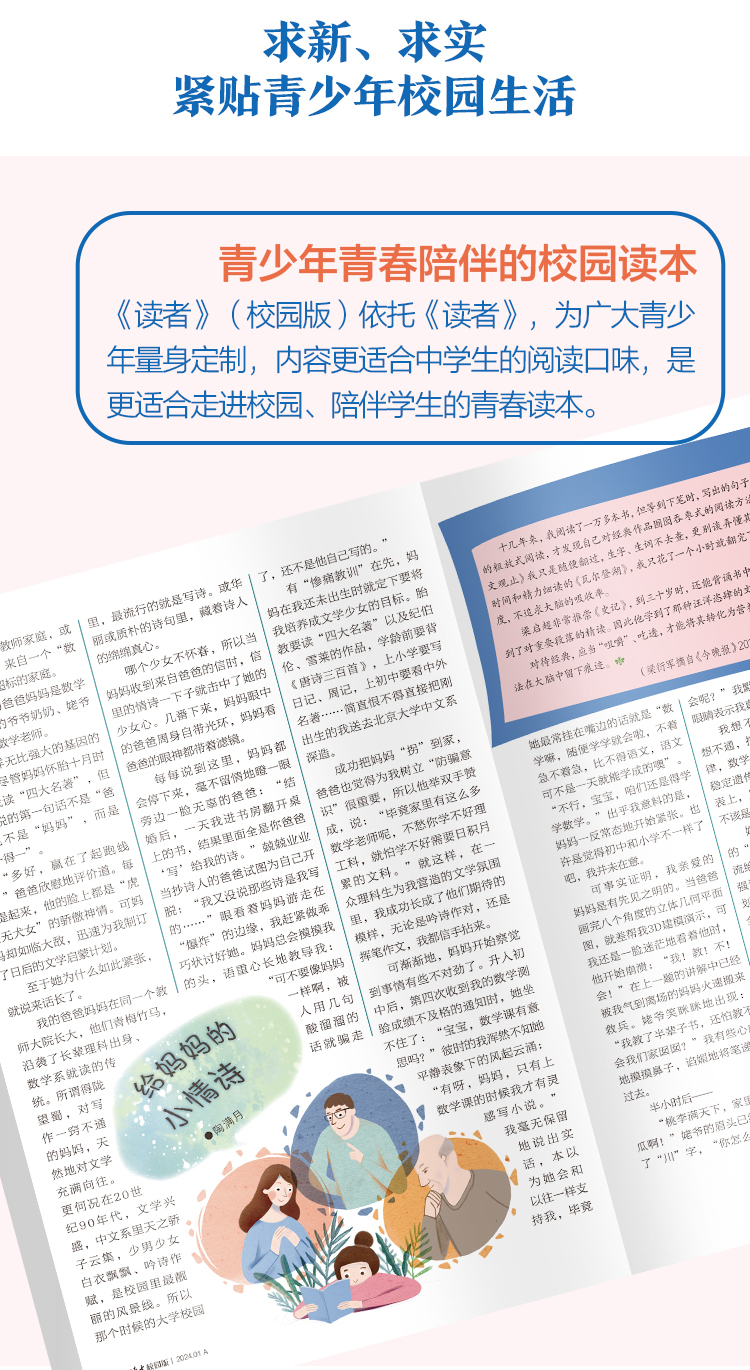 【赠3本过刊】《读者》(校园版•成长)2026年1月-12月//2025年12月-2026年11月 全年刊,共12期(月发1次)每次1本