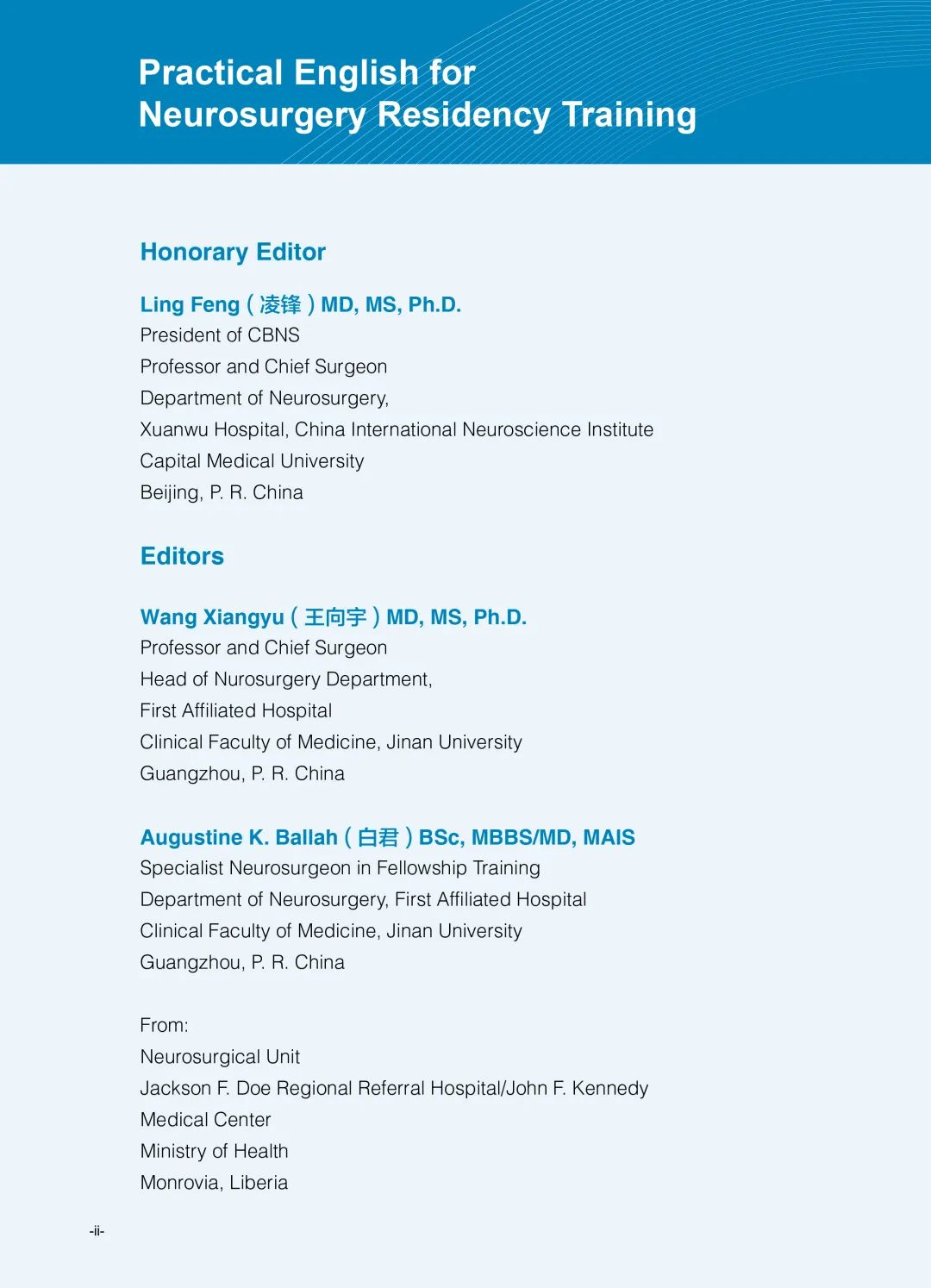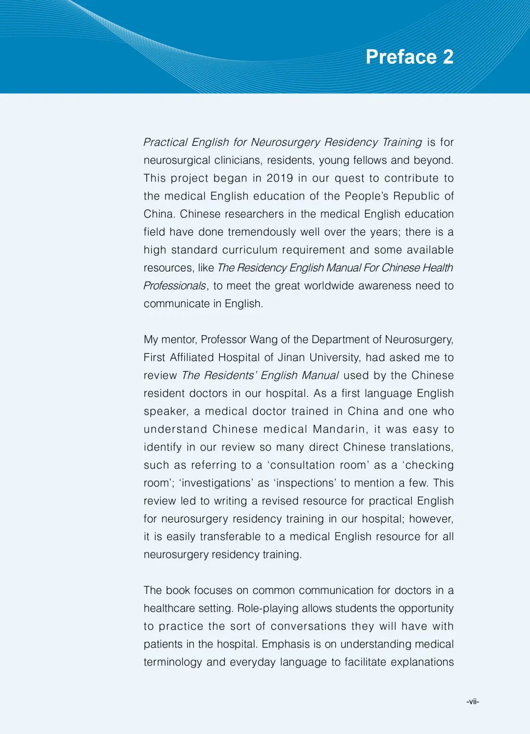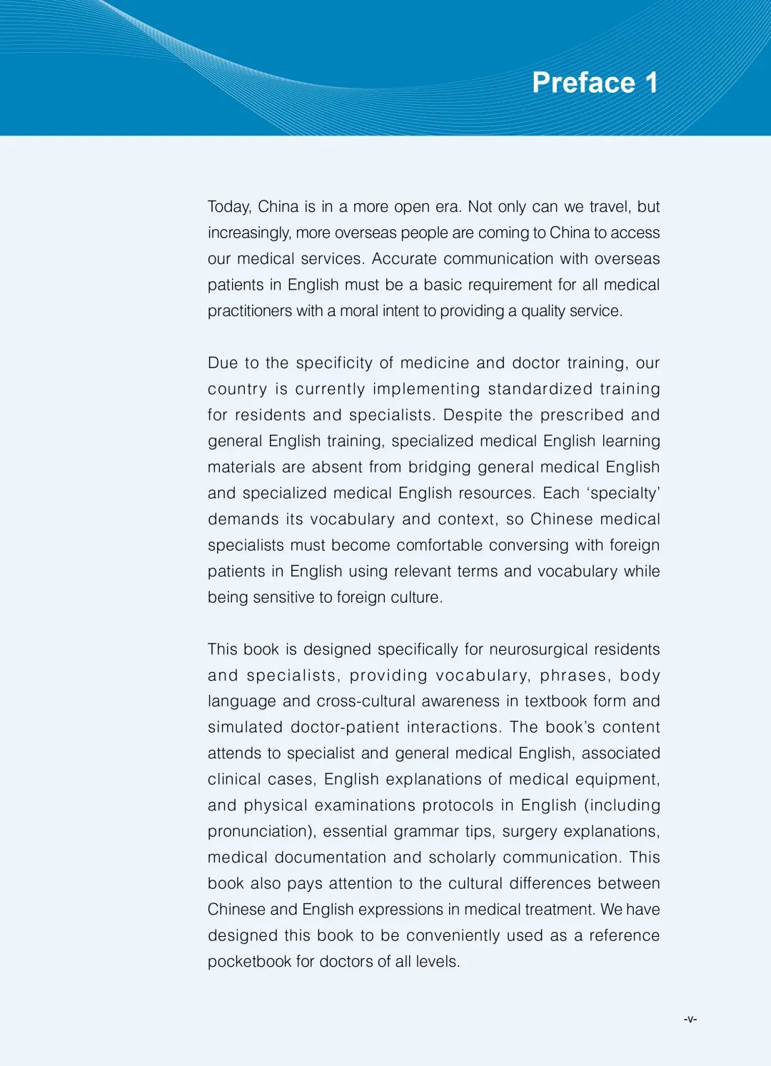 本书专门为神经外科方向的住院医师和专科医师的临床应用编写。全书共分为8个章节,主要内容包括特殊医疗用词与生活用词应用区别、医疗环境的物品表达、各类医疗文书撰写方法、医患沟通技巧、体格检查步骤、病例讨论、手术记录描述、学术思想交流等方面。内容达到了普适性与专业性的统一,不仅适用于神经外科住院医师,也适用于其他学科,如神经(内)科、急诊科、其他外科分支等的住培及专培医师。