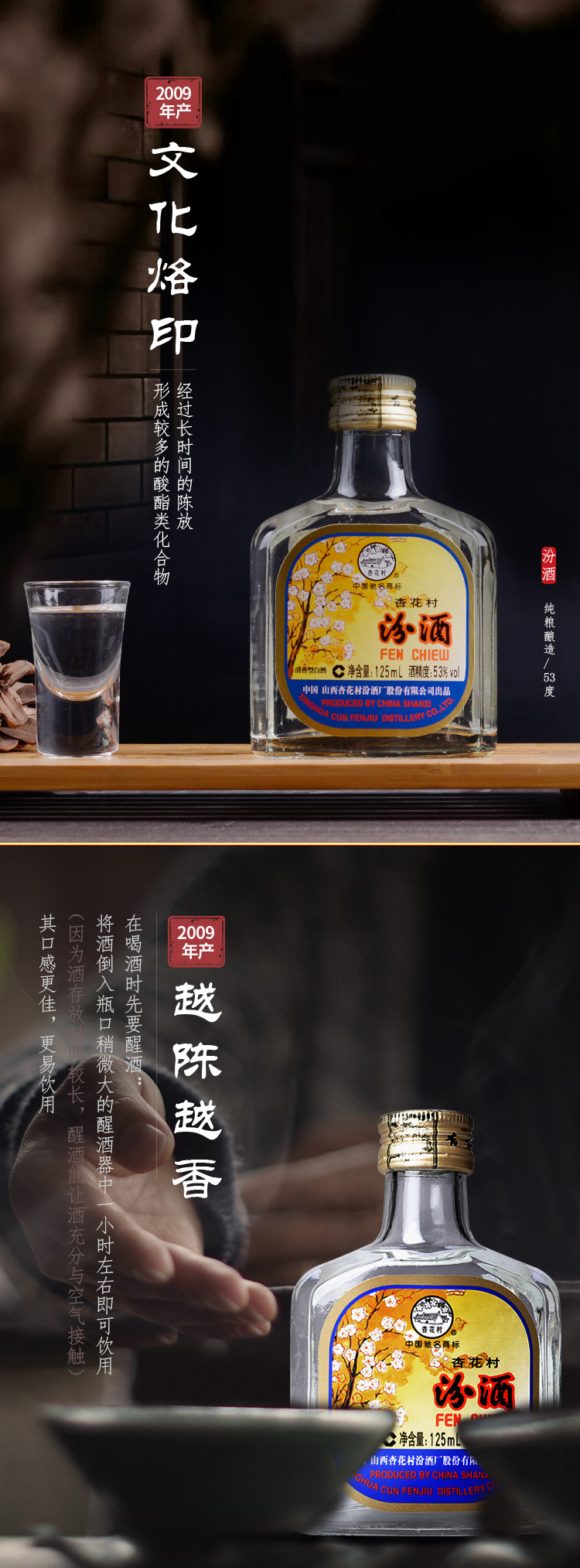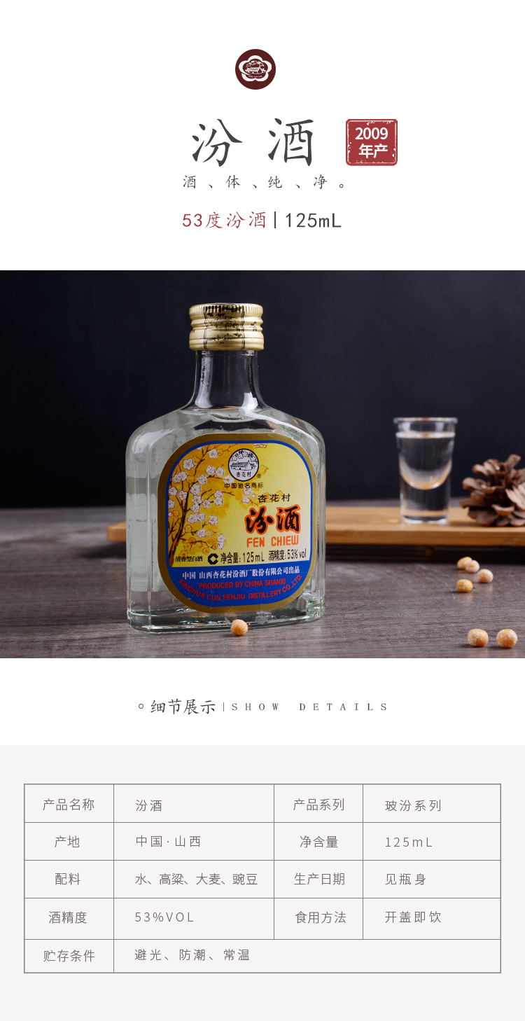 53°(125ml)出口汾(2009) 125ml*1 山西杏花村汾酒