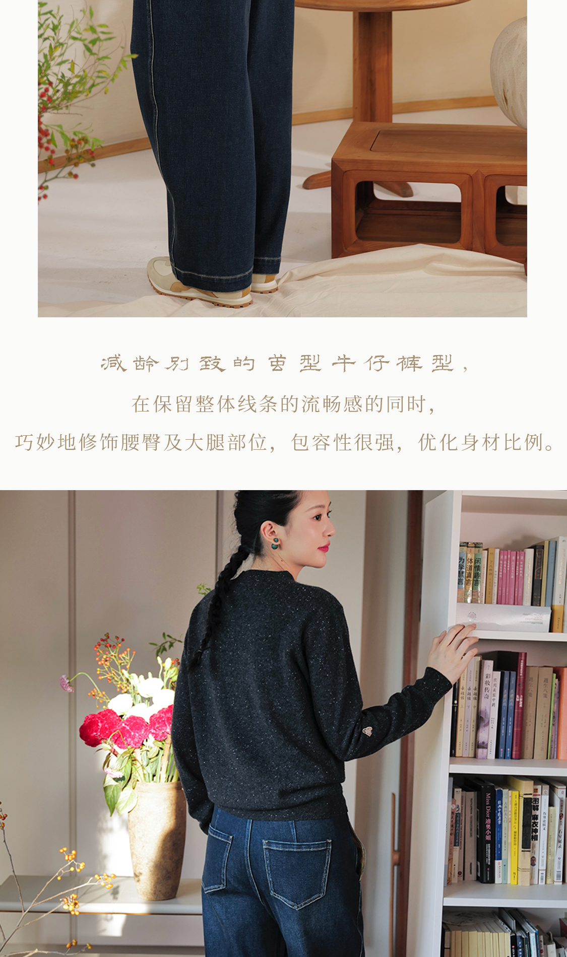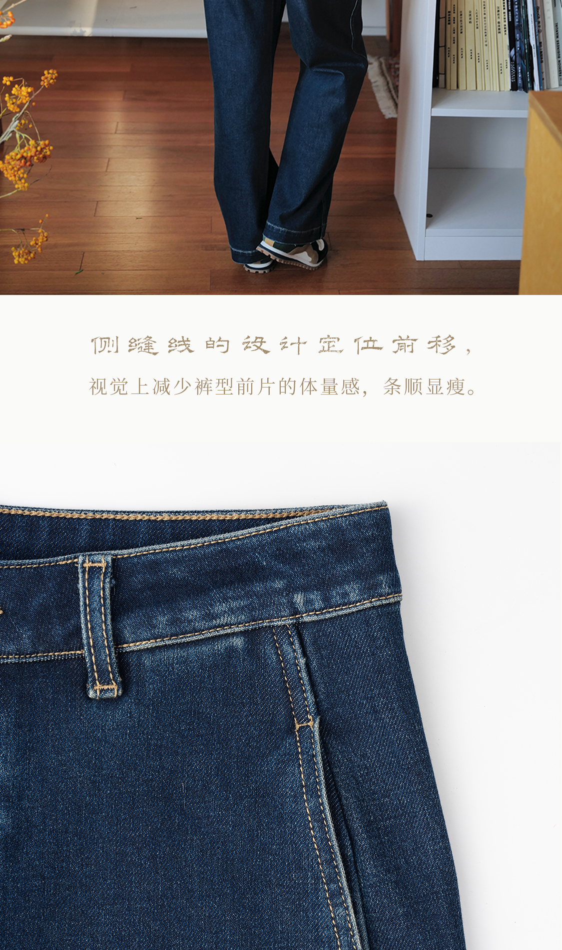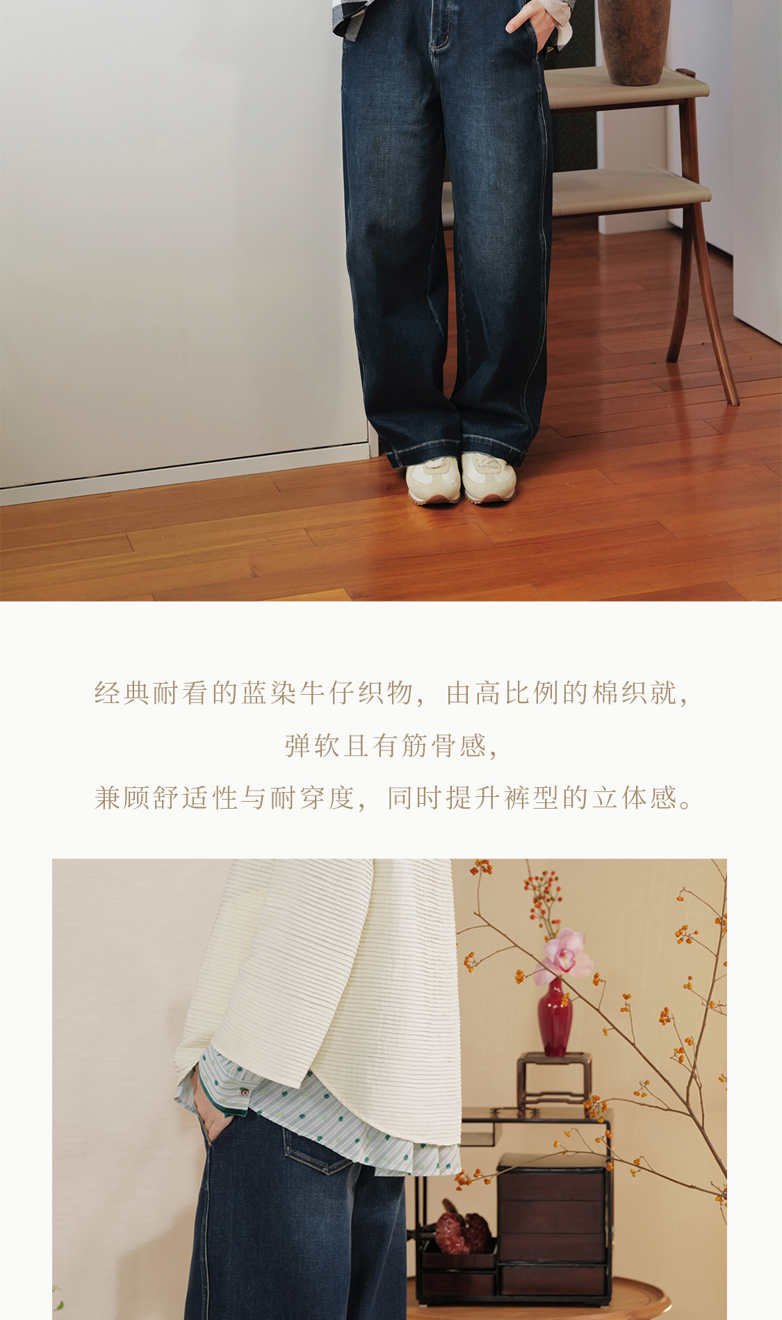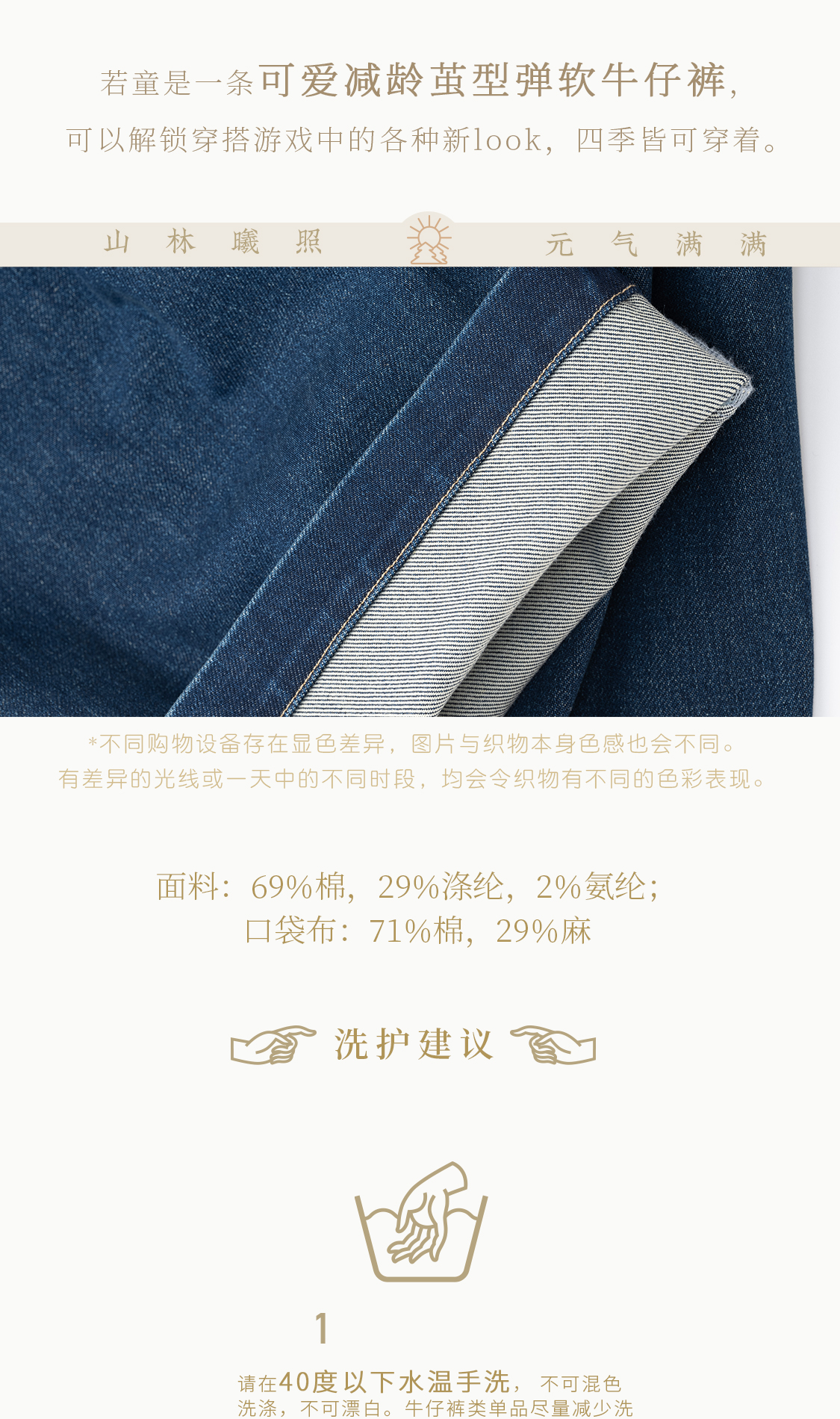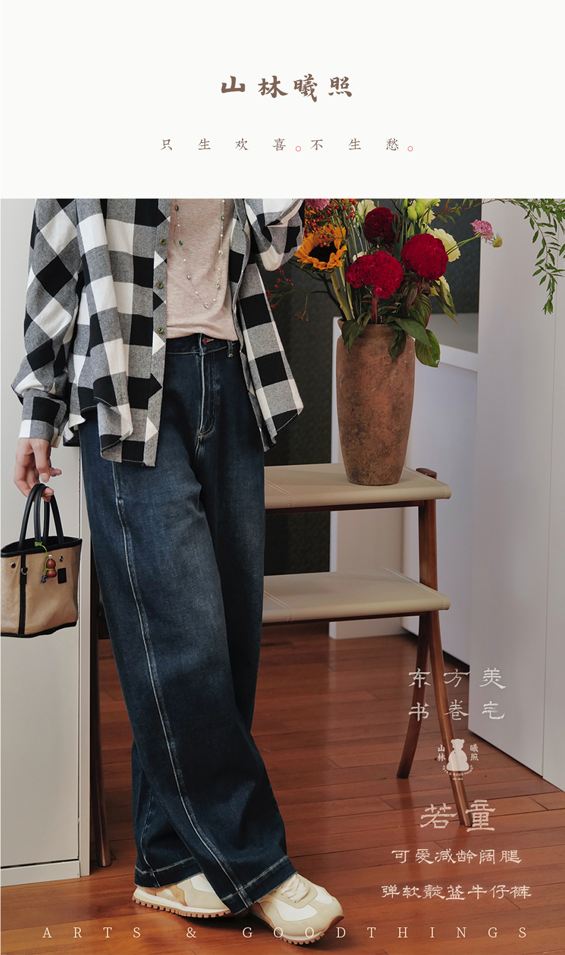若童 可爱减龄阔腿弹软靛蓝牛仔裤 山林曦照