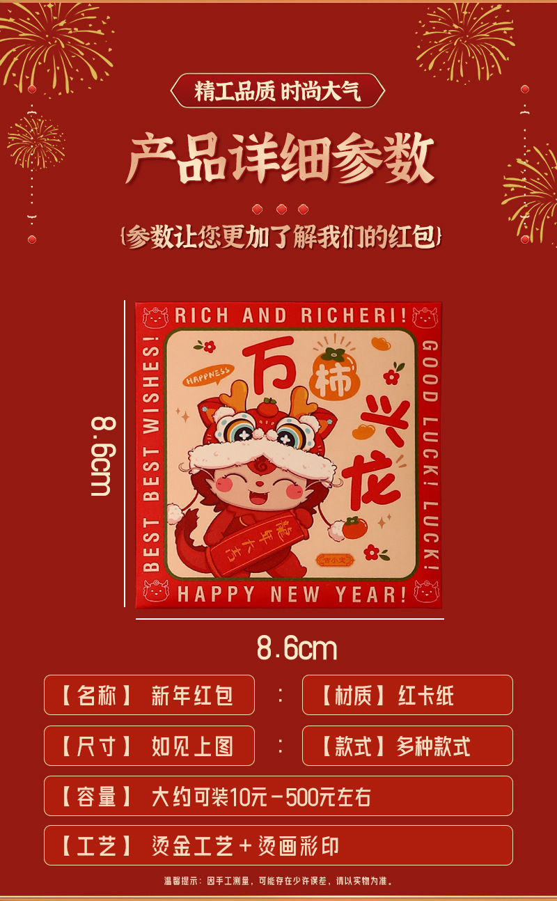 12只装 龙年红包新款可爱卡通创意个性压岁儿童新年利是过年红包春节
